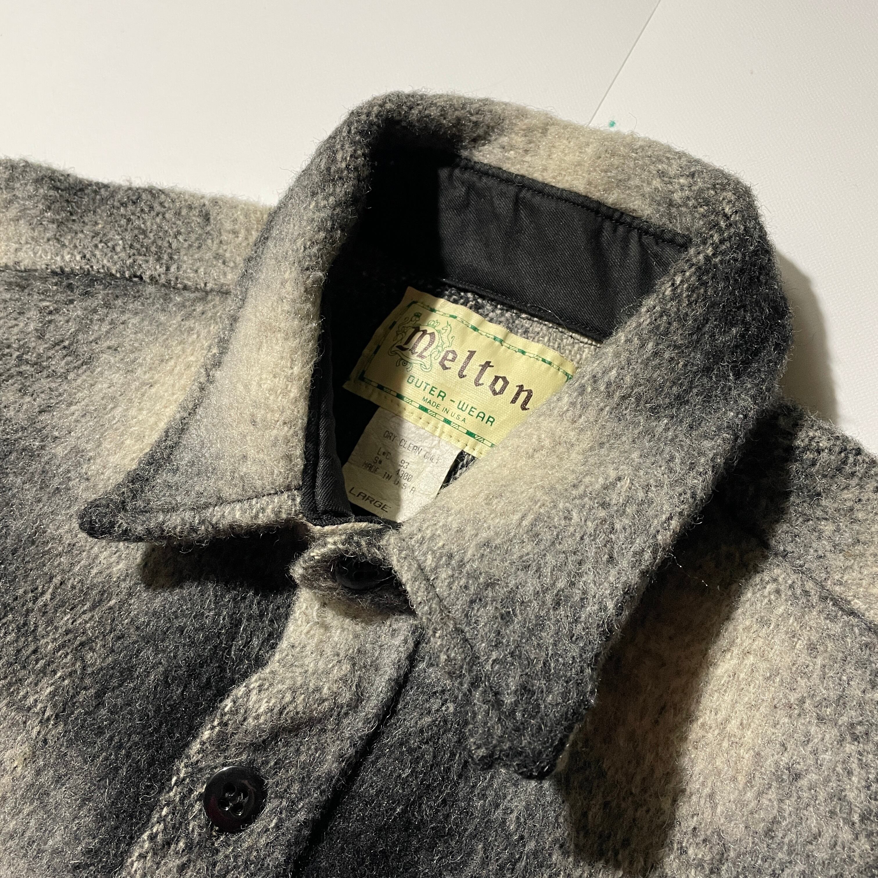 70s頃のmeltonウールシャツ。厚手のCPOライクな作りでシャツジャケットが近いと思います。