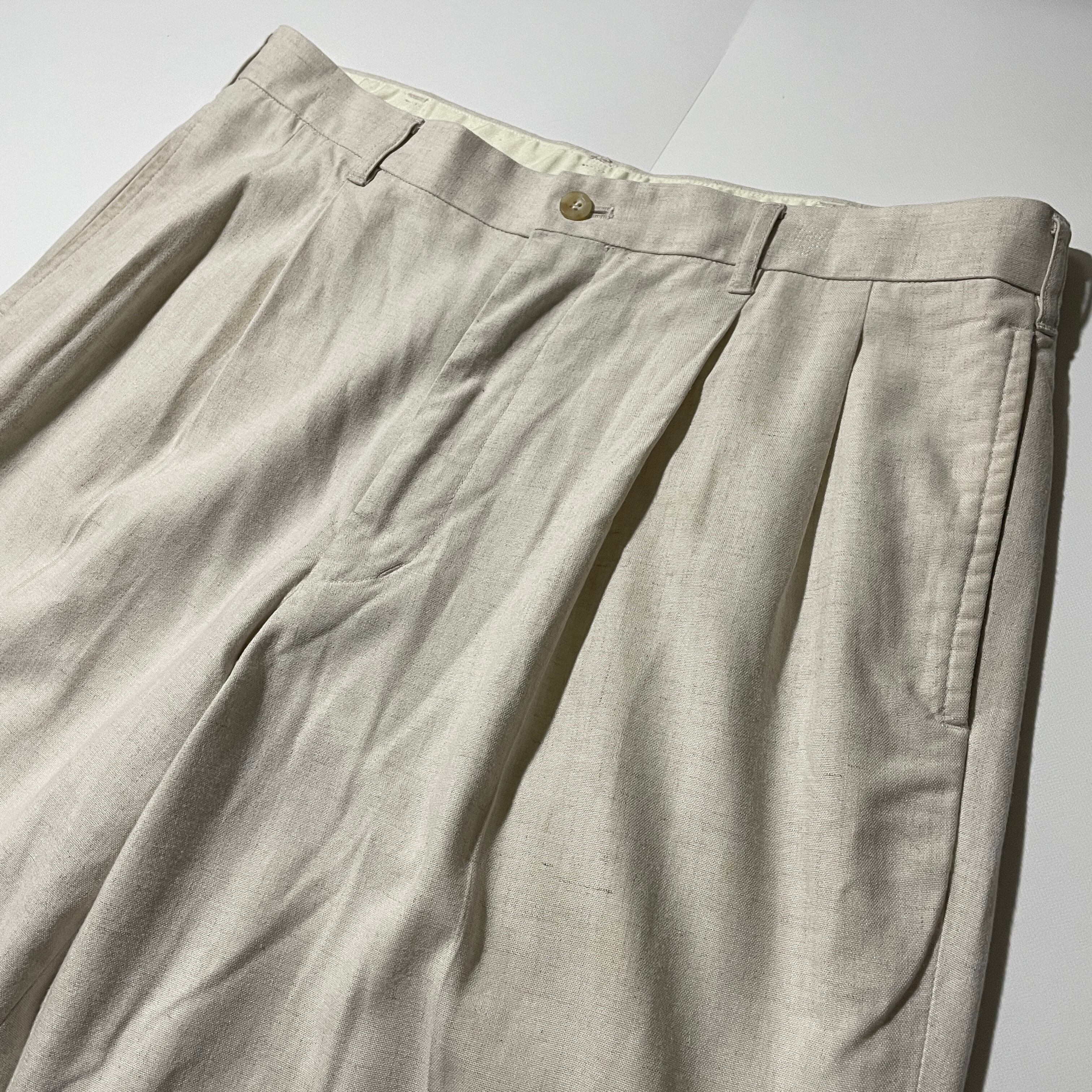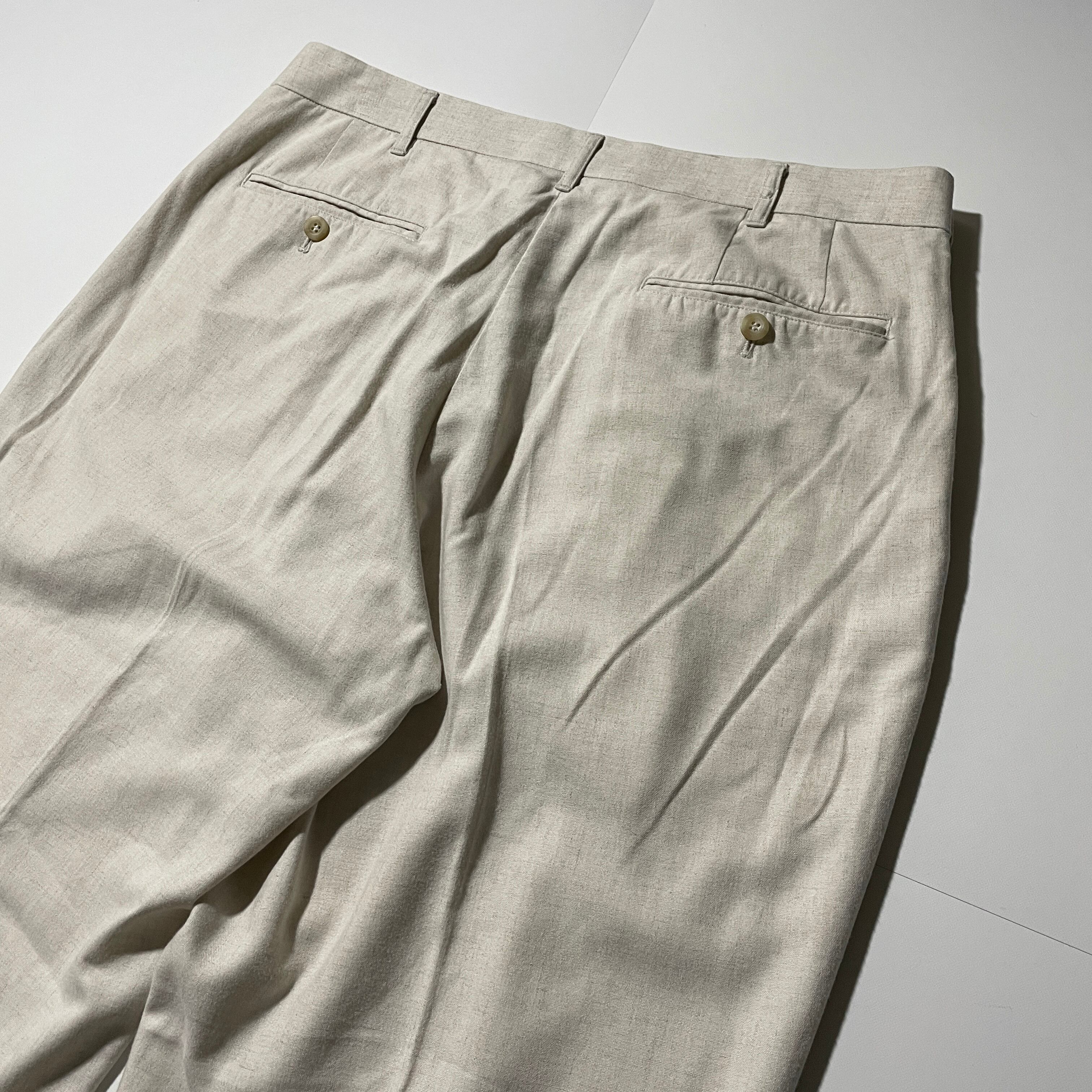90s OLD UNIQLO レーヨン×リネン 2タックスラックス カスリ50s