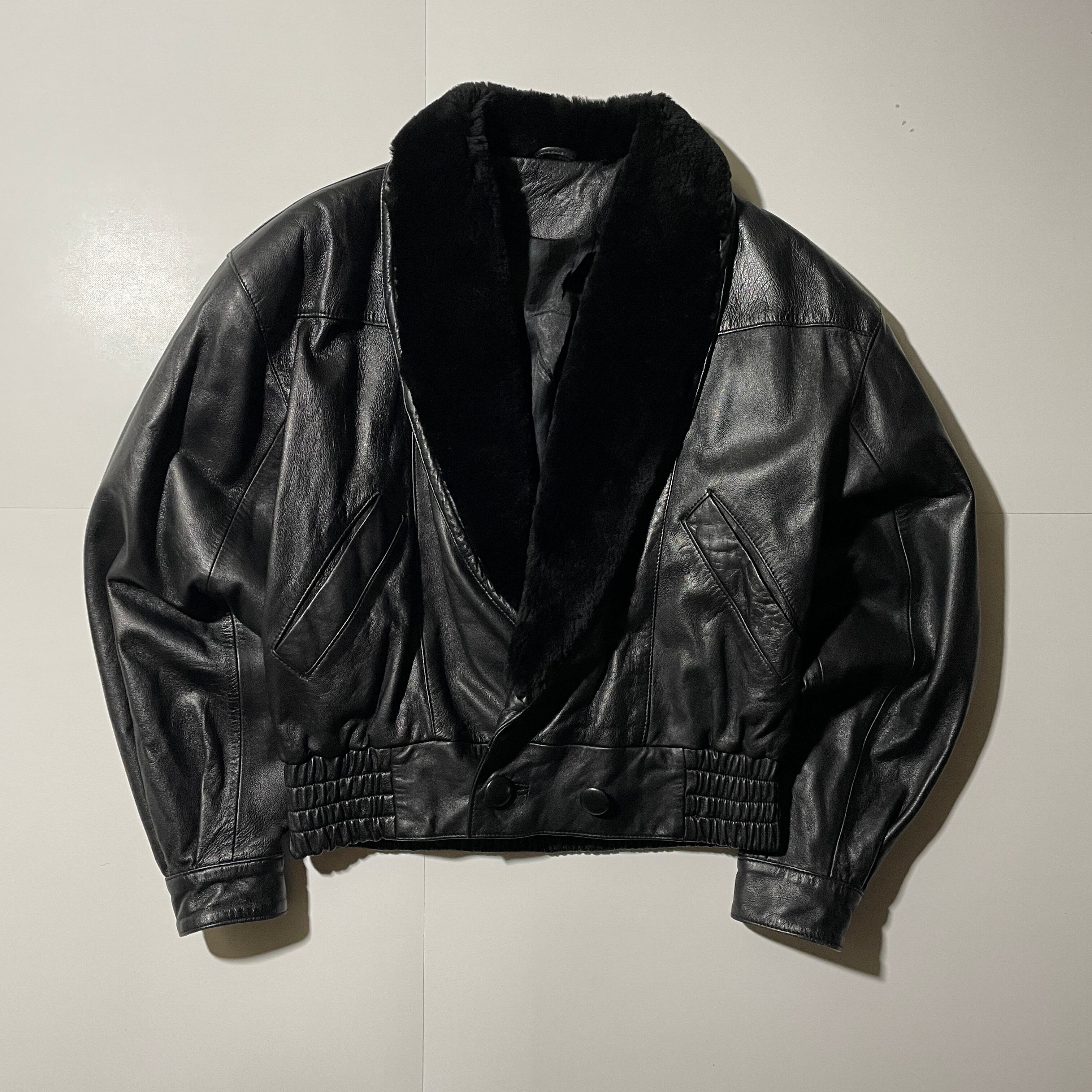 80s UNKNOWN ダブルブレスト ショールカラーレザーブルゾン