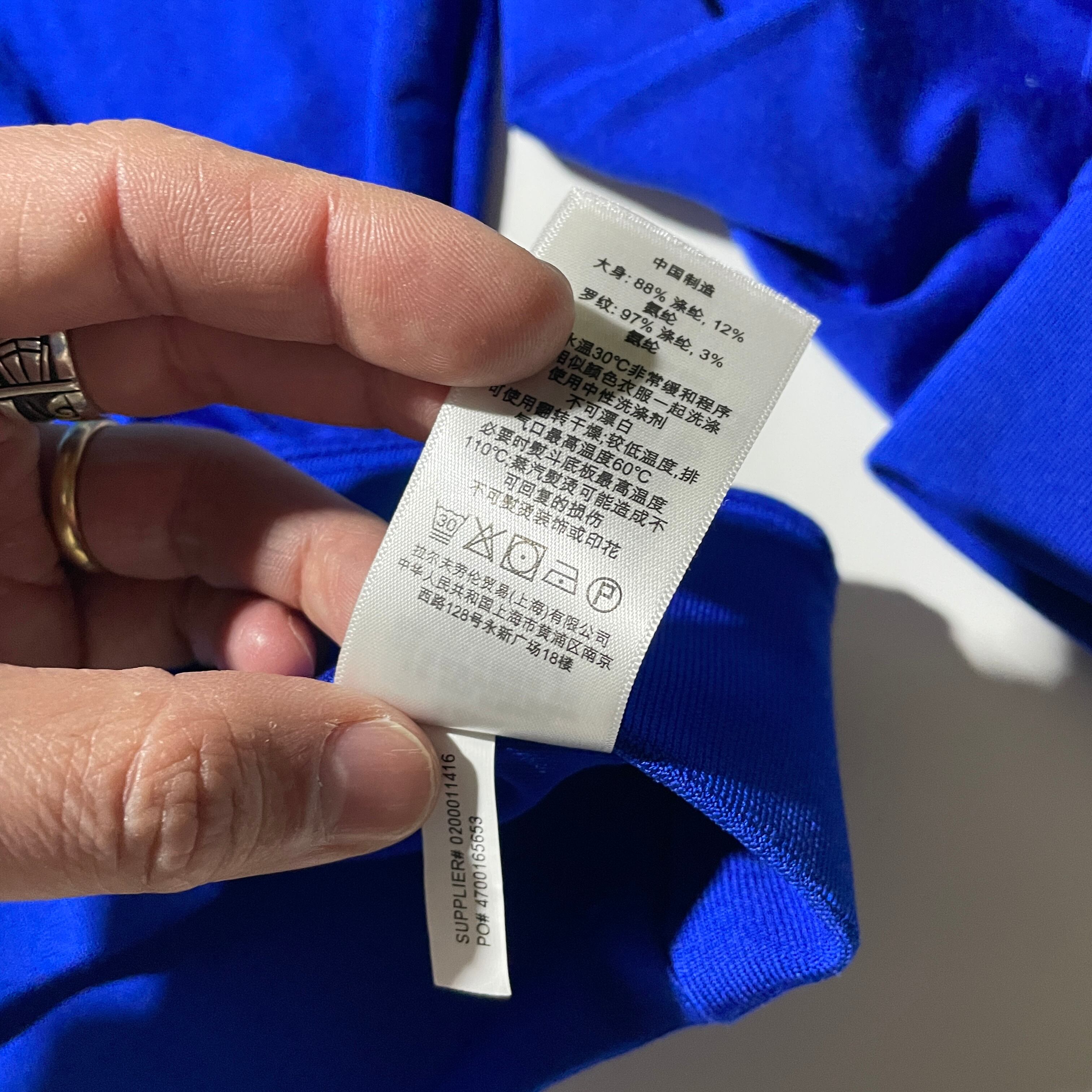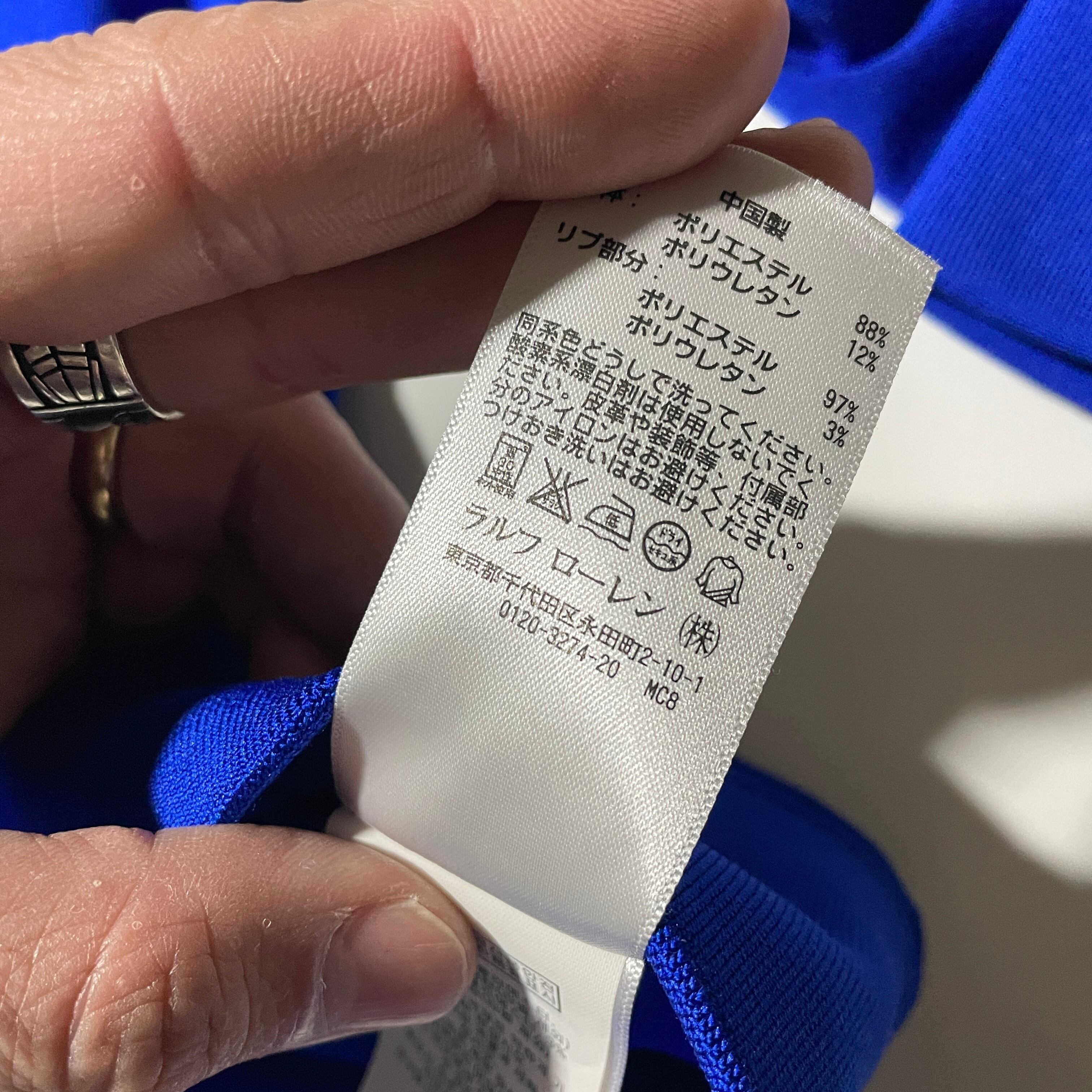 ・裾口リブに二箇所、糸ほつれあり。広がっていくことはありません。