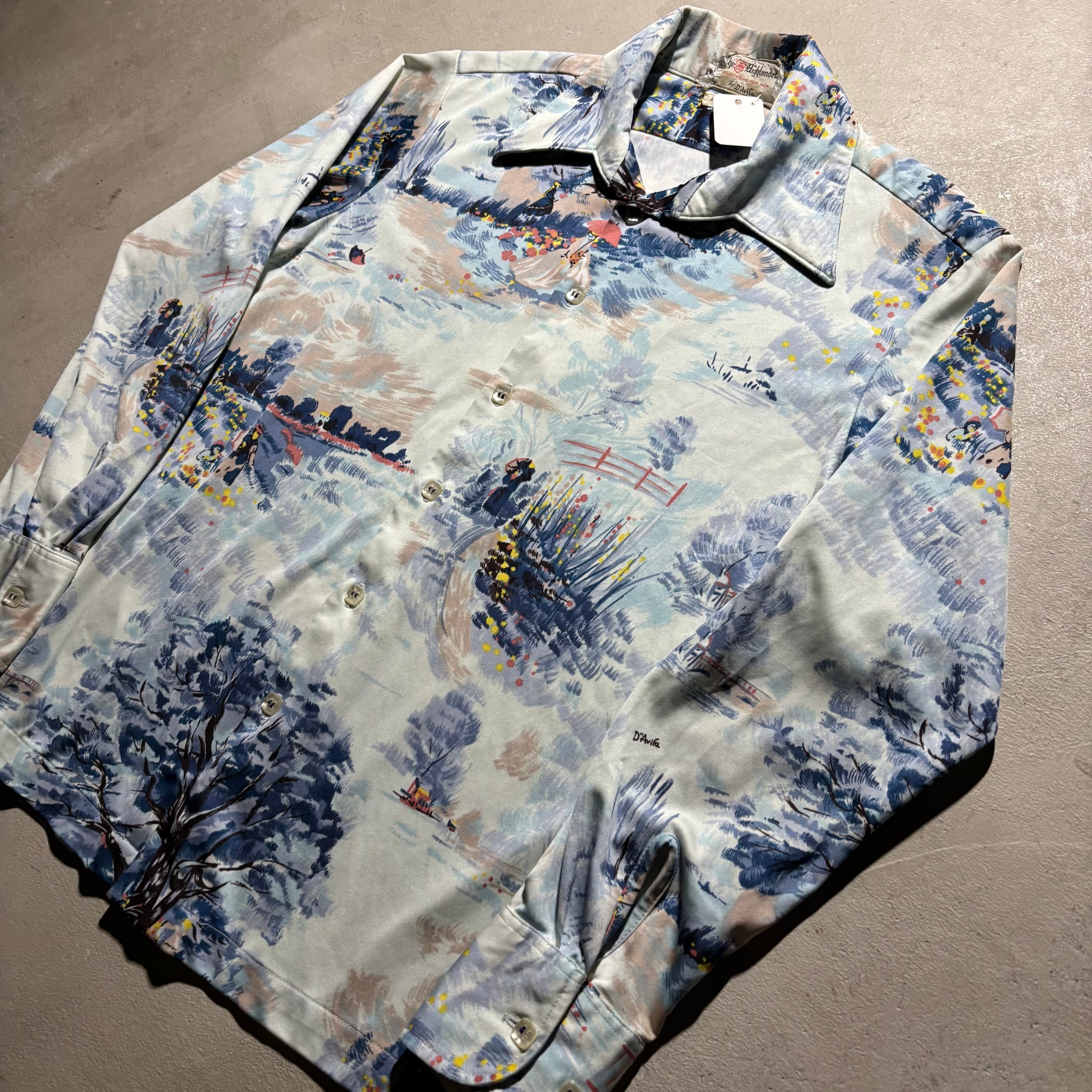 70s D’Avila 総柄 ポリシャツ ヴィンテージ