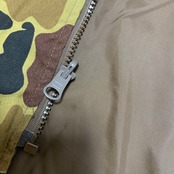 80sのwoolrich リバーシブルジャケット。ダックハンター、フロッグスキンを彷彿とさせる一着。リバーシブル仕様。シェルの状態非常に良いですが左の腕スリーブ付近に焼けて空いた穴があります。それ以外状態は年代を考慮してもグッドコンディションです。