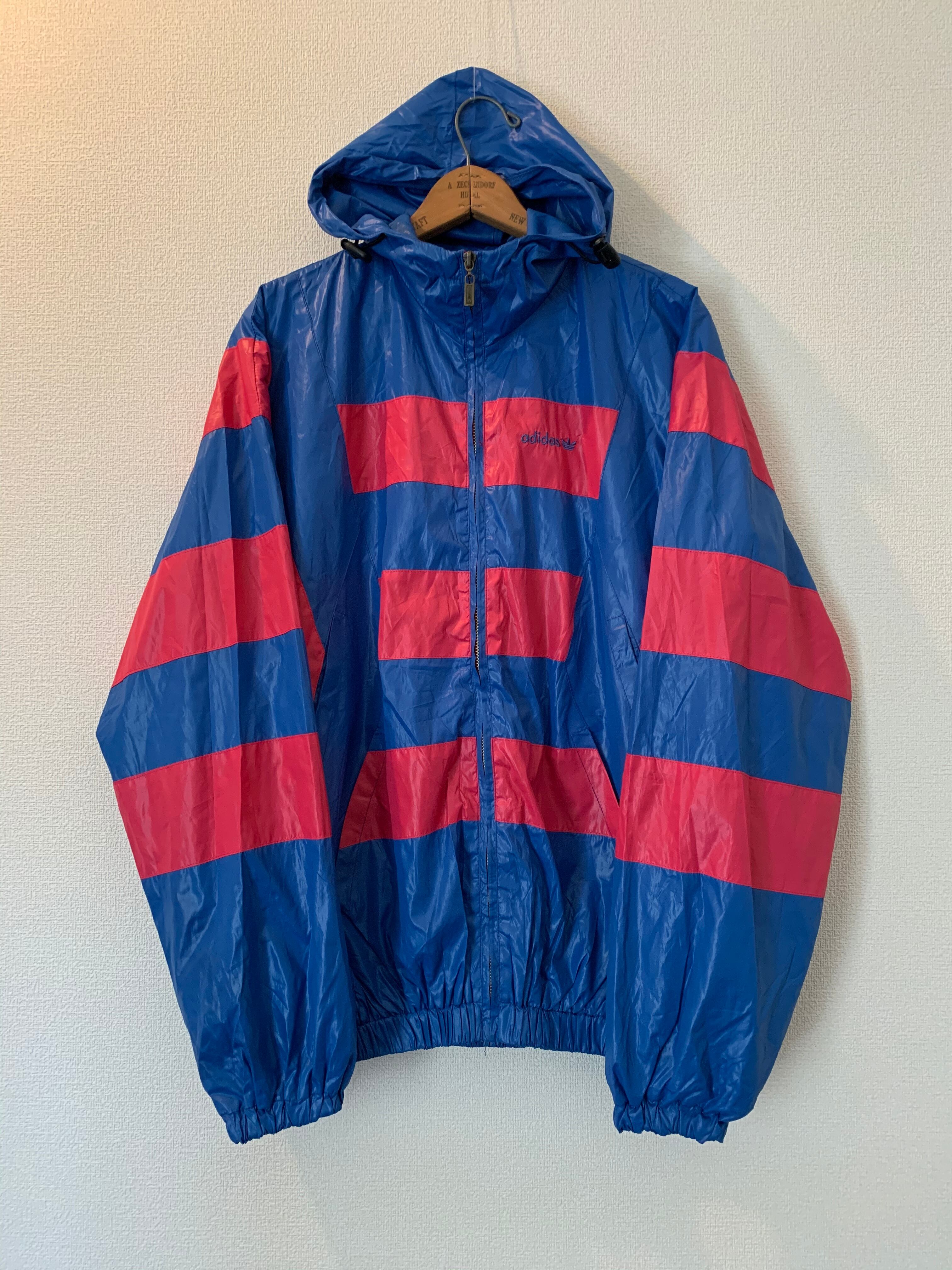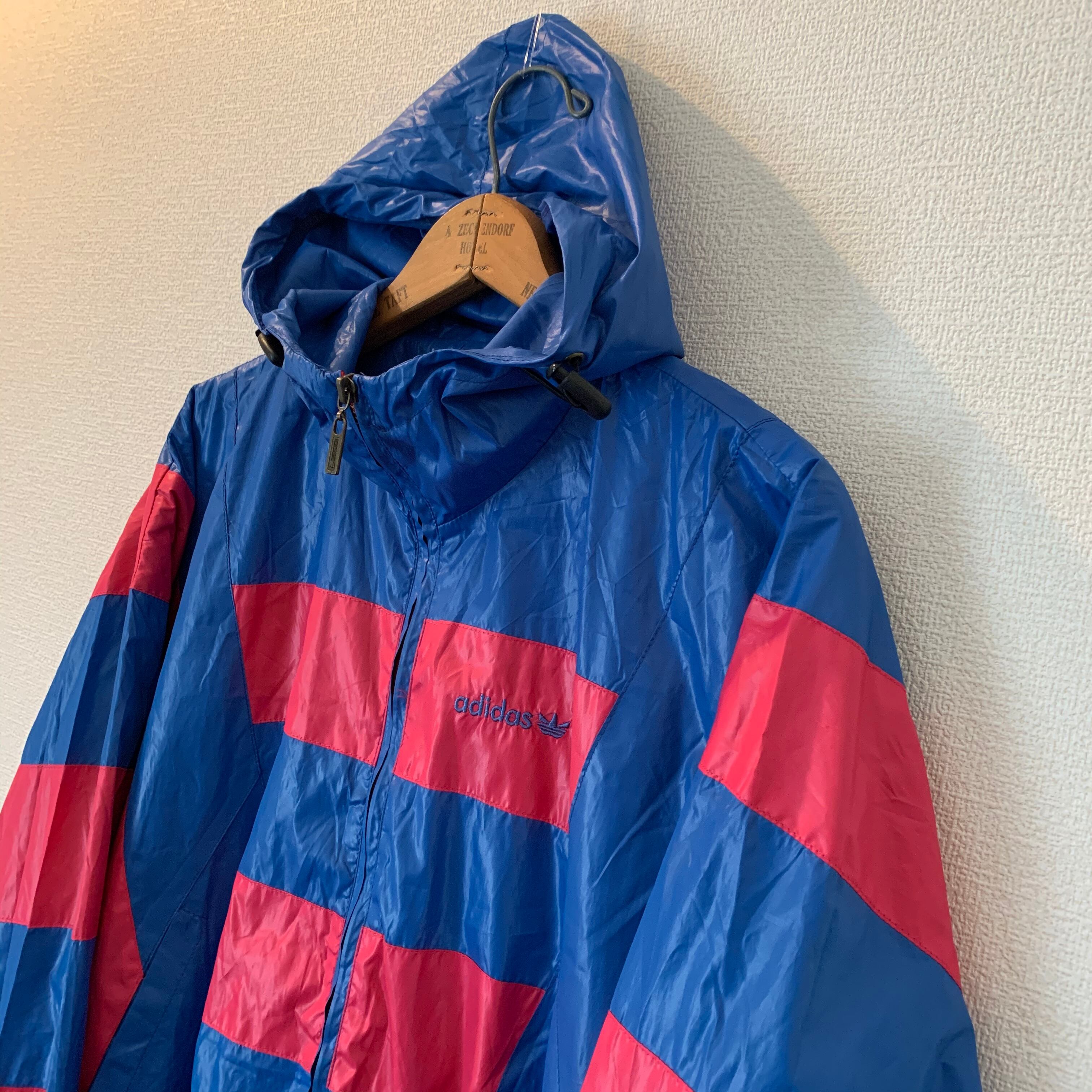 adidas originals by originals ラインのナイロンジャケット。90年代を彷彿とさせる配色。ジップアップのフード付きビッグサイズのcoolな一着。目立った汚れや破れなく美品です。