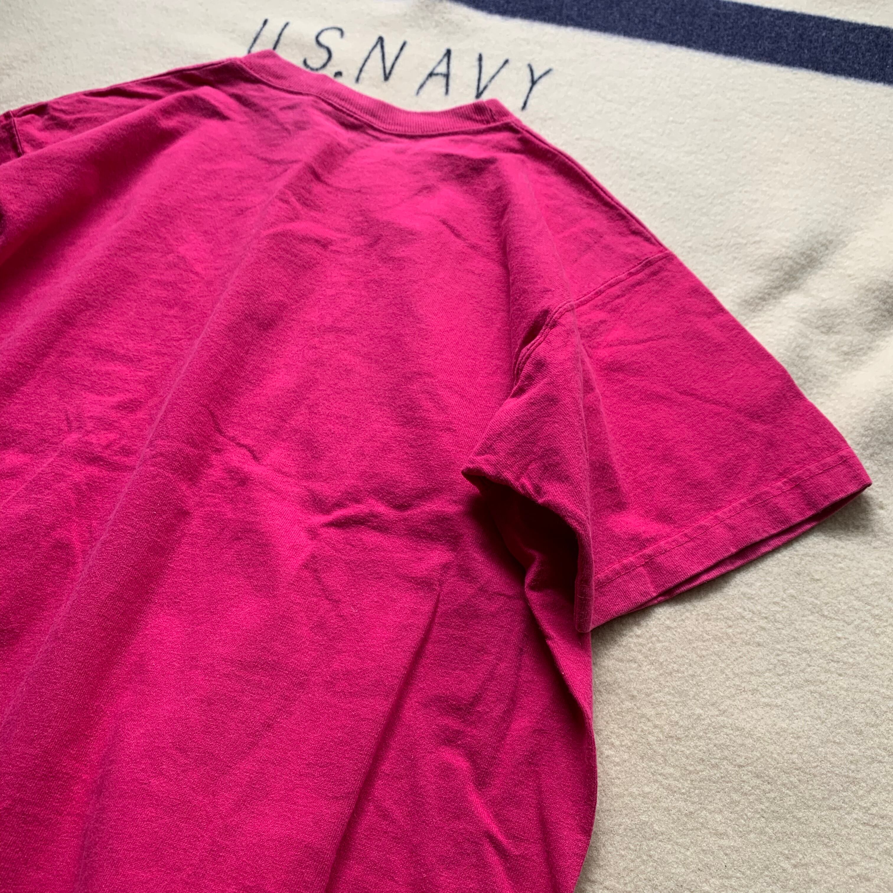 アメリカ製、ヘビーコットンのポケットT。珍しい濃いめのピンク。気を使わずガシガシ着れるグッドレギュラー。