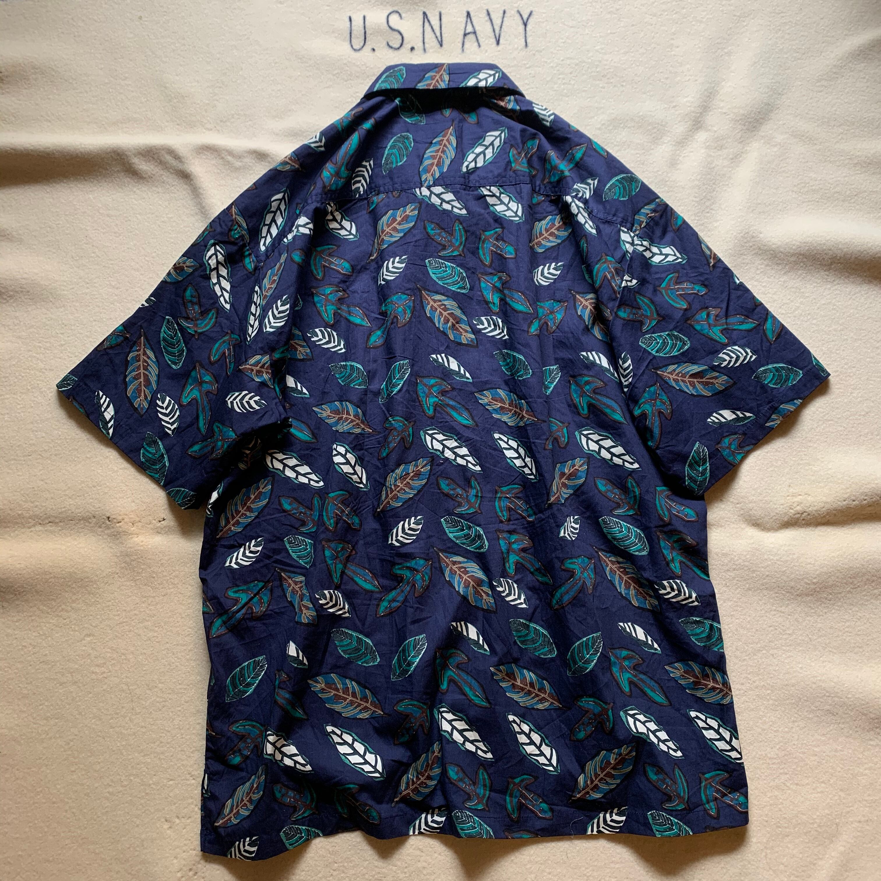 老舗アロハブランドKAHALAのアロハ。タグ付きのデッドストック。リーフの総柄で落ち着いた印象のカラーリング。コットン100%でパリッとした着心地。