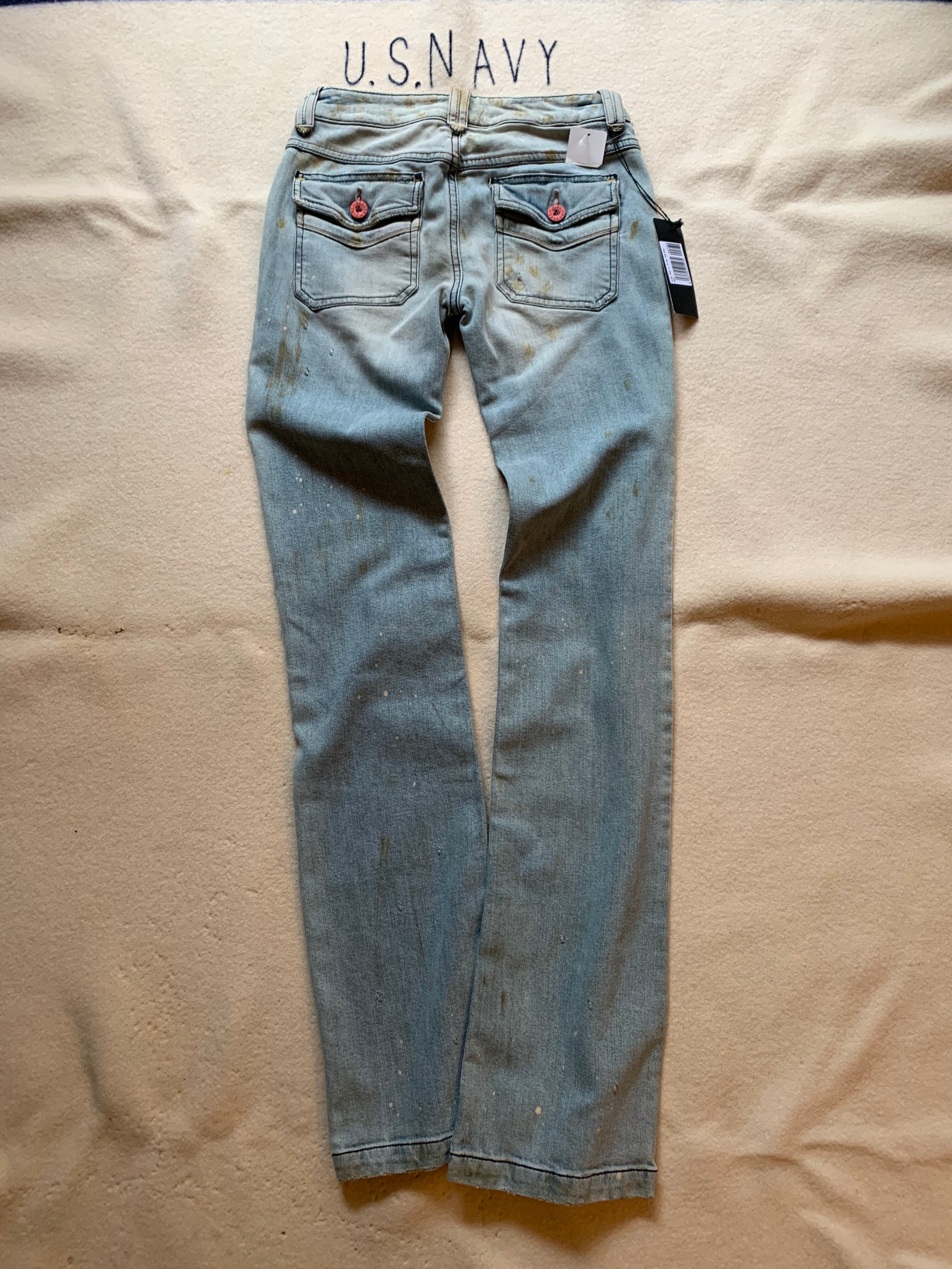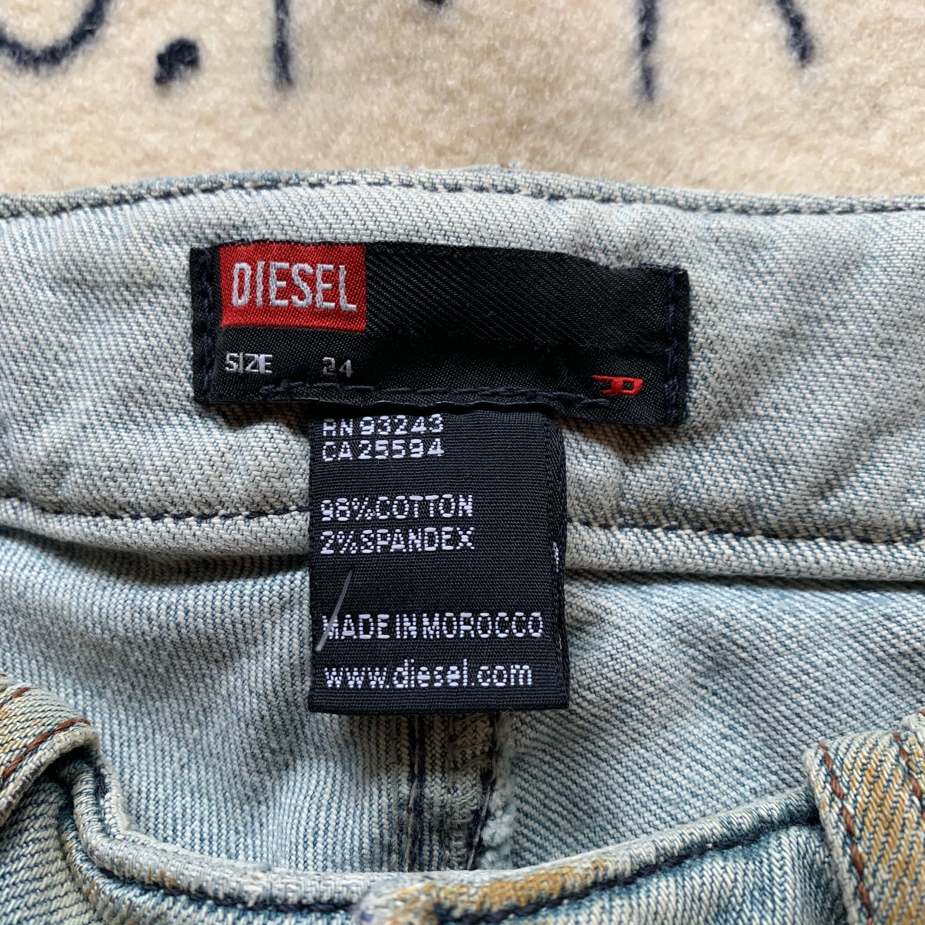 DIESELのスキニーパンツ。新品タグ付き。ローライズでややフレアがかったシルエット。スパンデックスが入りストレッチのきく素材になっています。定価36000程度。