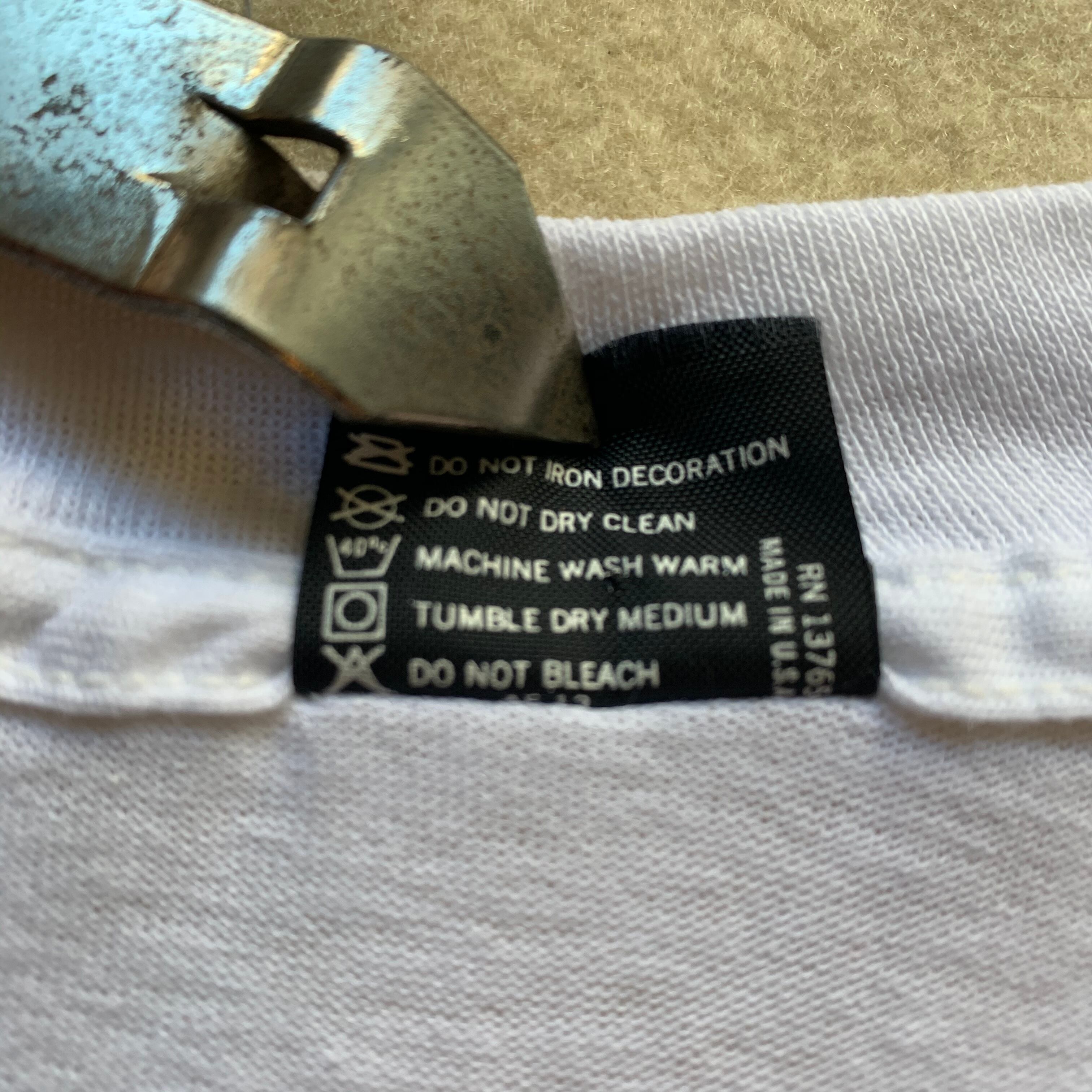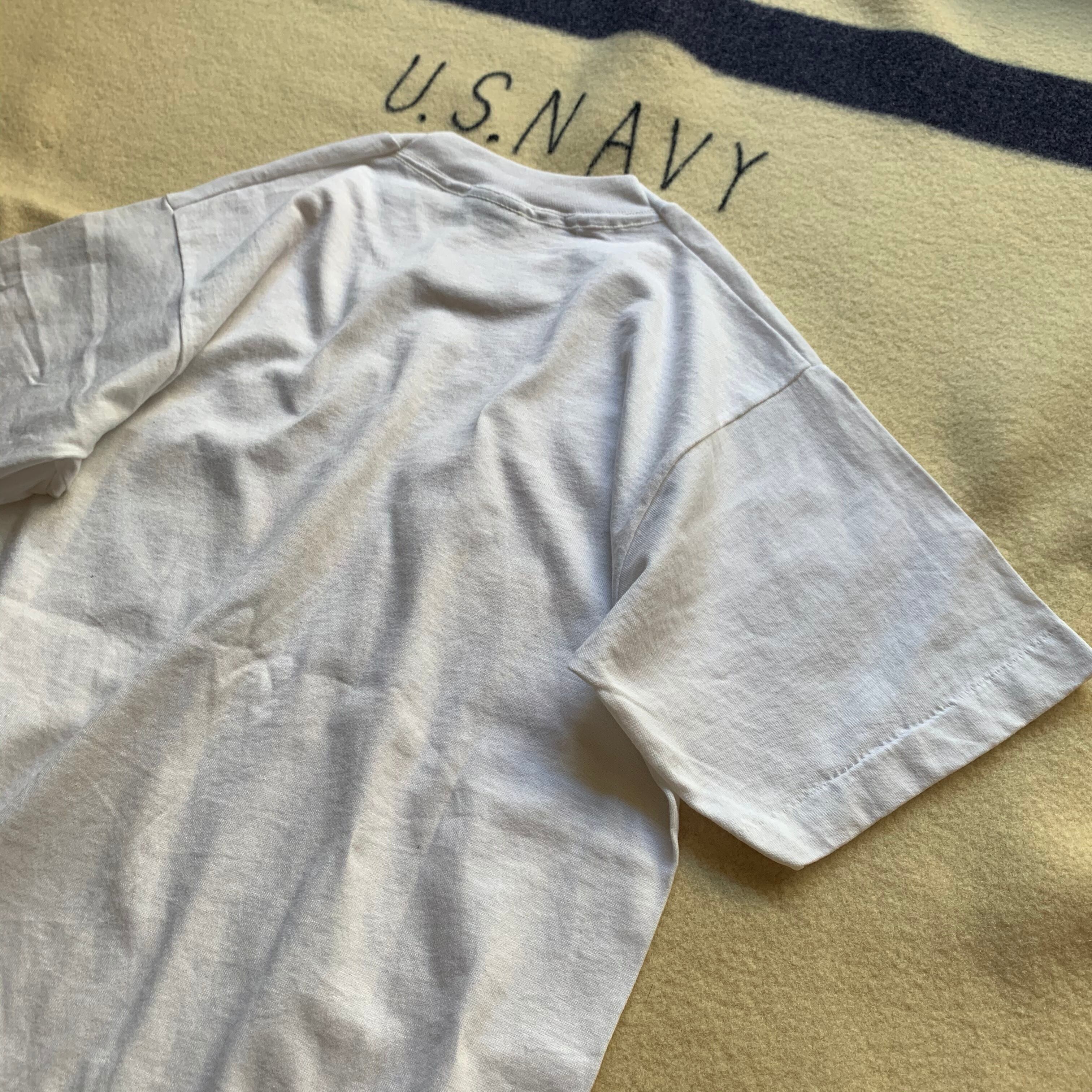 タグが切れていますがFRUIT OF THE LOOMのBESTボディで間違いないと思います。中々にダサいものが多いこの年代のTシャツですが文字の入りやプリントが秀逸な一枚。