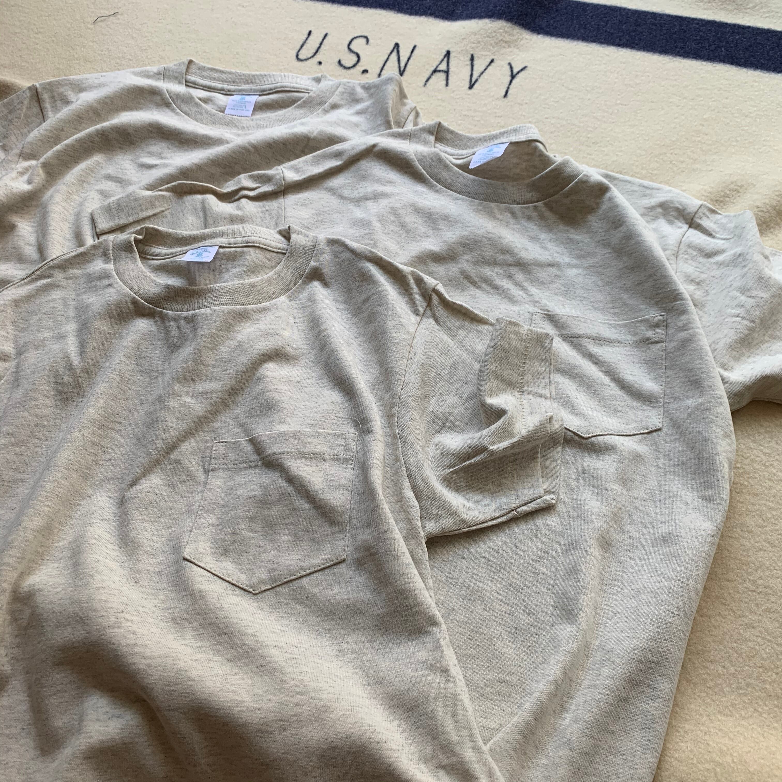 【3枚セット】Velva SheenのポケットTシャツ。オートミールボディのポケットTで使い勝手の良い一着。