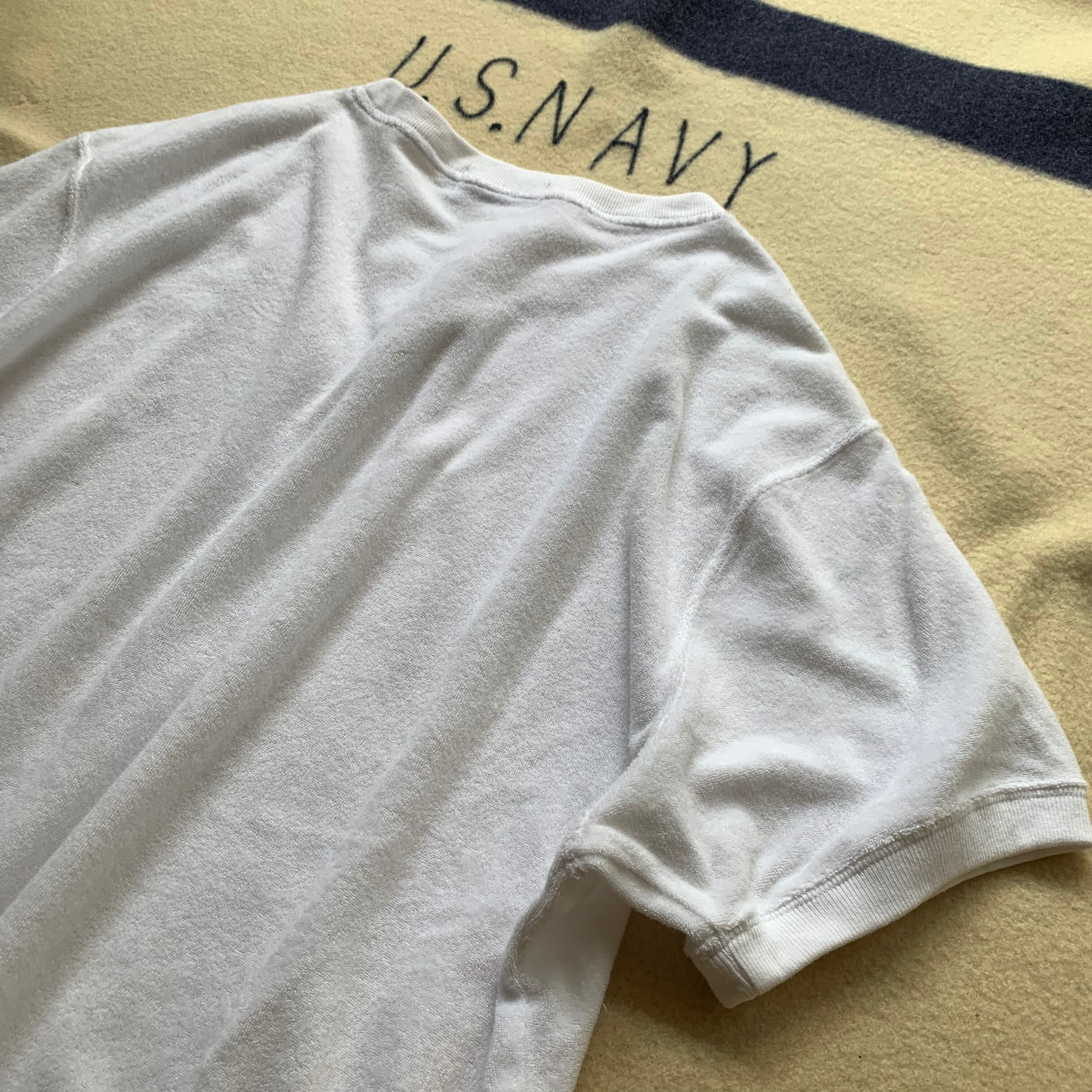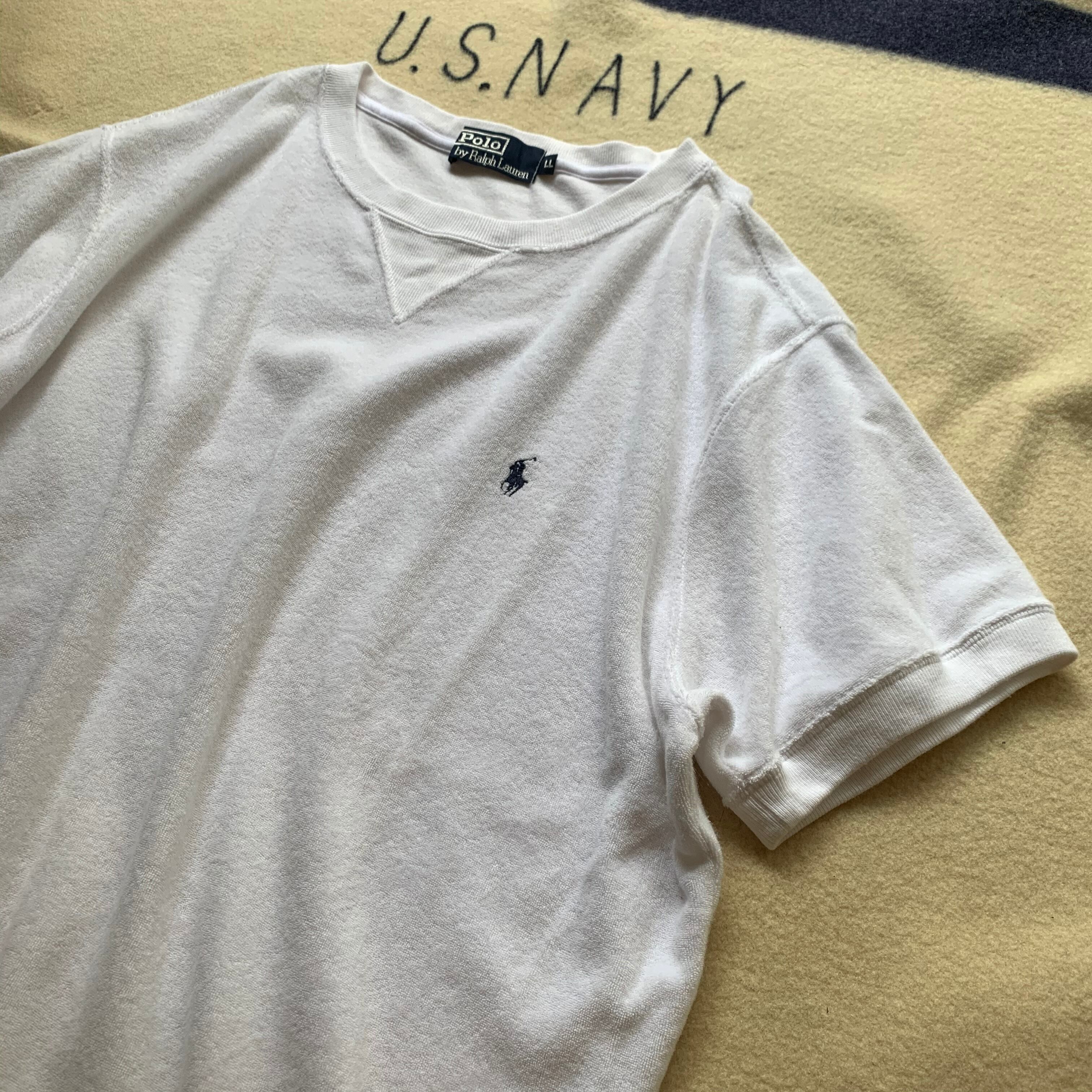 OLD、恐らく90sから00sのPolo by Ralph LaurenのTシャツ。Vガジェットや裾口、袖口のリブから半袖スエットなイメージですがごわつきやシルエット崩れは無くTシャツに近い着心地です。