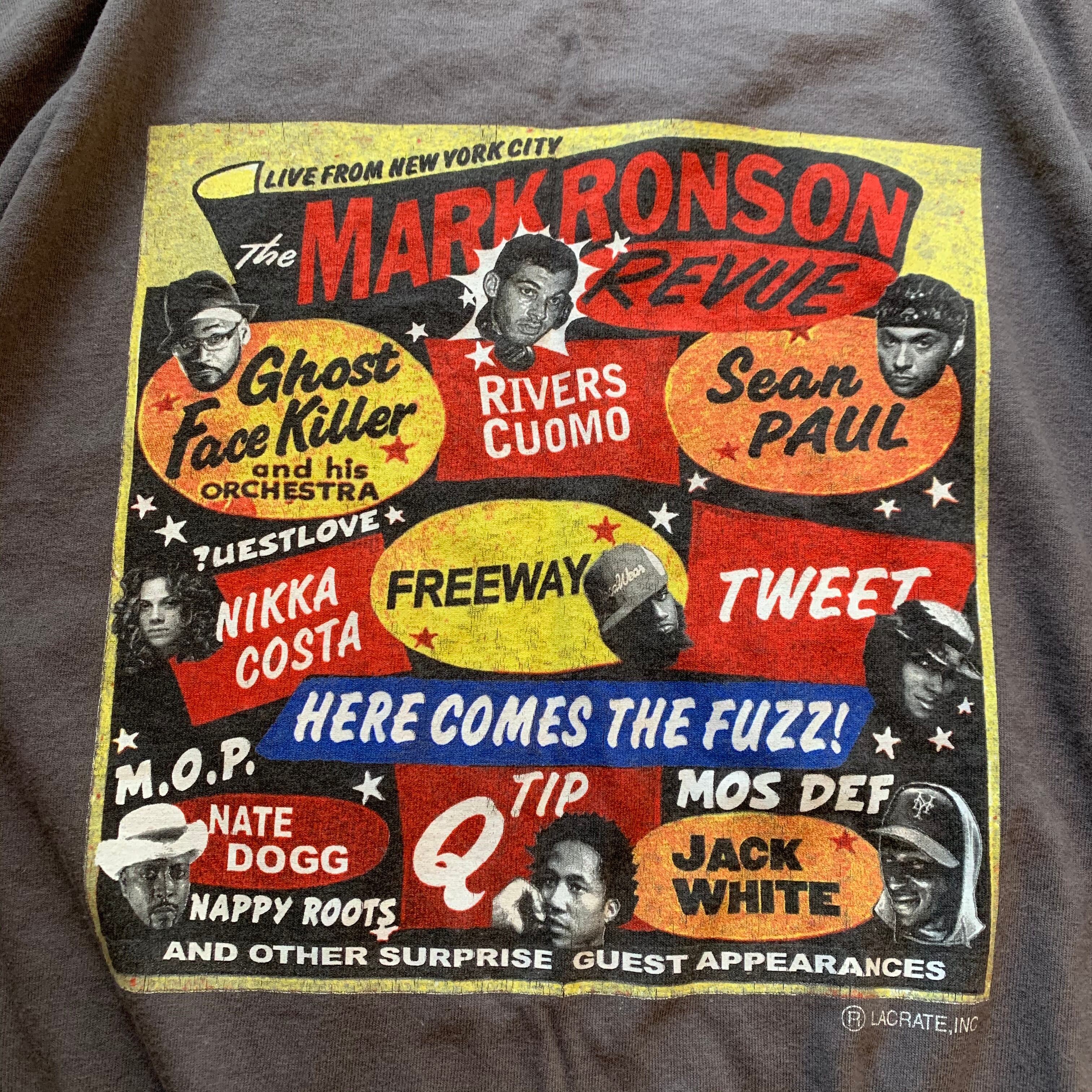 Uptown funkでBruno Marsと共演したマークロンソンを筆頭に名だたるヒップホップアーティストの名が入るライブT。こんなライブあったら行きたいですね、、