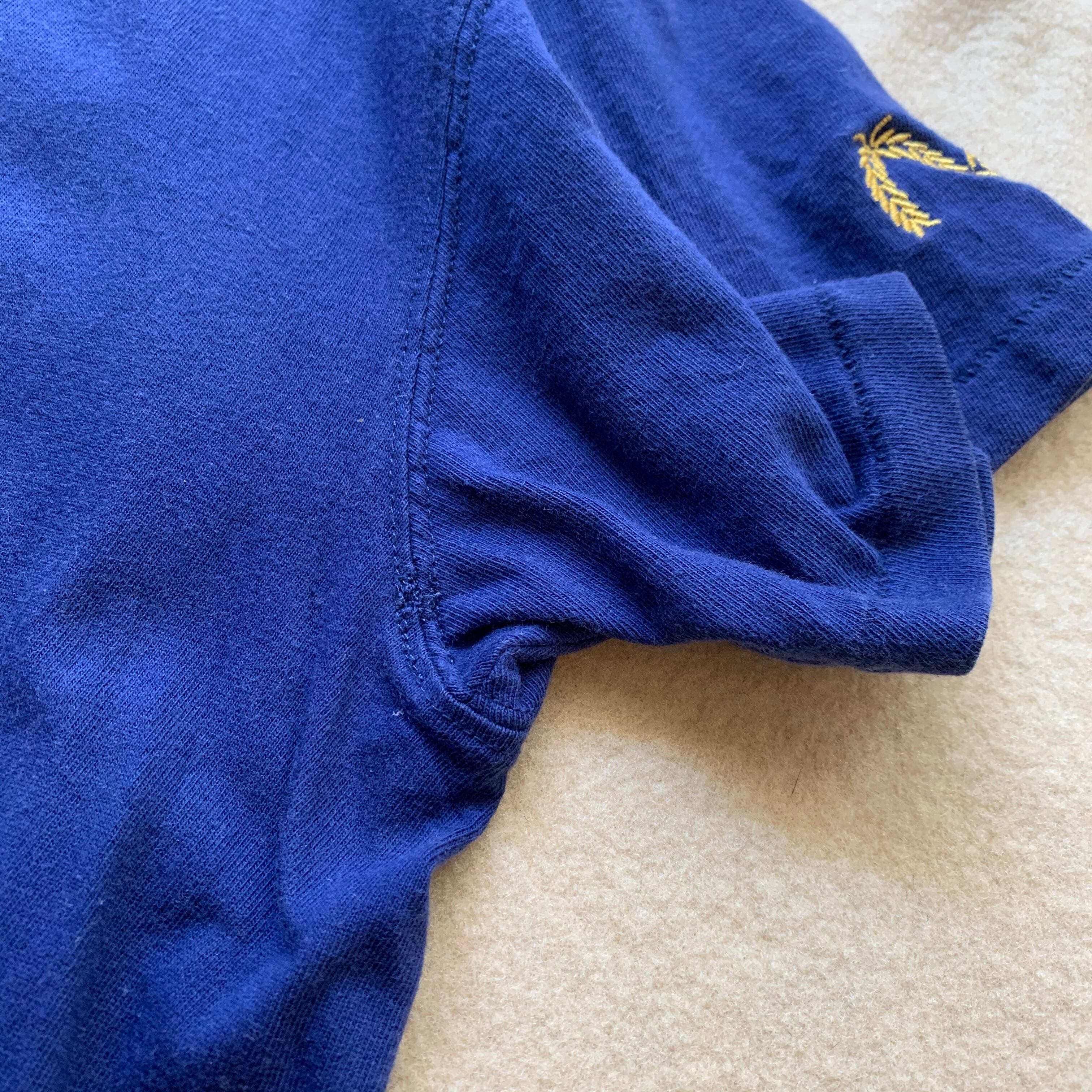 EVISU Tシャツ。裾口、リブがついており半袖スウェットのようなシルエット。バック左脇側に目を凝らすと見つかるレベルのシミあり。