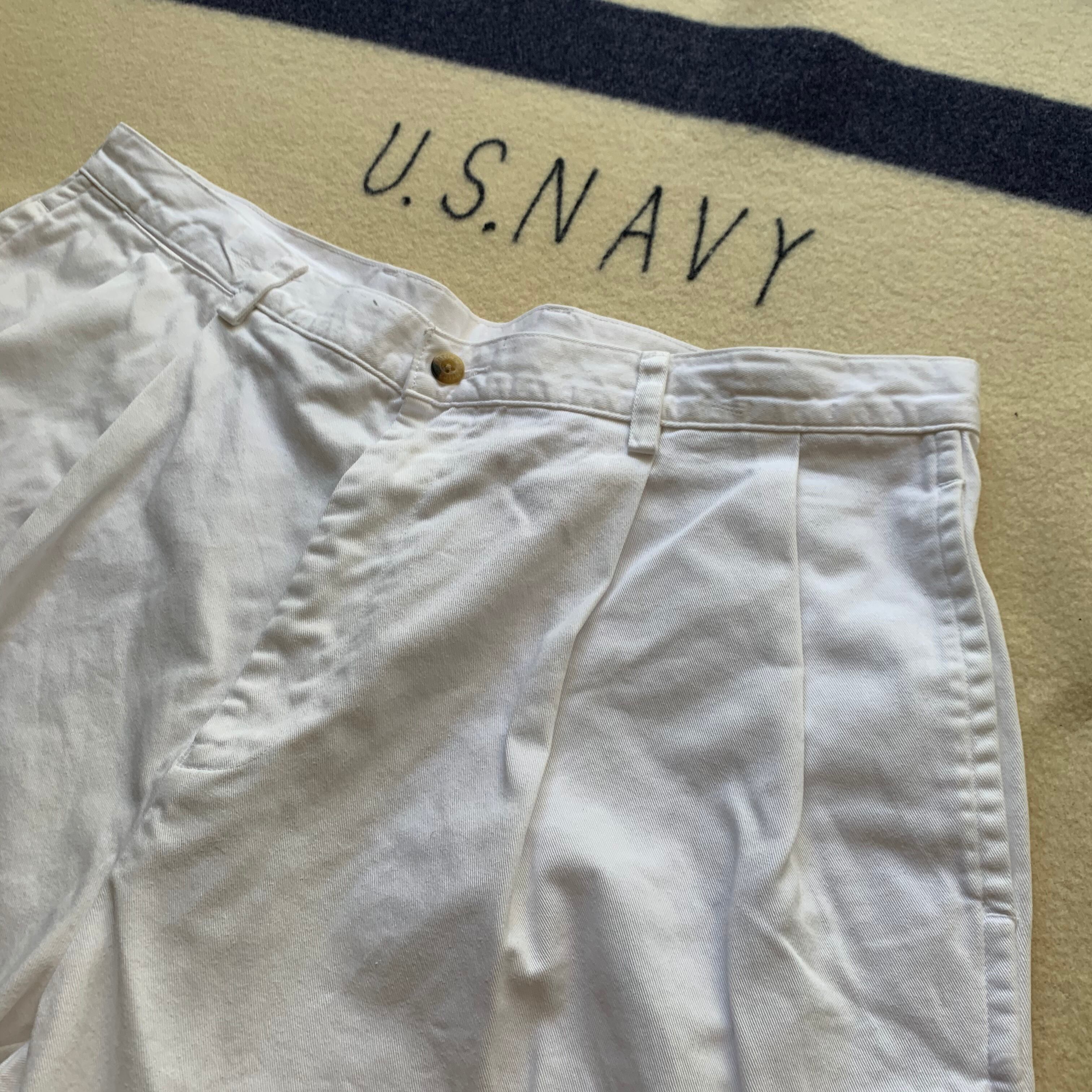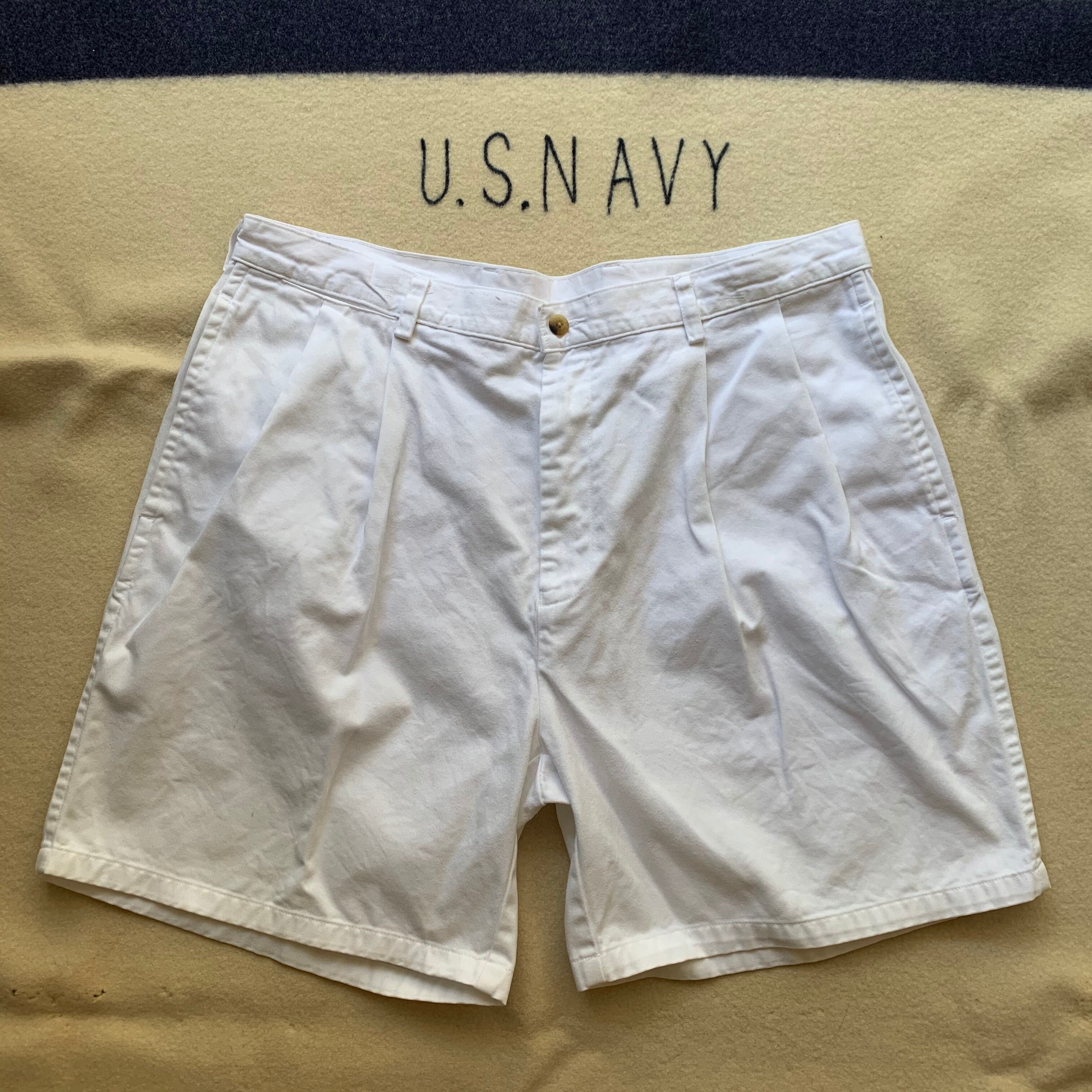 90s頃のNAUTICAショーツ。2タック入りでオールドスクールなシルエット。ビッグサイズを絞って穿いても表情でてかわいいと思います。フロントベルトループあたりに若干の汚れあり。
