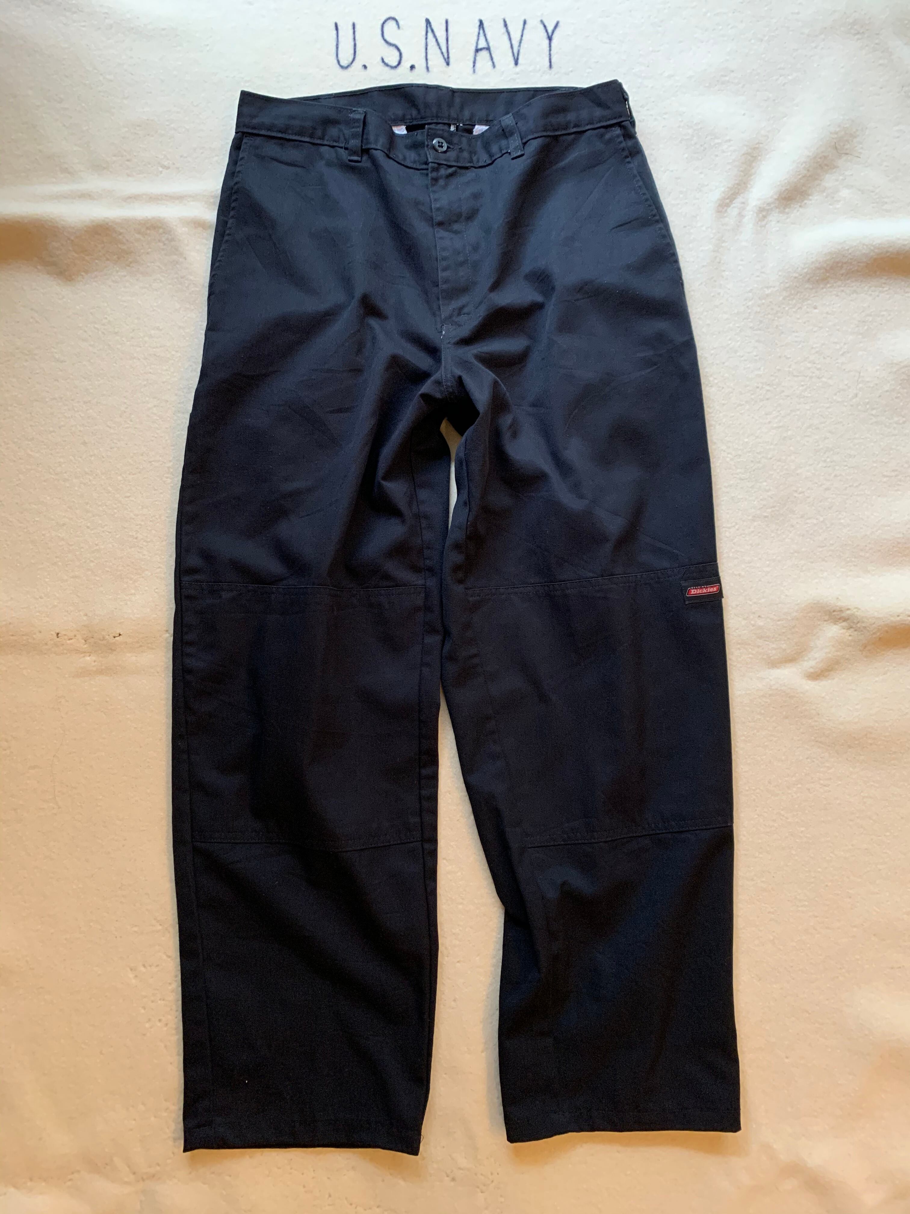 90s初期頃のDickiesパンツ。珍しいダブルニーにカラーはブラック。ジッパーはIDEALジップ。ヴィンテージ ディッキーズで日本人サイズ、ブラックカラーにダブルニーは探しても中々出てこないと思います。