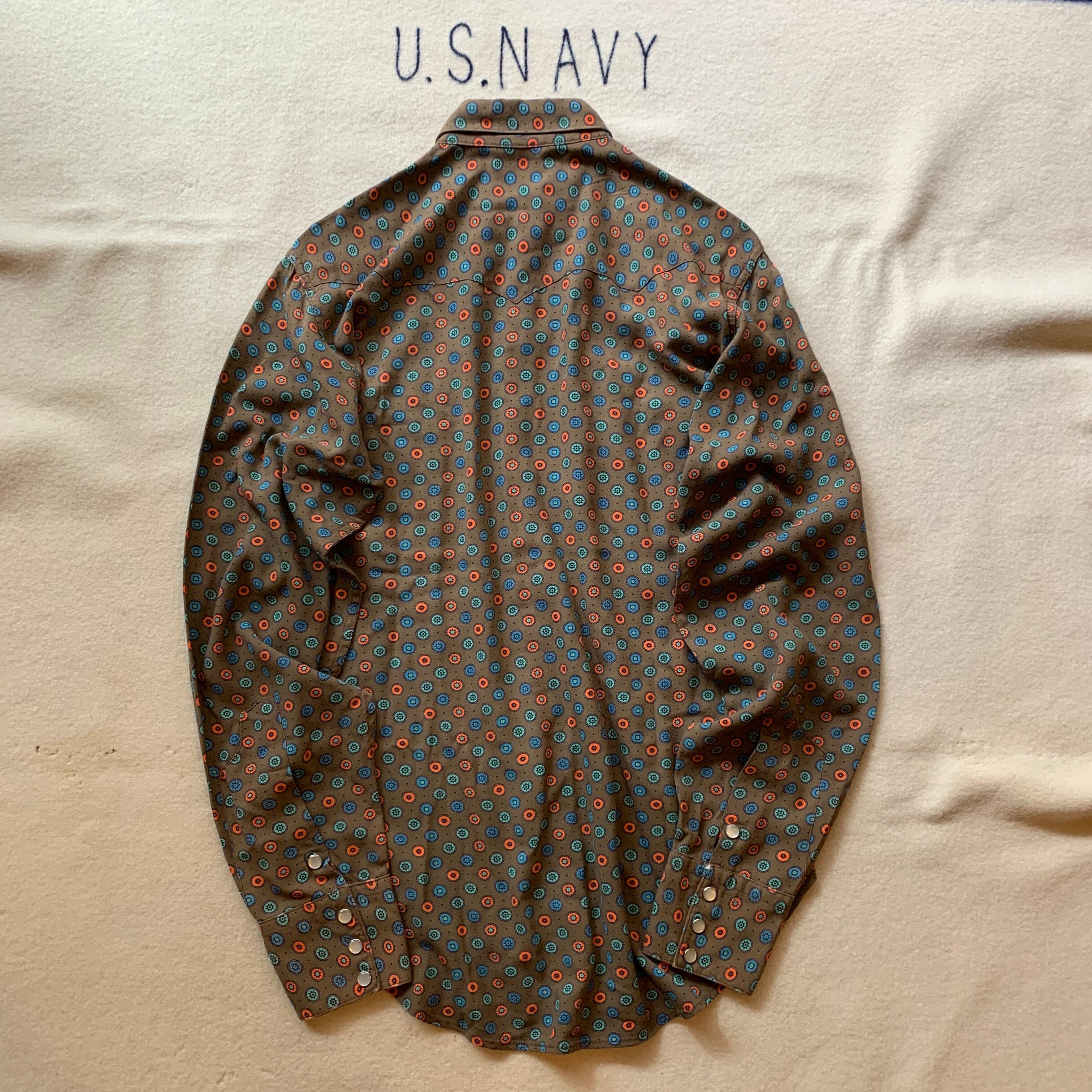 50s-60s頃のヴィンテージウエスタンシャツ。レーヨン混でテロっとしたヴィンテージウエスタン。アトミックや日本の古銭柄を彷彿とさせる非常にレアな柄。