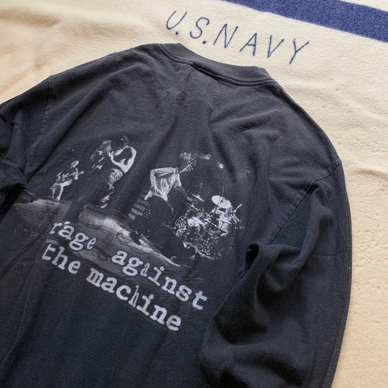 90sのrage against the machineのロンT。言わずもがなと思います。コピーライト入り、消えかかっていますが1997s。いい感じのフェイドがかったボディです。
