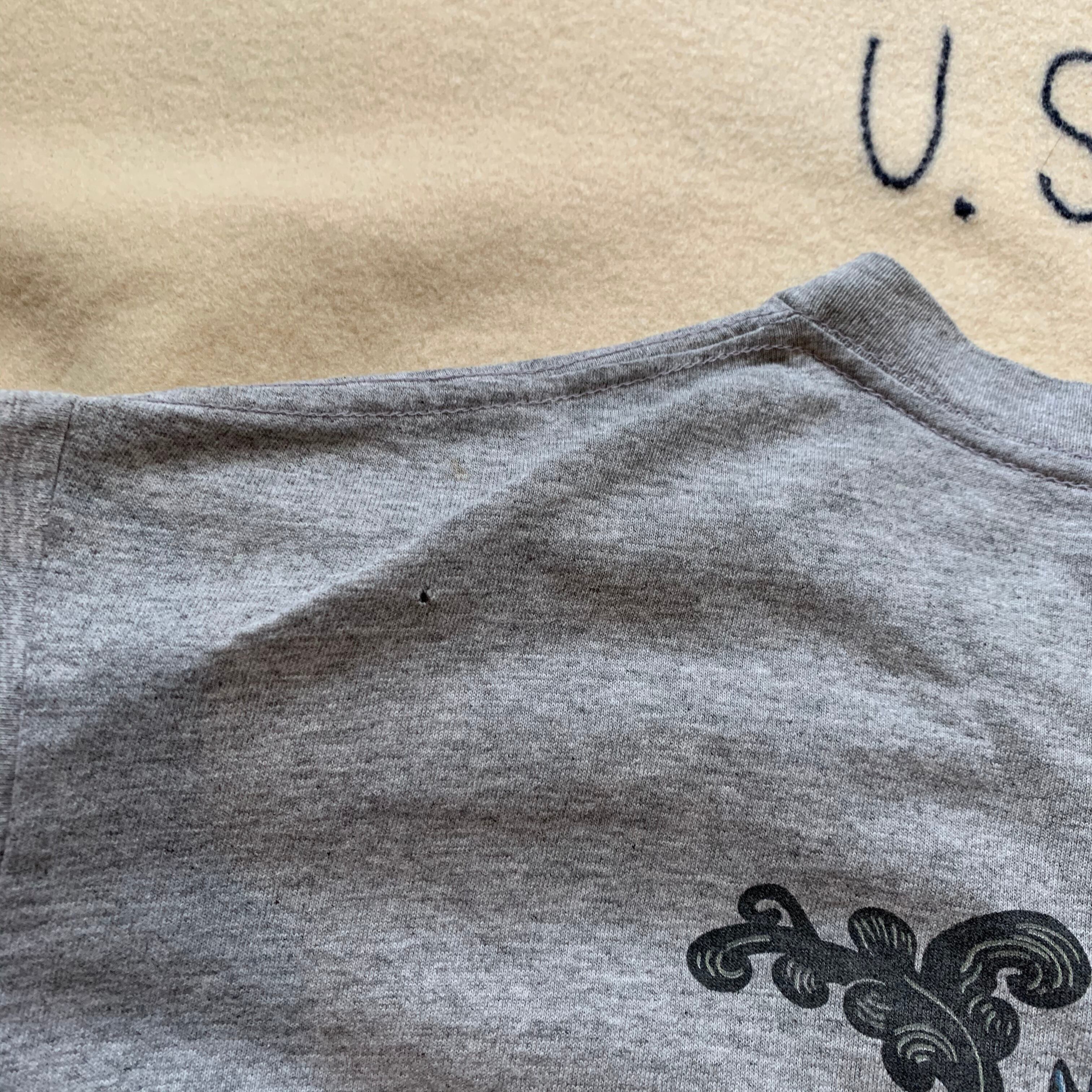ピンホール大の穴が数カ所ある以外は汚れもなく古着慣れしていれば問題なく着用できると思います。