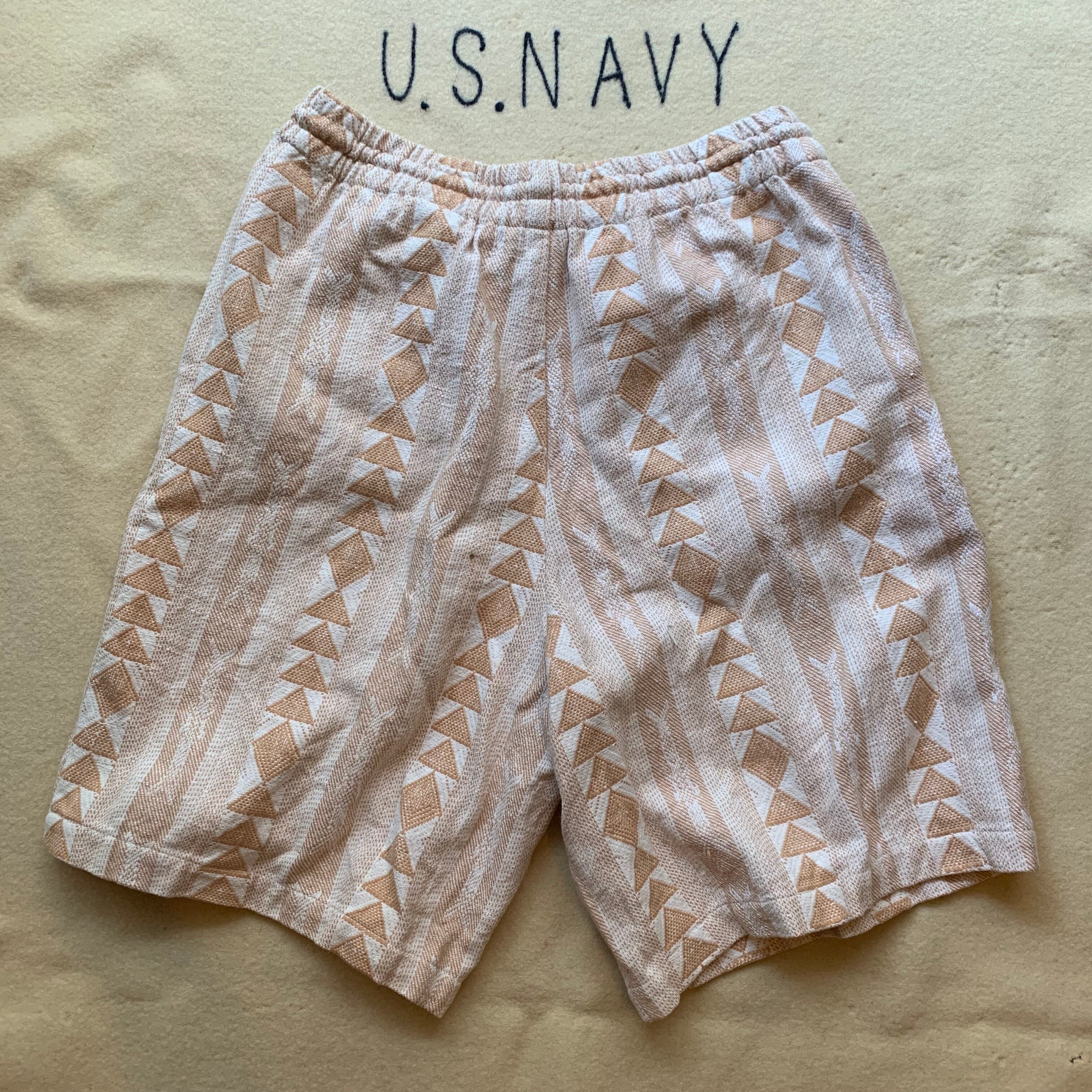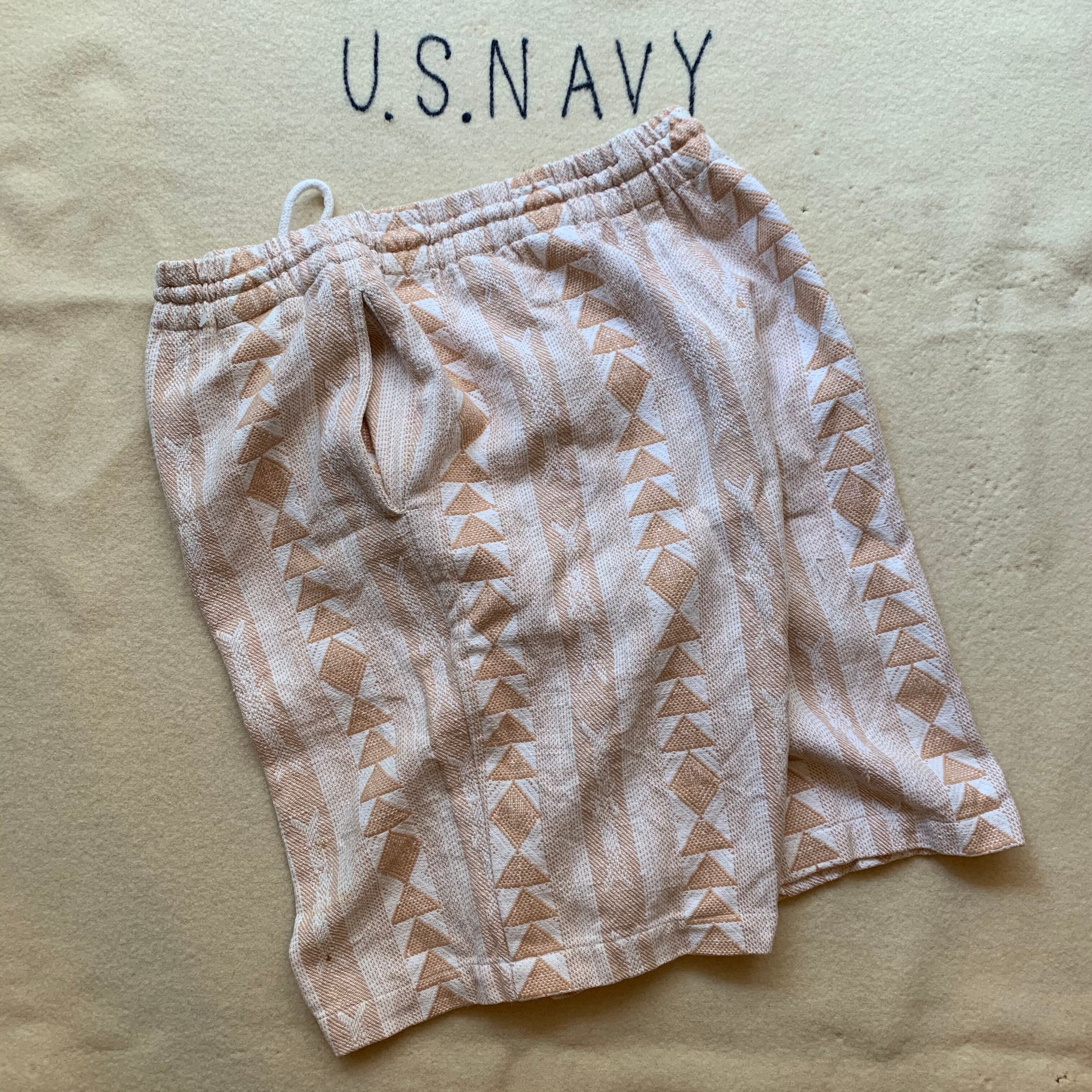 ジャガード織りで編まれたヴィンテージショーツ。90s頃のLA TRADINGというブランドのものと思います。