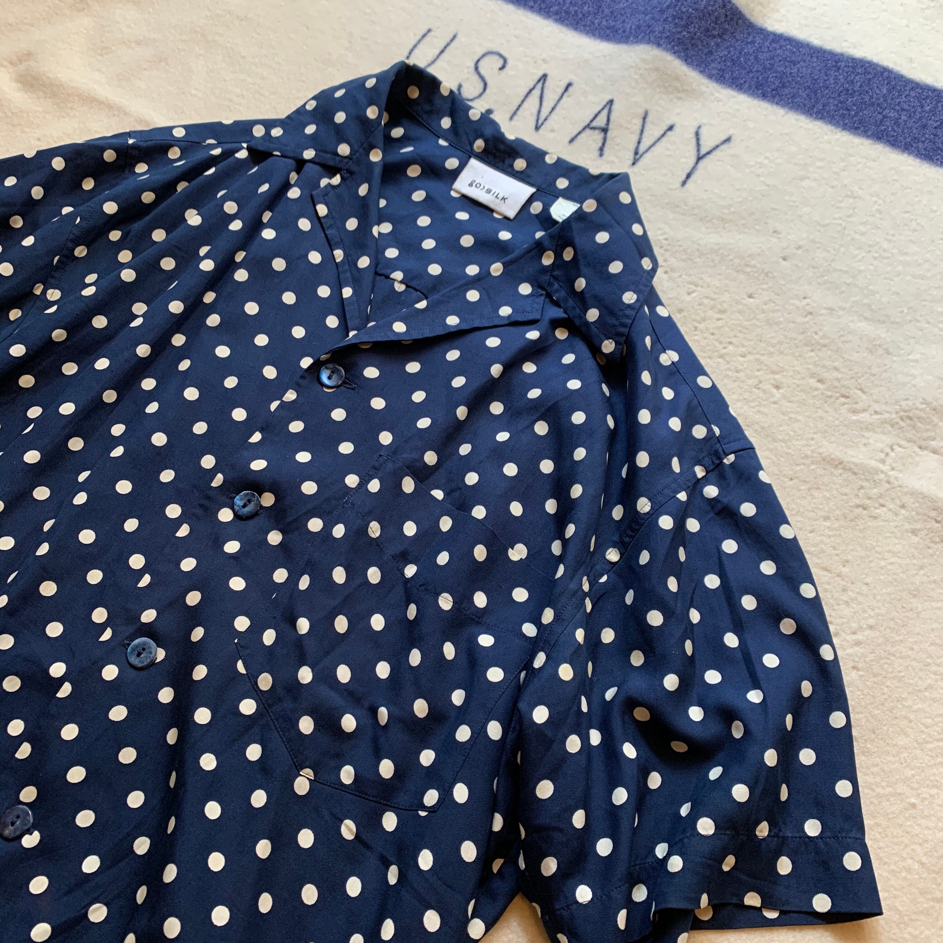 80s-90s頃のgo silkというブランドのシルクシャツ。シルク100%でテロっとした生地感。今からおおよそ30年以上前にこのシルエット、デザインは感動します。ボックスのシルエットにドット柄、シルク生地でオープンカラーにすることで高級感も綺麗め感もでる…これぞgoodレギュラーと思います。