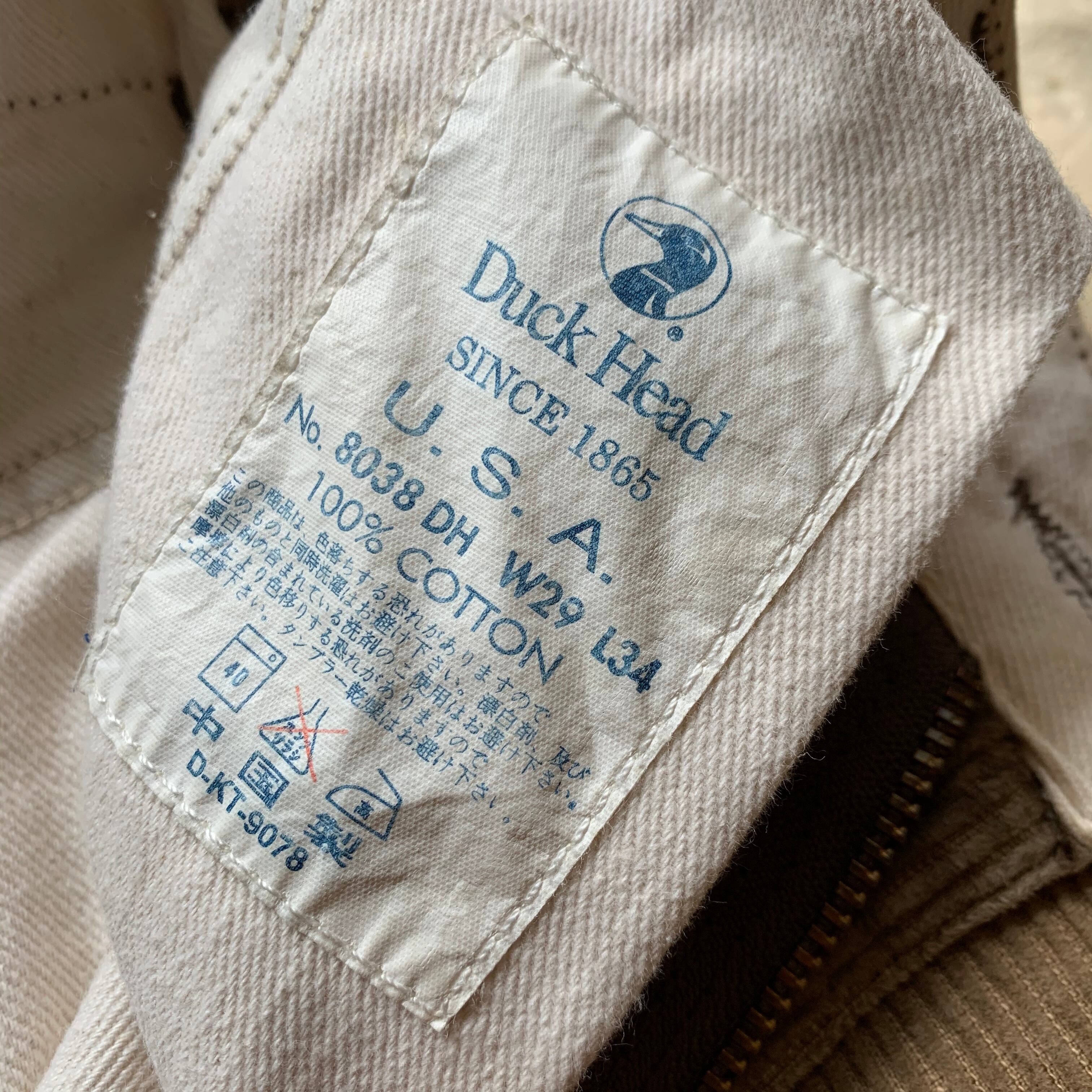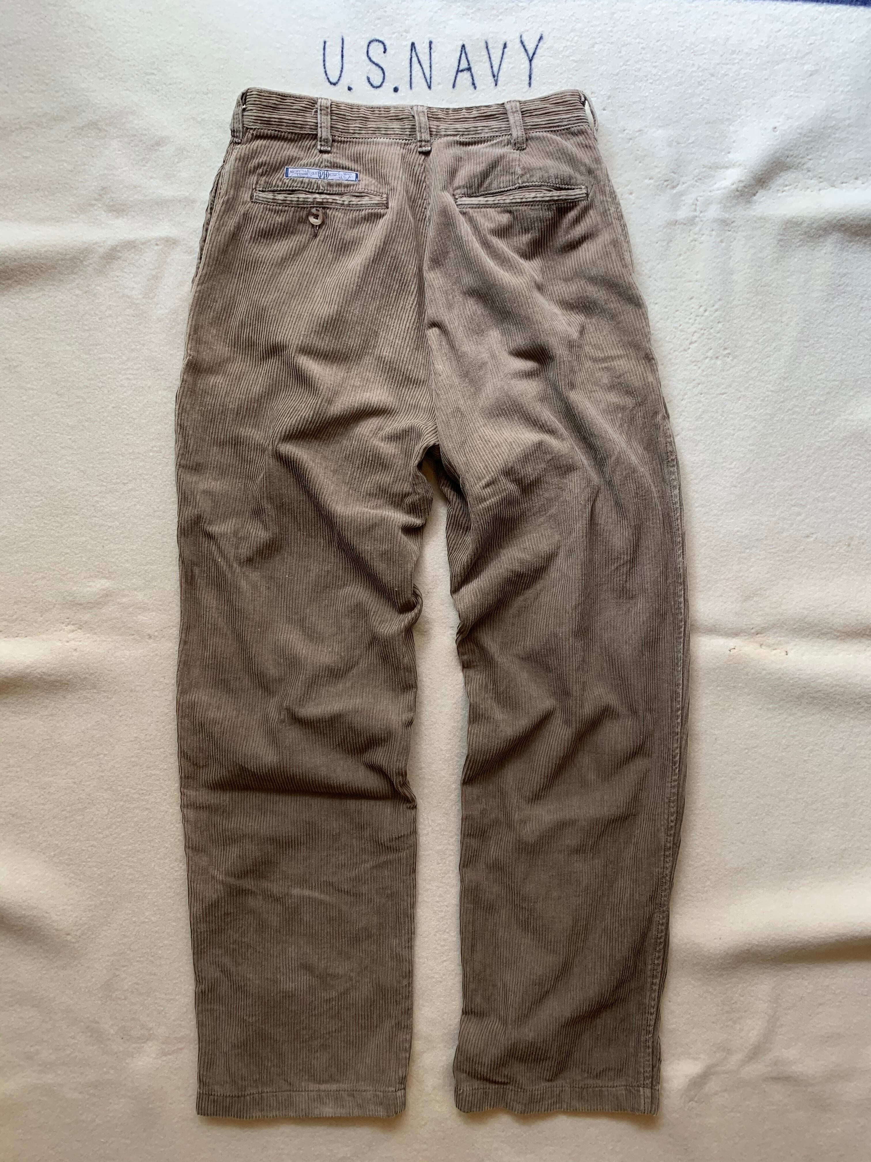 00s初期頃と思います。ハンティングアイテムで有名なDUCK HEADの太畝コーデュロイ。フォーマルな印象をうけるデザインですがタックが入らない事によってカジュアルに着こなせる一着。
