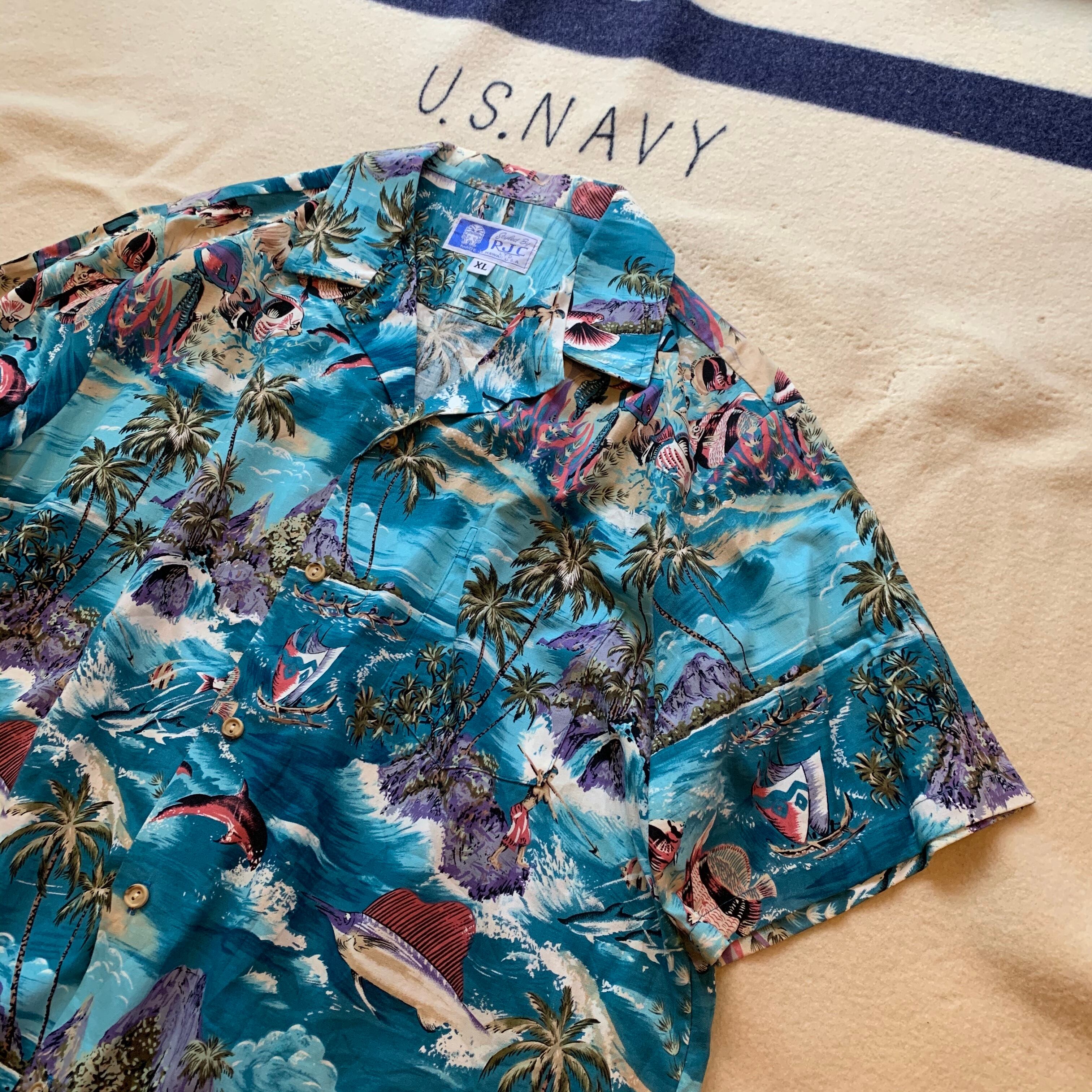 アロハシャツでは定番のRJC アロハシャツ。ハワイ製。タグなしですが非常に状態良く新品に近い状態と思います。