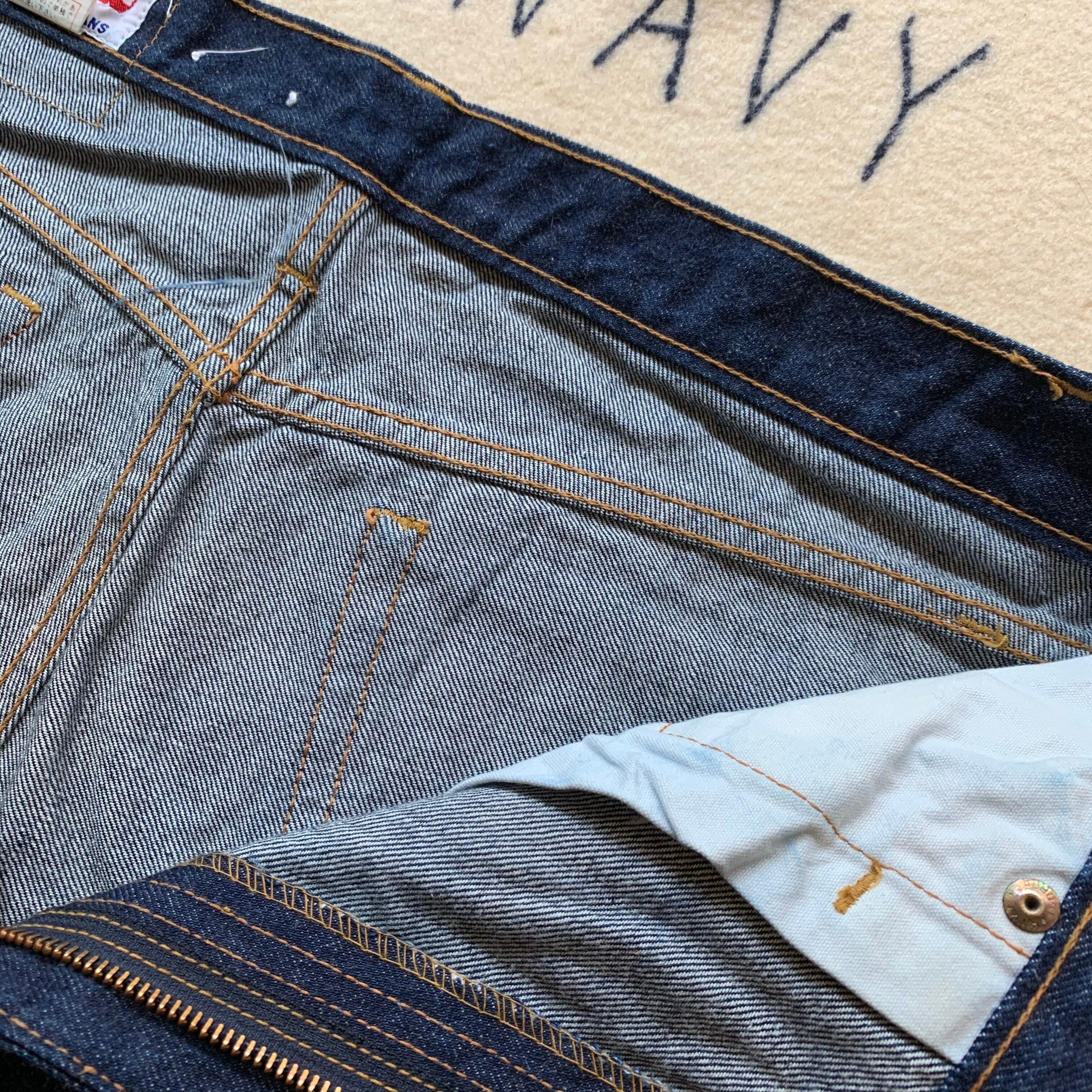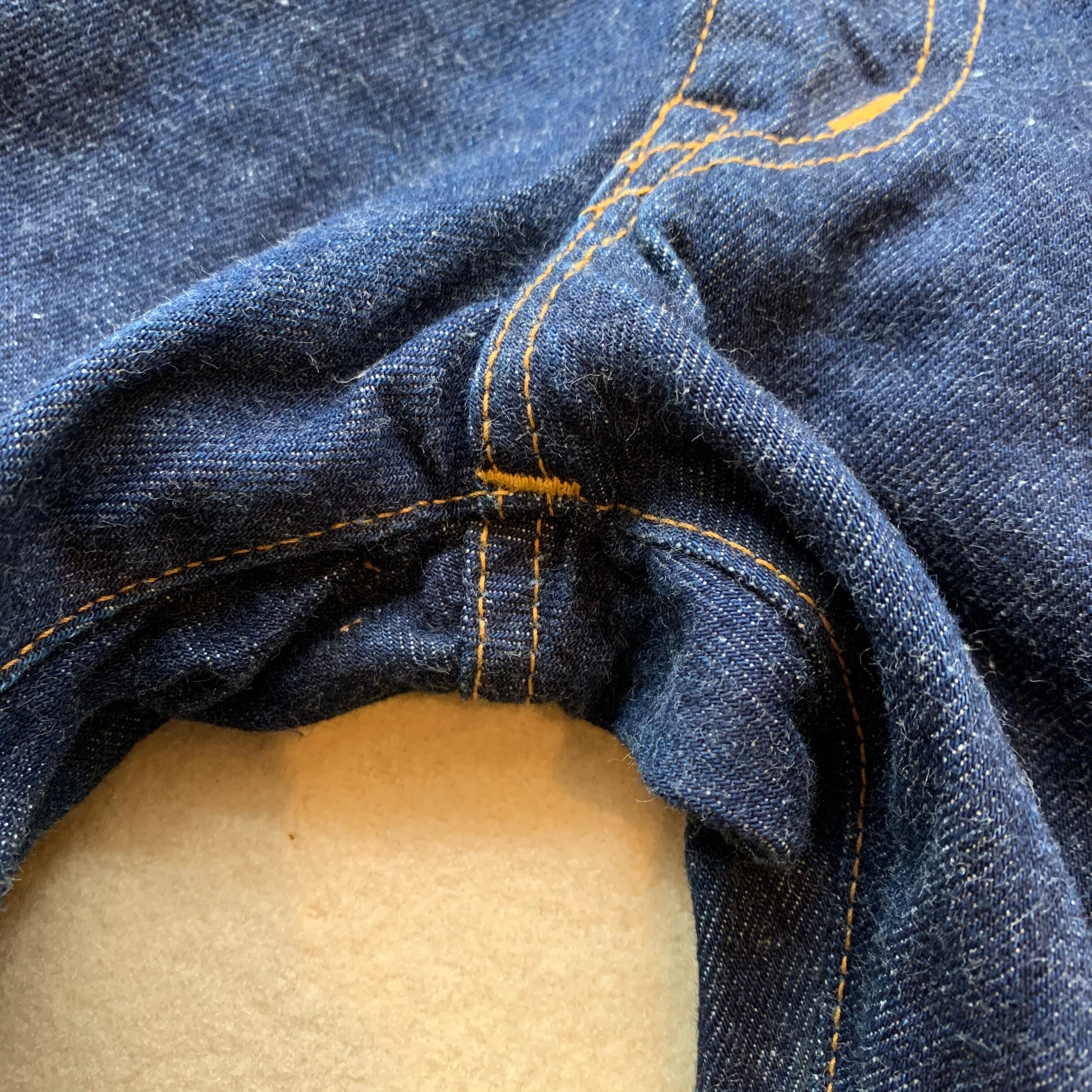 こちらは70s前期くらいのLevi’s505インスパイアではないでしょうか?裾口チェーンステッチもポイント高いです。