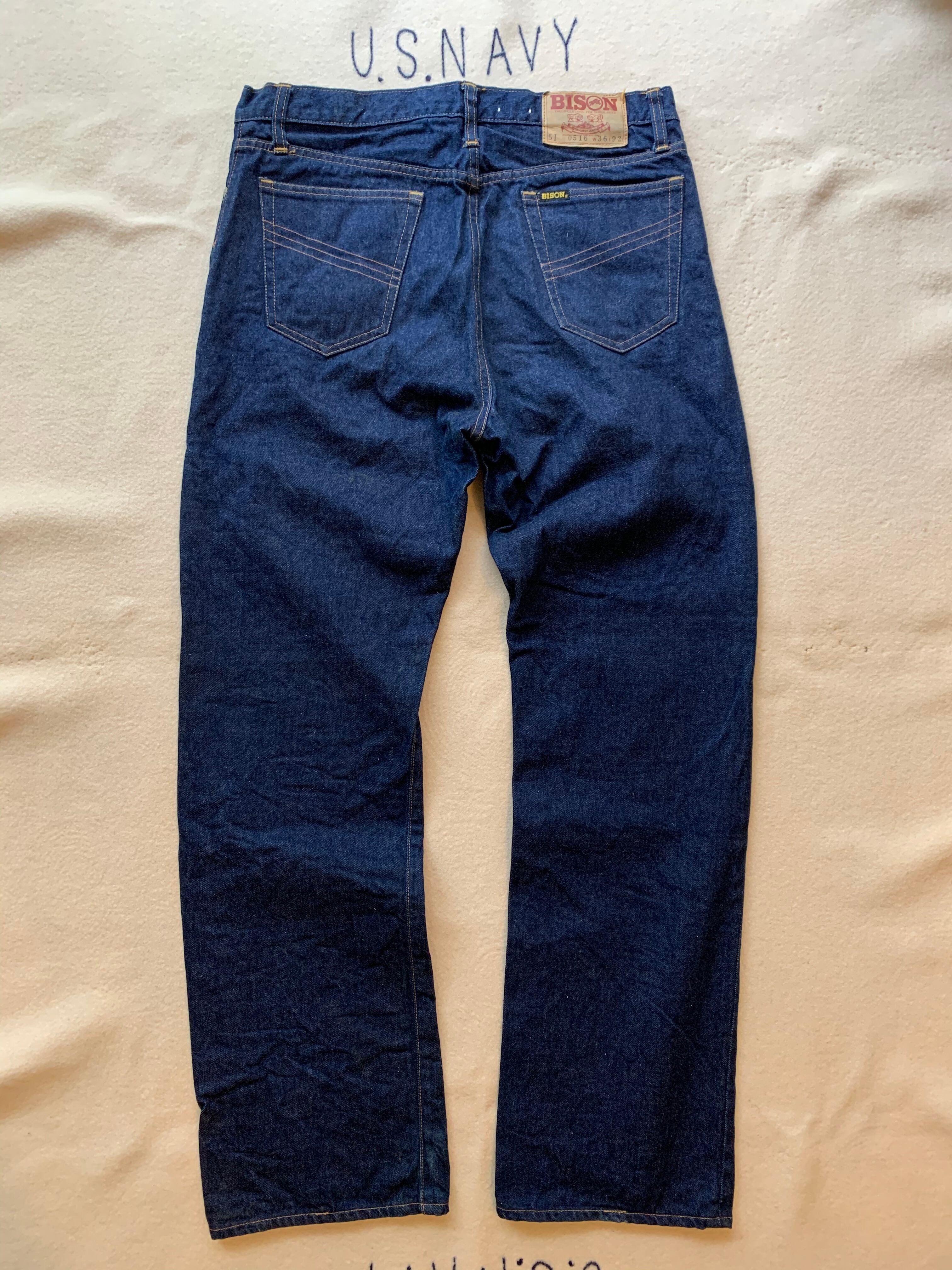 70s 国産ブランドBISONのヴィンテージデニム。この年代の日本製はアメリカから生地を輸入してデニムを作っていた為、色落ちはアメリカ製のヴィンテージデニムと遜色なくジッパーやその他ディテールもリーバイスを意識した作りになっています。と思ってます、、