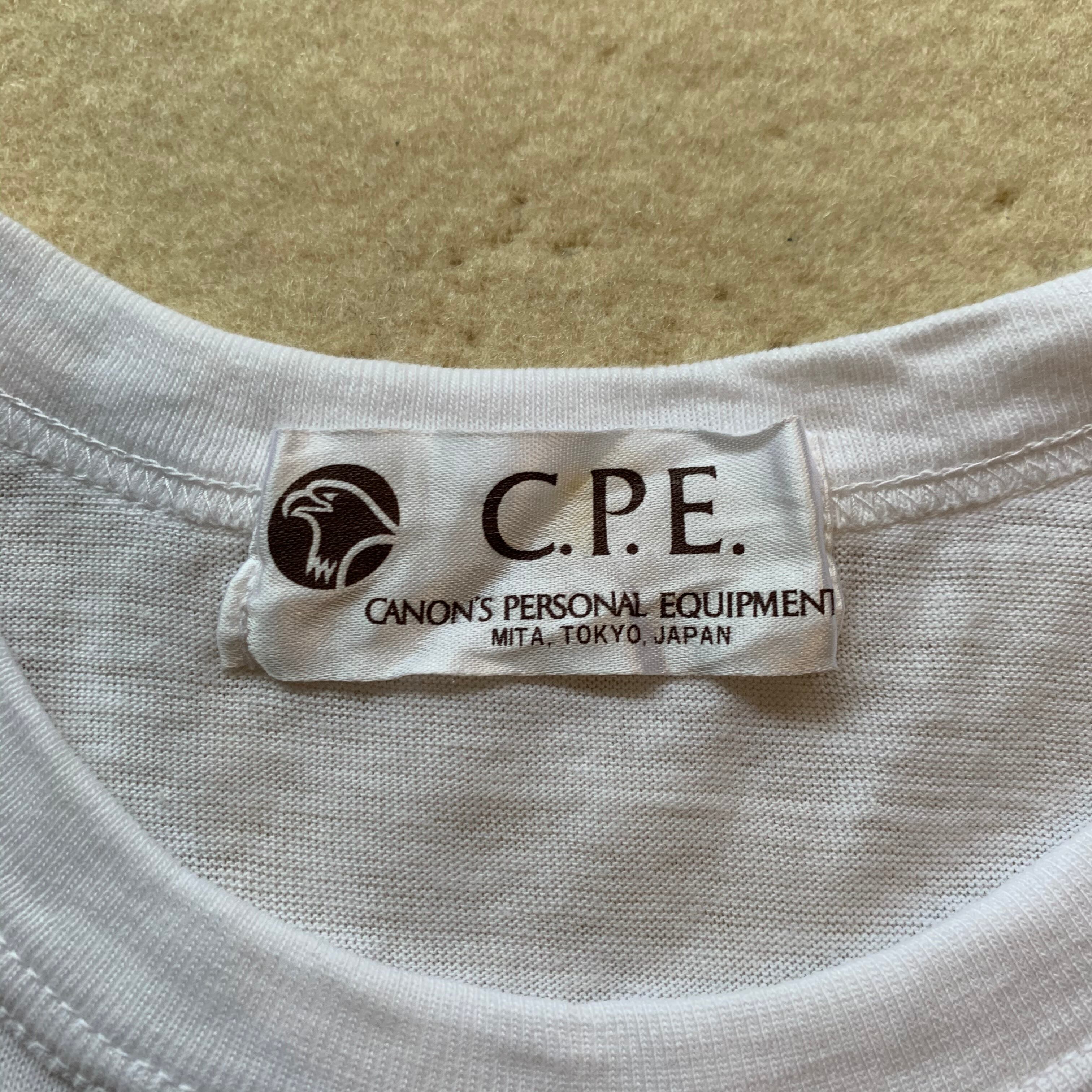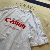 80s頃のCANON販促Tシャツ。made in JAPAN、袖口裾口はシングルステッチ、プリントは染み込みプリントとヴィンテージ要素満載です。