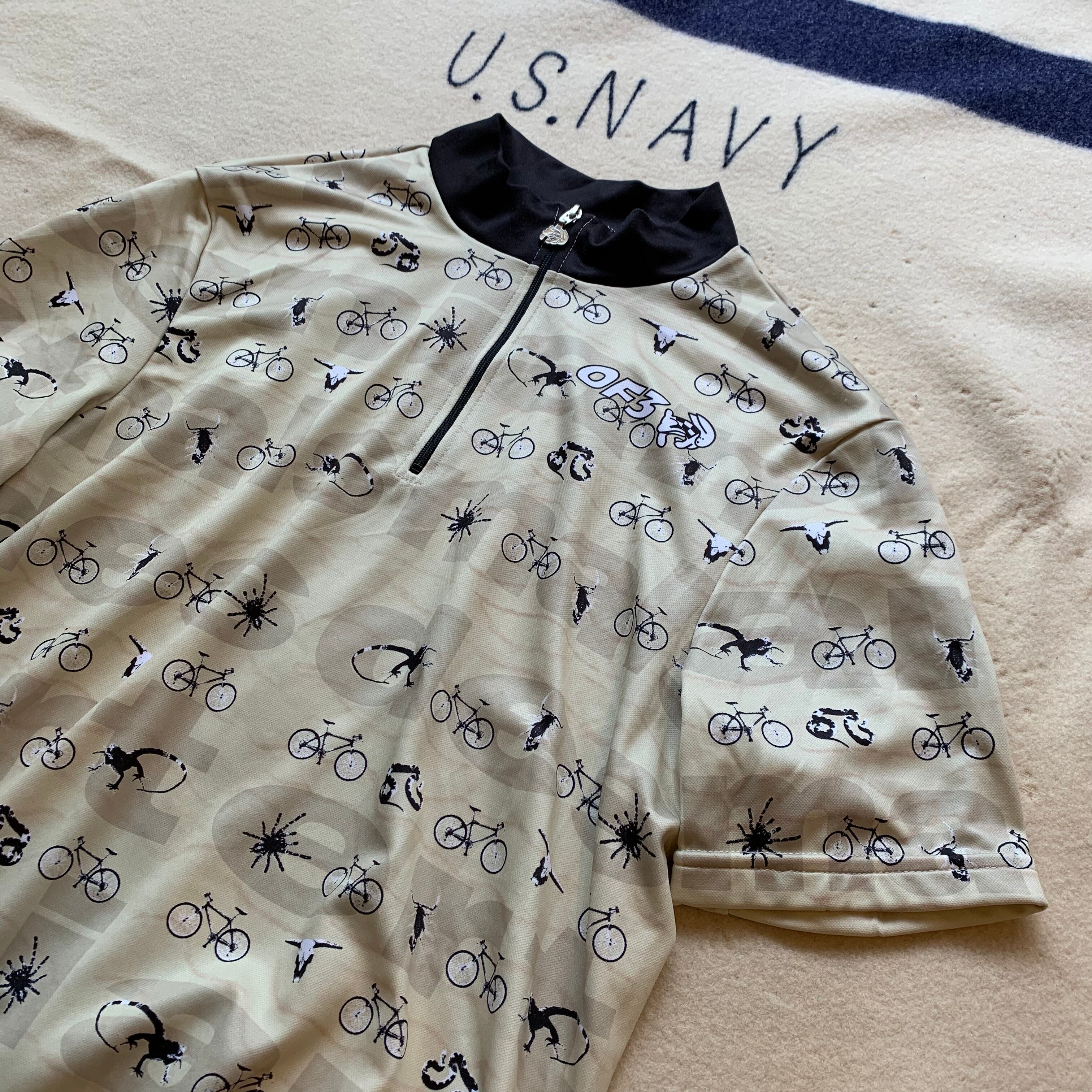 あまり出回らないOF3のサイクリングジャージ。バイクや蜘蛛、トカゲの総柄でサイクリングジャージでは珍しいパターンと思います。