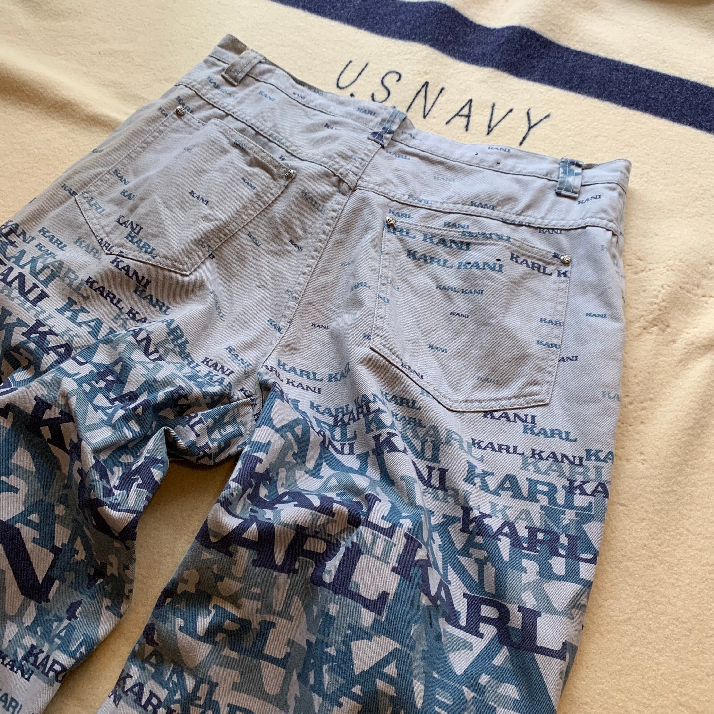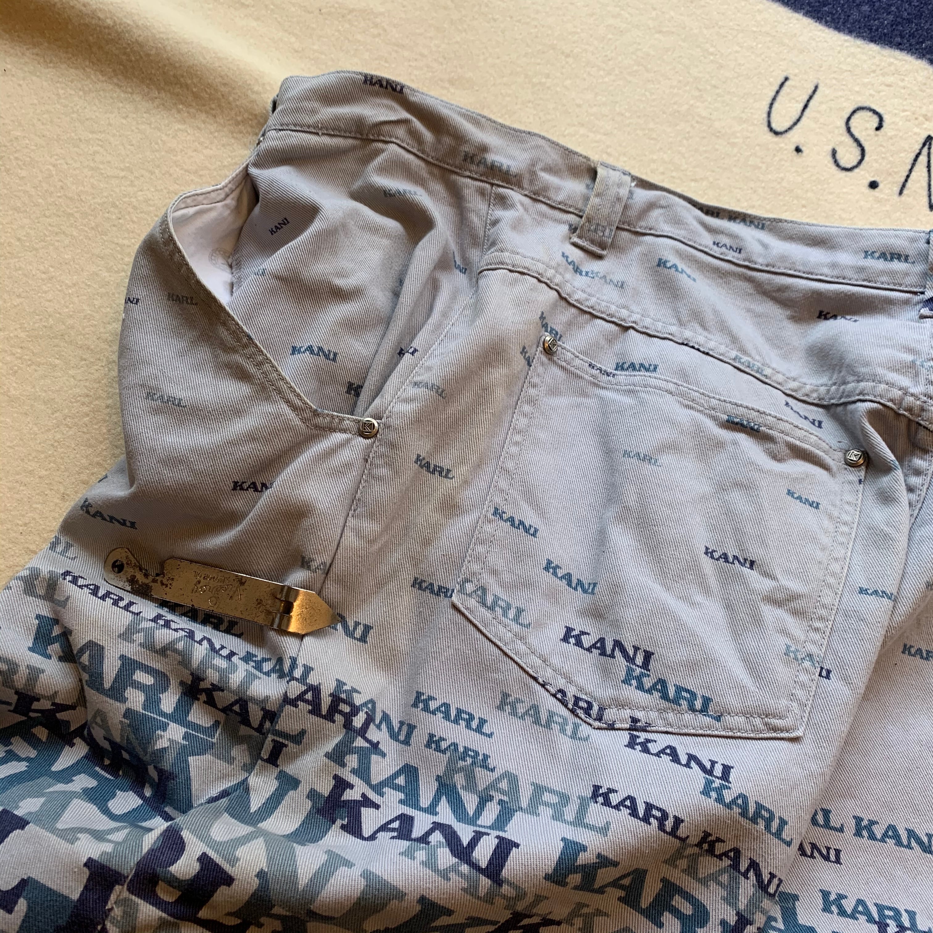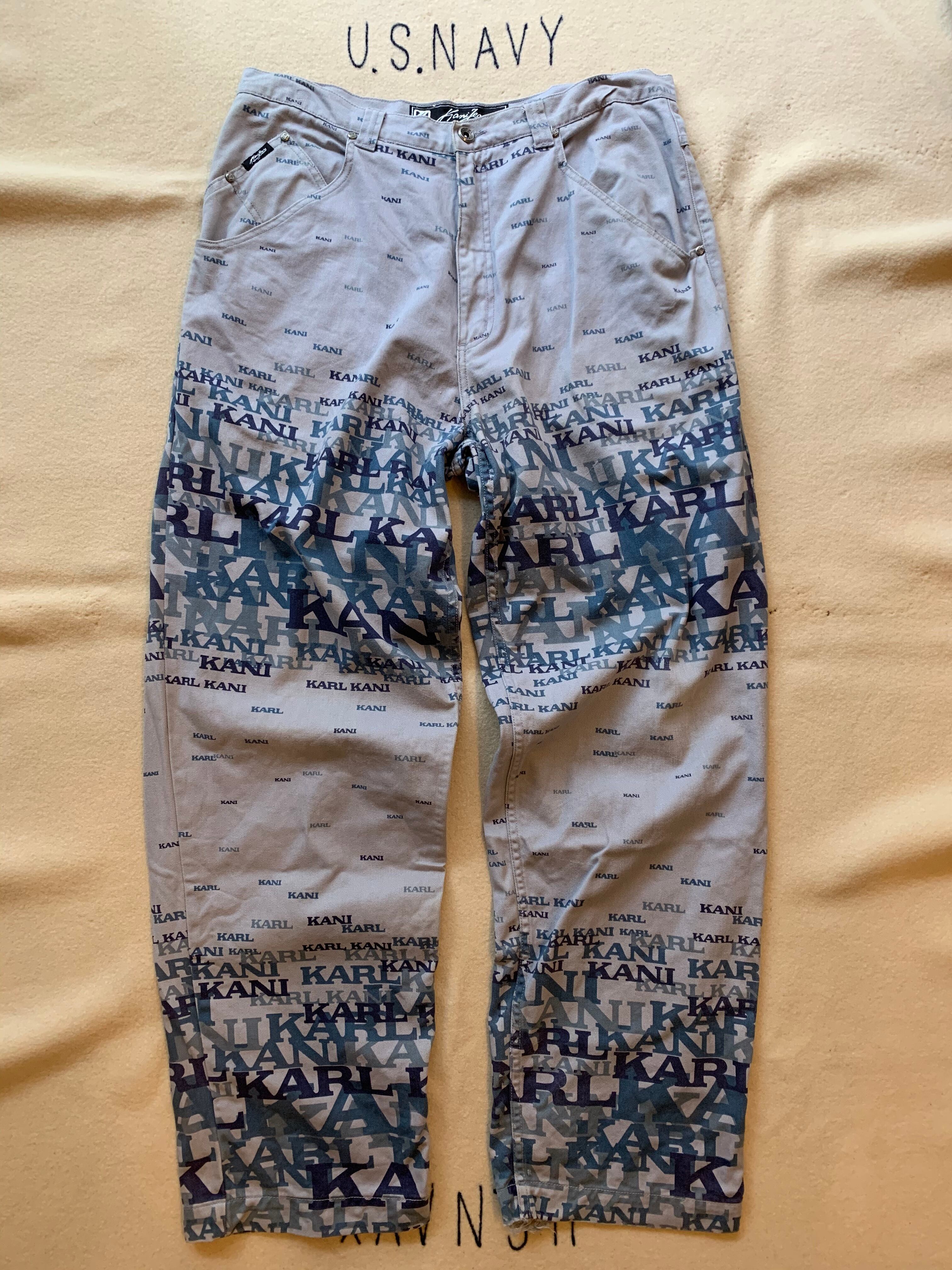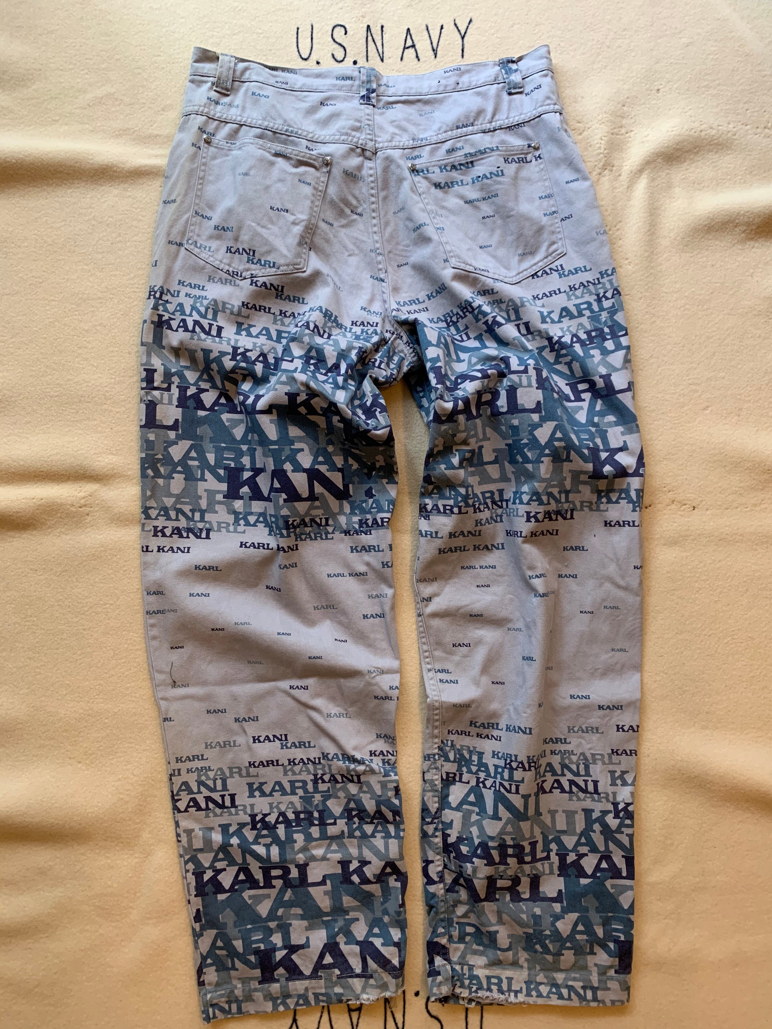 2PACも愛用していたことで知られるKARL KANIのデニムパンツ。ビッグサイズにKANIのロゴが総柄で入るなんとも90sライクな一着。今っぽいです。