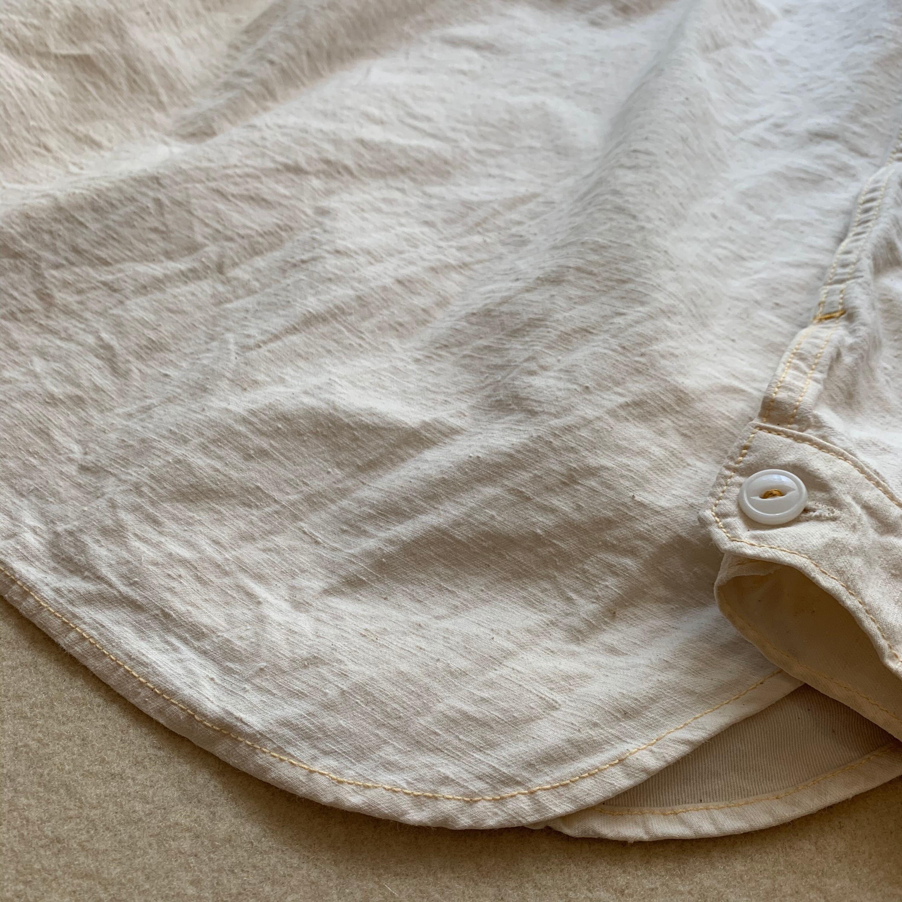 30s40sのワークシャツをベースにSPELL BOUNDらしいポップなかわいさのある一着。生地の毛羽立ち感、細部のディテールgoodです。オーバーオールやペインターとの相性抜群です。