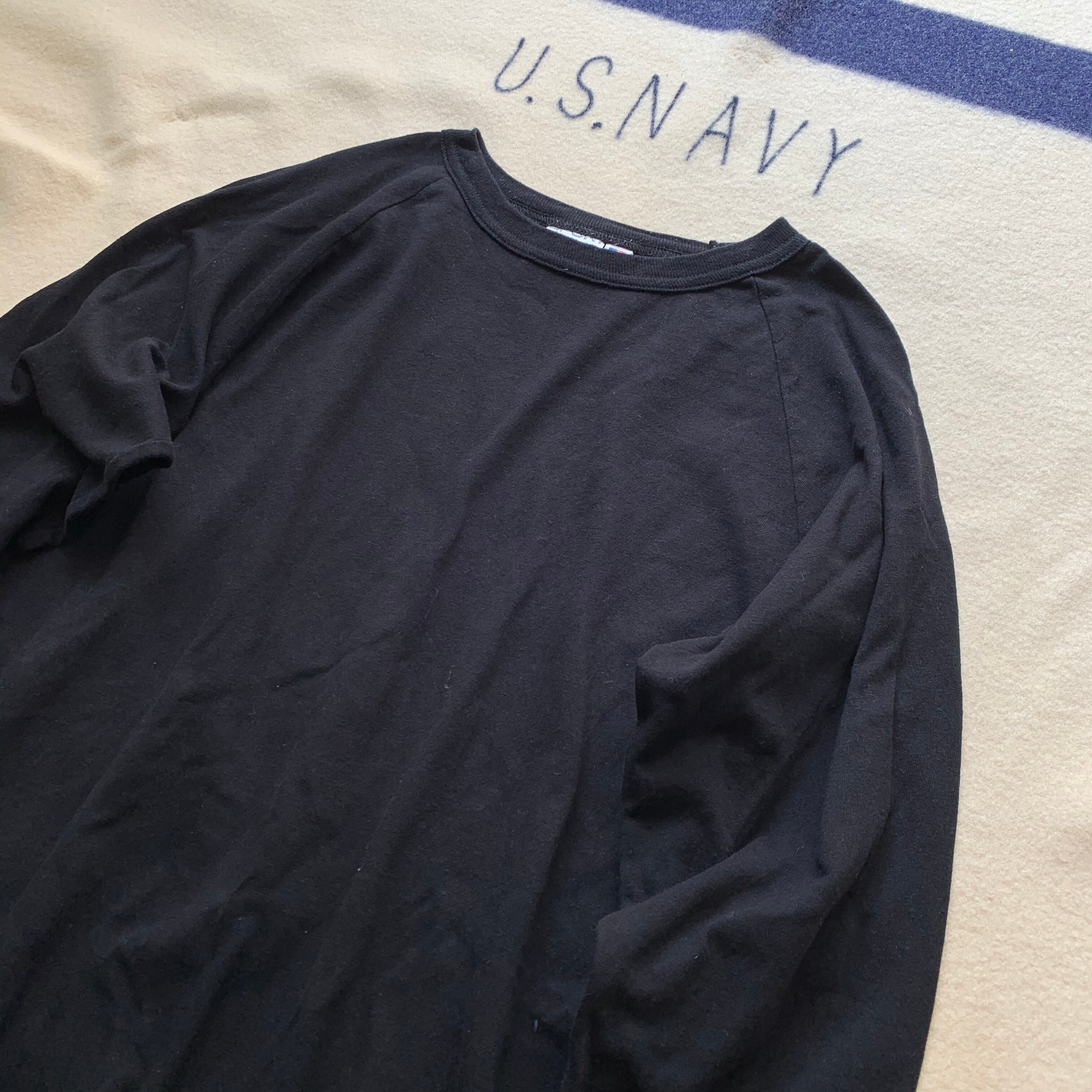 WALLA WALLA SPORTSの定番ラグランT。クレイジーパターンや切り替えしはよく見かけますがオールブラックのカラーリングは新鮮です。サイズもL-XL相当と大きくストリート感ある一着。アウターでもインナーでも使いやすいと思います。