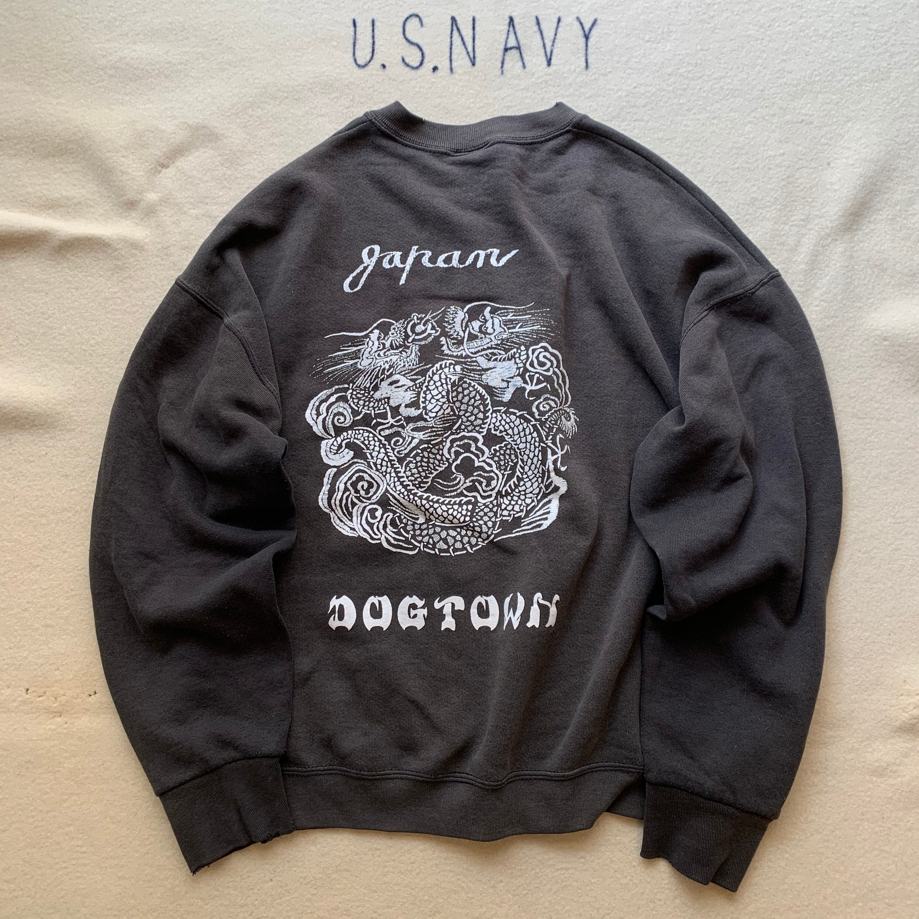 90s頃のDOGTOWN スウェットシャツ。胸にワンポイント、バックのスカジャンライクなプリントがcoolです。