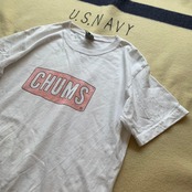 CHUMSのTシャツ。バック側かすかにシミあり。それ以外は状態良好です。