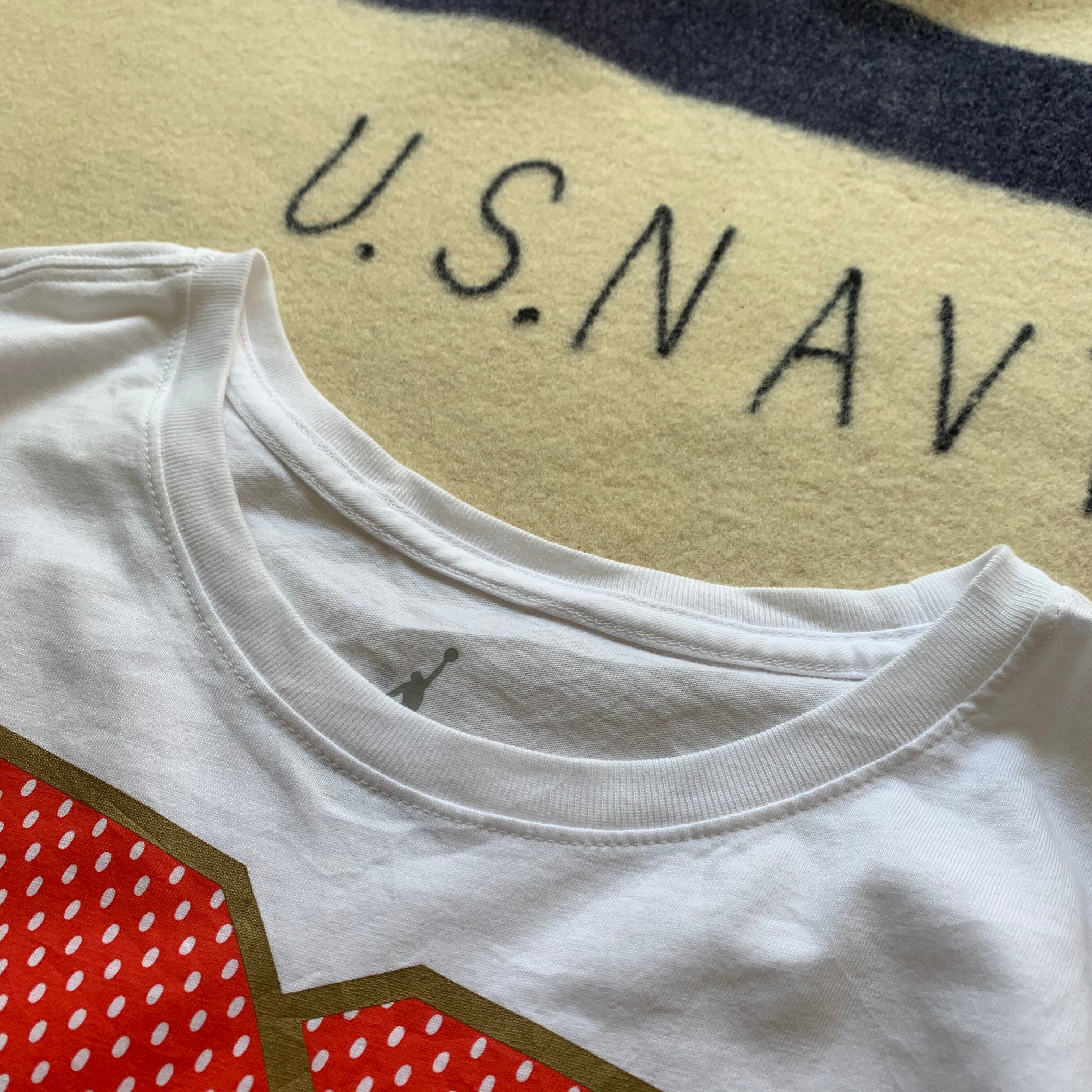 タグ付きのものをクリーニングの為一度洗いかけてます。JORDANのナンバリングT。美品です。