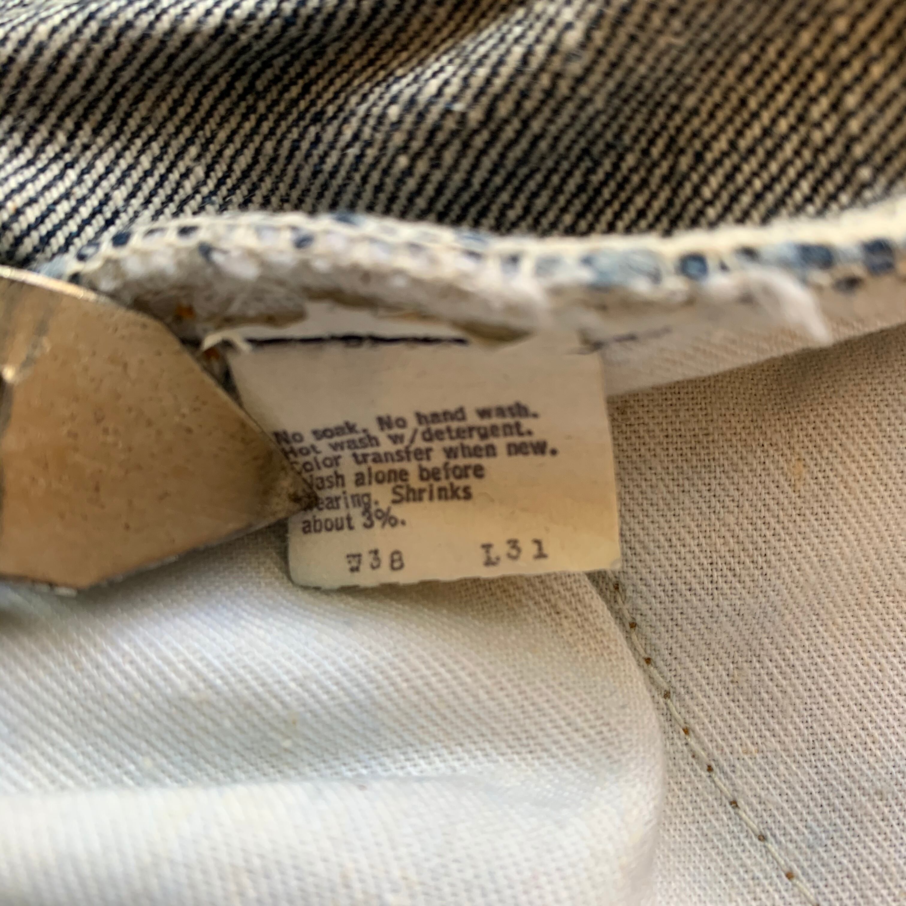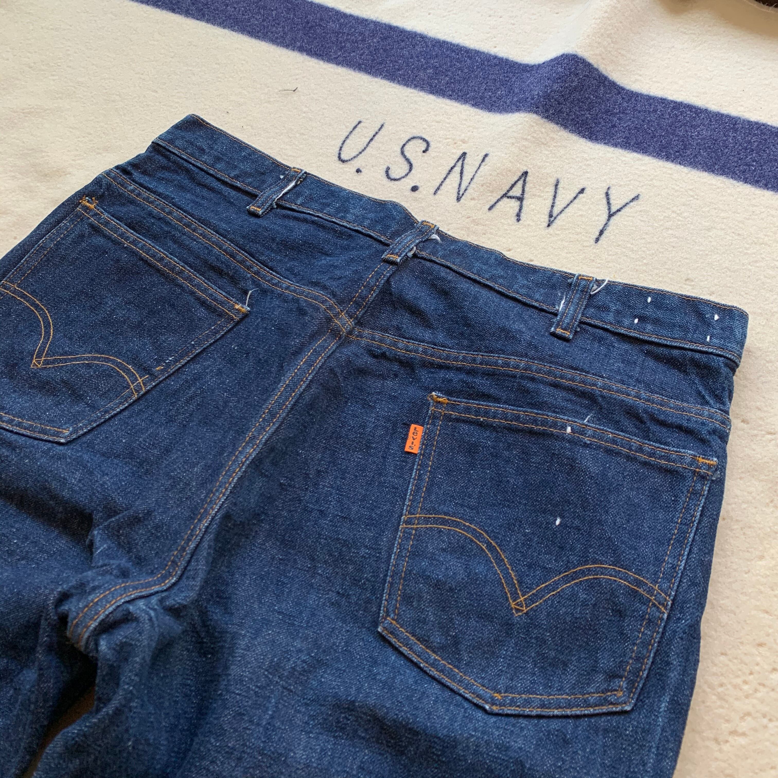 77sのLevi’s 646。あまりウォッシュされておらず色残り9割以上です。太めのシルエットのカットオフなのでベルボトム感はなく特徴的なシルエットです。