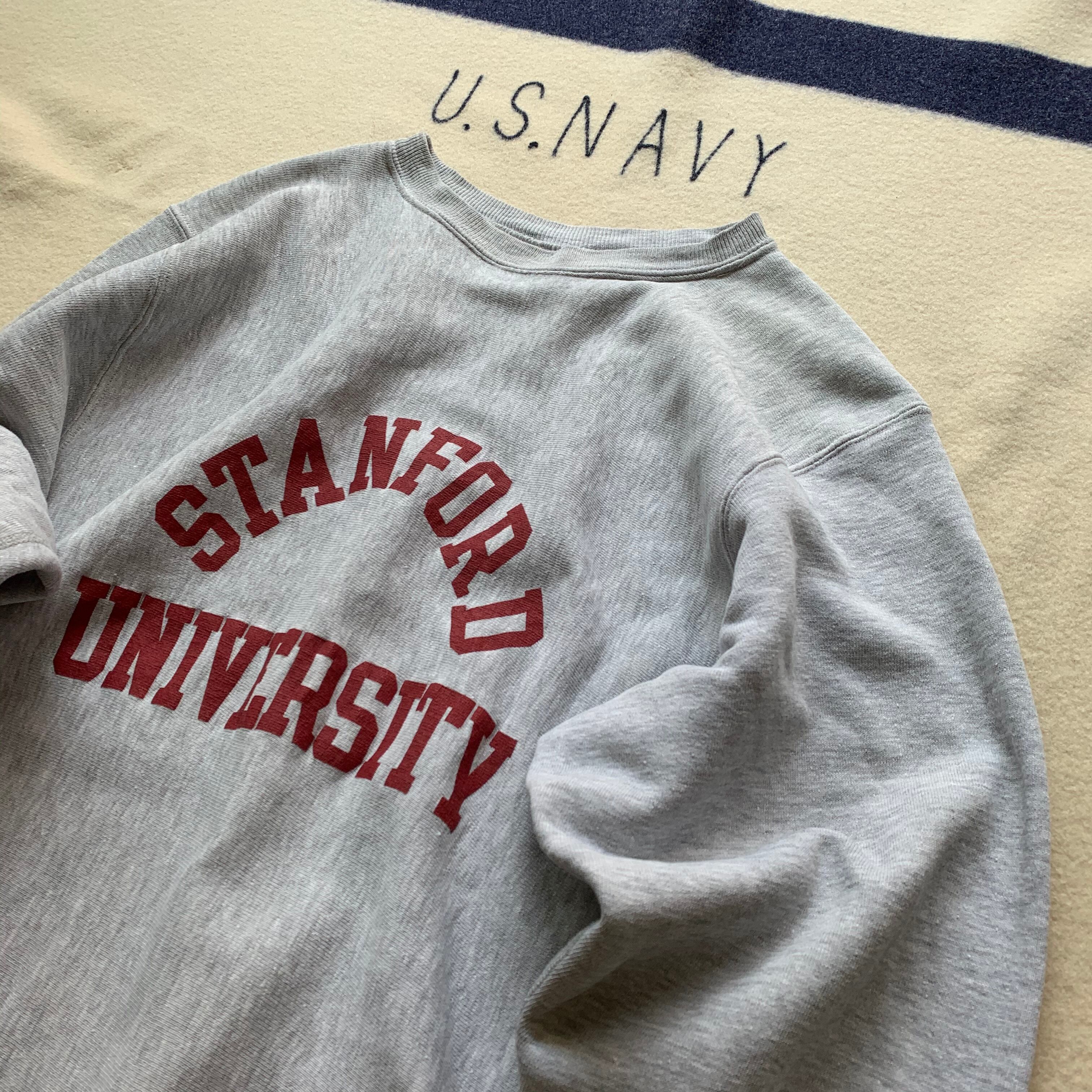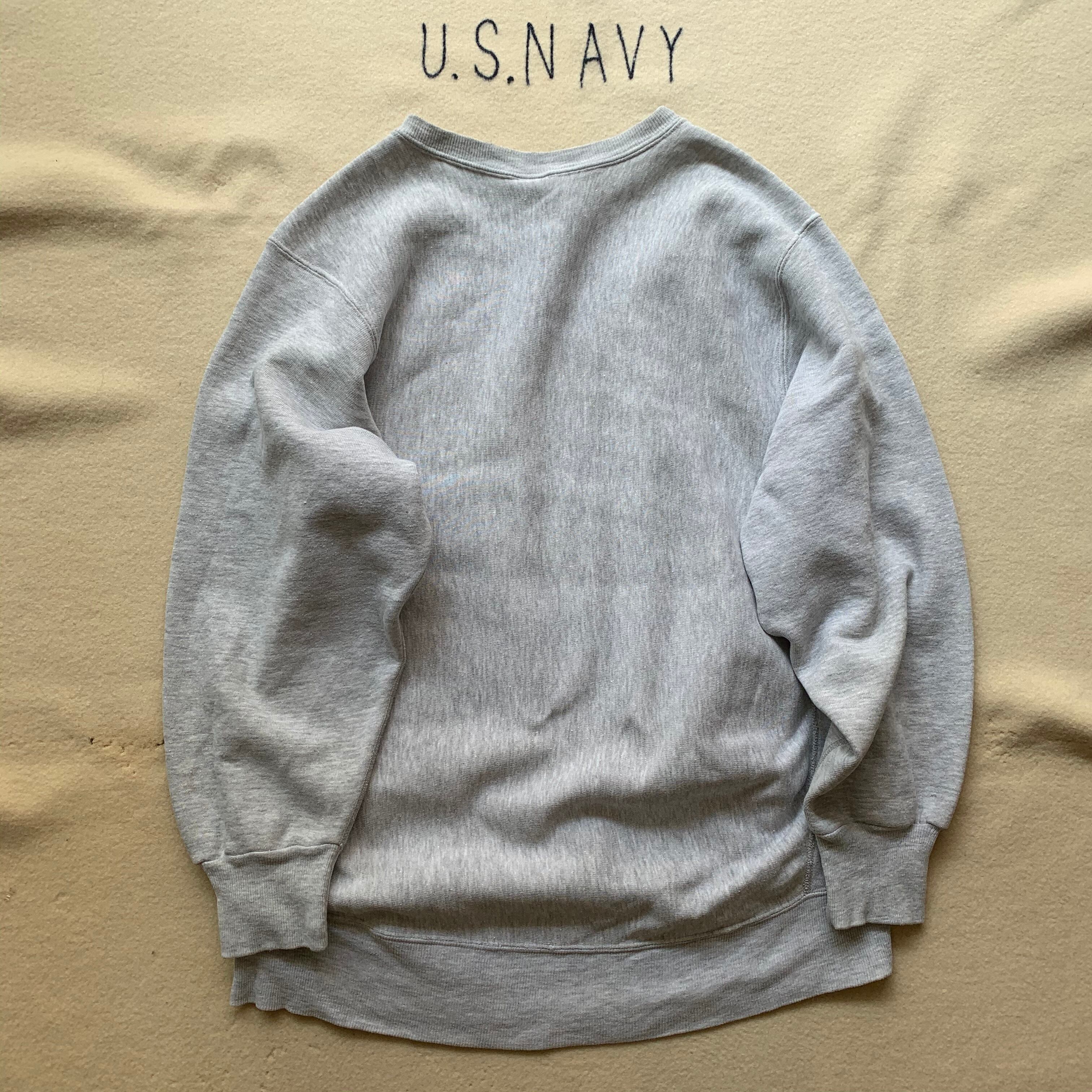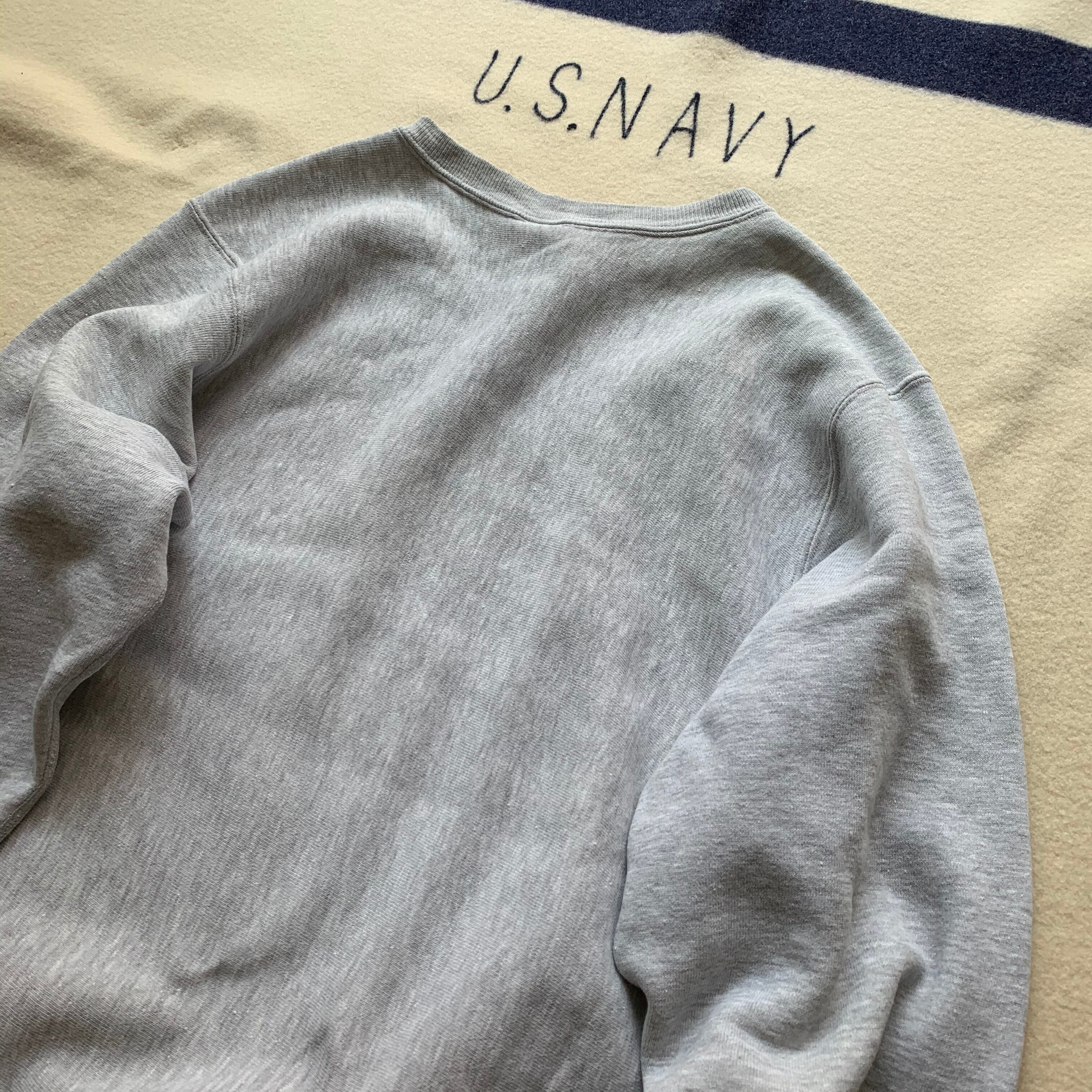 80s-90s頃のヴィンテージスウェット。完全にchampionのリバースウィーブインスパイアです。作りは本家にも負けていなく袖の太さや首回りのステッチングもよく似ています。生地感が柔らかくこっちの方が着やすい感すらあります。