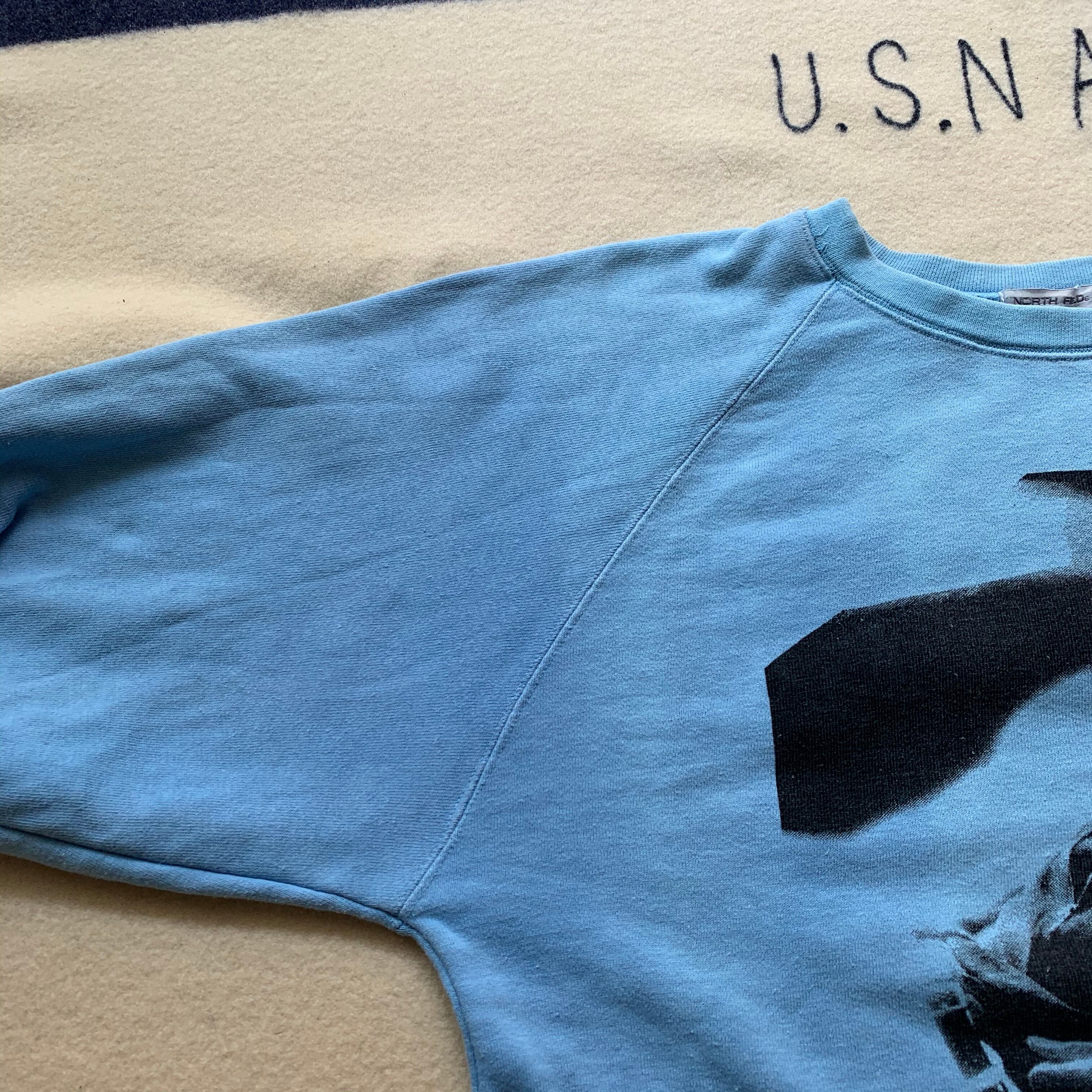 カラーは珍しいターコイズブルー。袖口に汚れあり。破れはなく古着慣れしていれば問題無く着用可能と思います。