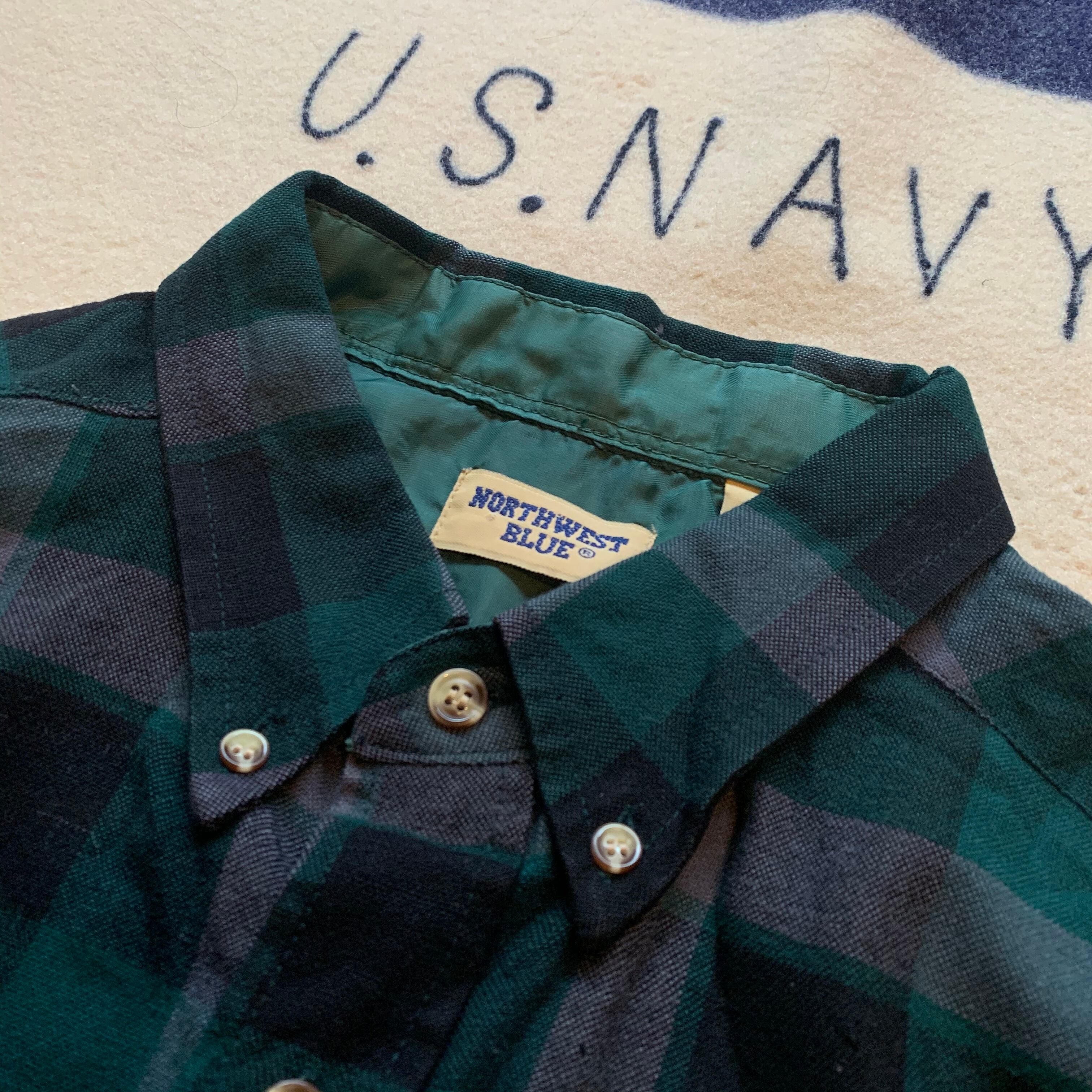 80s頃のNORTH WEST BLUEというブランドの1着。グリーンベースに黒のブラックウォッチライクなパターン。良いカラーに良いサイズ感です。