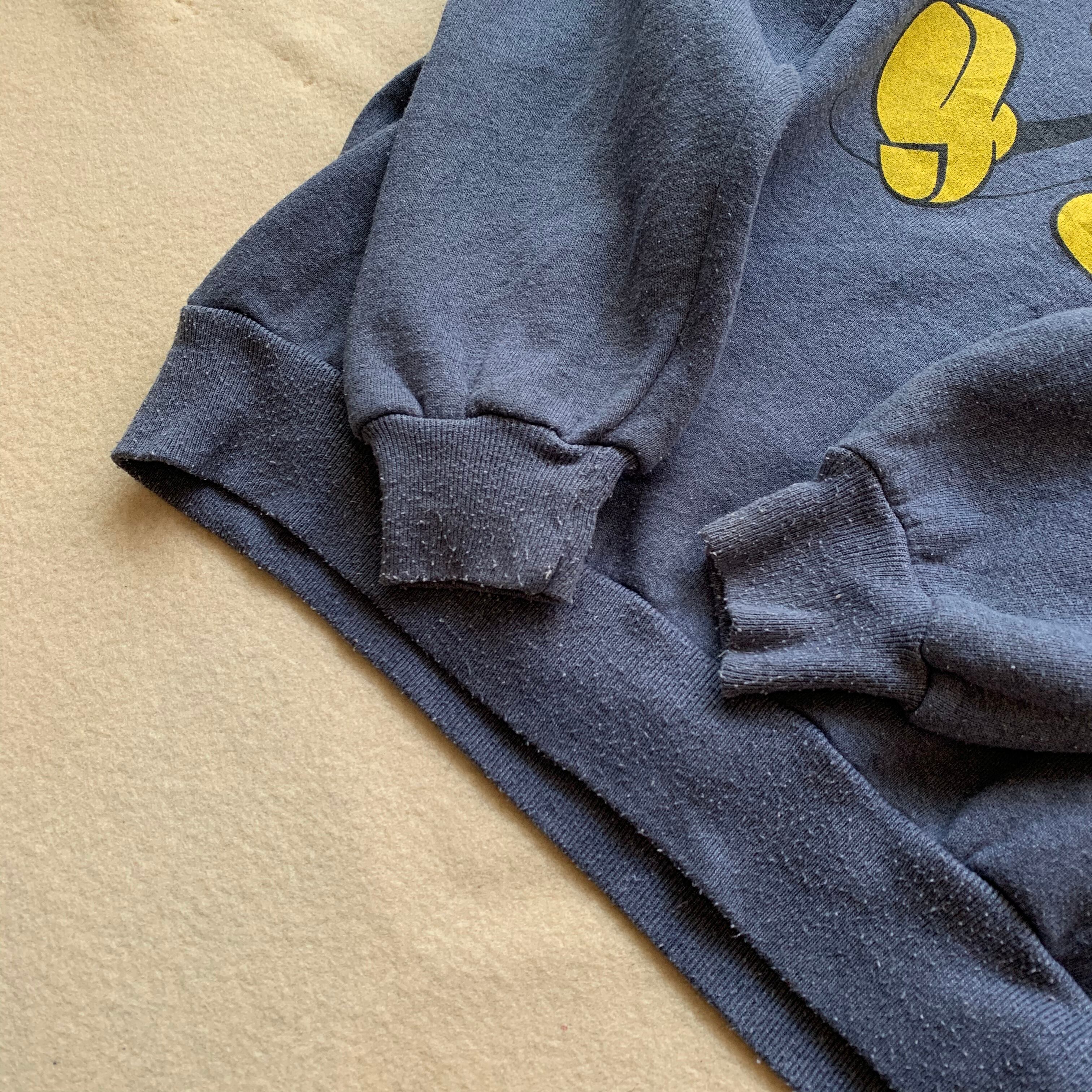 タグが切られていますが80sのUSA製と思います。カラーはグレー。良い色です。定番立ちミッキーのCaliforniaです。年々減ってきている印象。リブに若干の毛玉がありますが汚れ破れなく年代を考慮しても状態良好と思います。