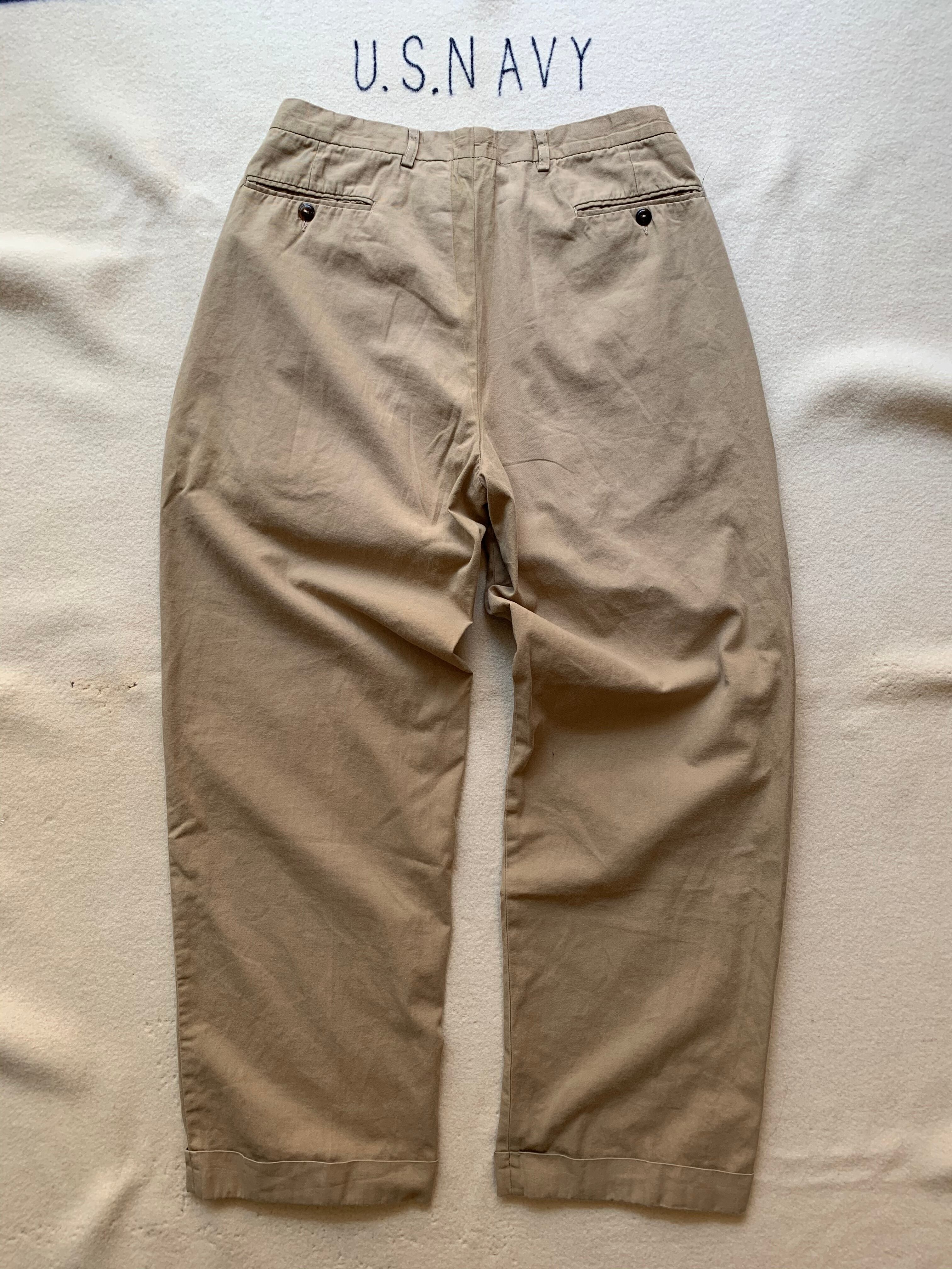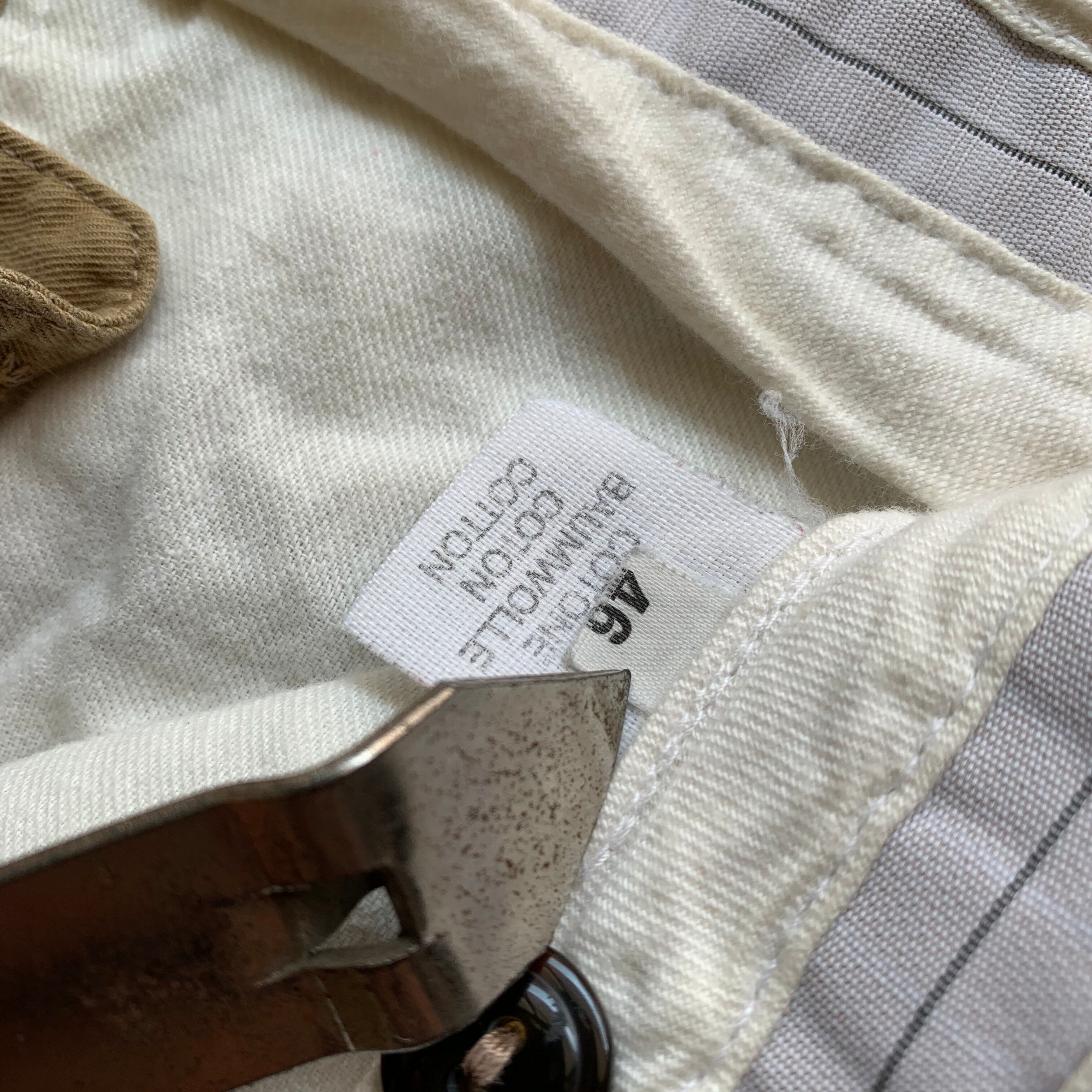 made in Italyのヴィンテージスラックス。薄手の柔らかいコットンポプリンのような生地感。太めのシルエットなので動きも出やすいと思います。内側に名前が描かれていることから日本に当時輸入されたものではないでしょうか。