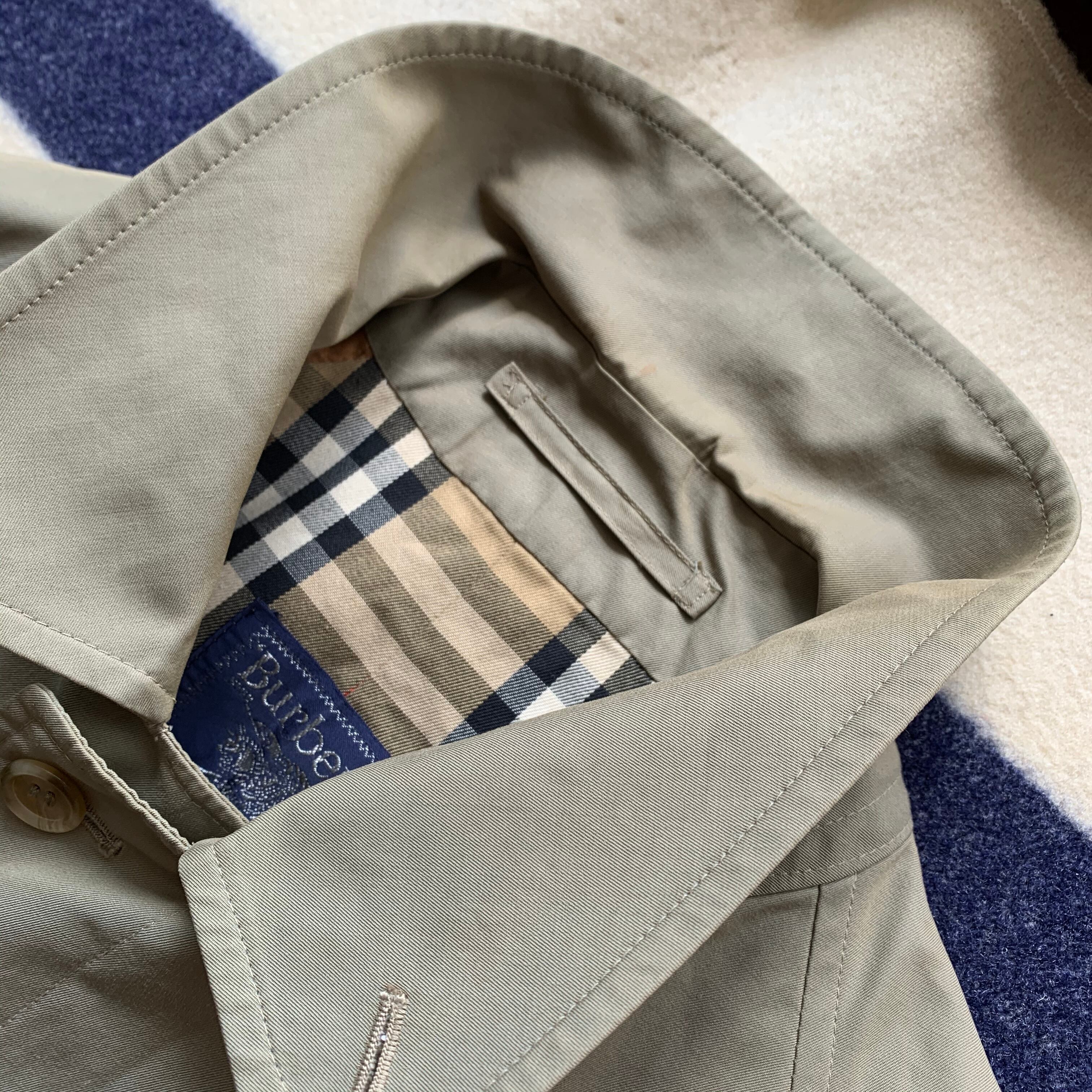 90s Burberry’sのステンカラーコート。希少なmade in ENGLAND。オリーブの玉虫カラー、裏地は定番のノバチェックです。日本人ゴールデンサイズのS-M相当。ヴィンテージでは中々良いサイズを探すのが難しいと思います。