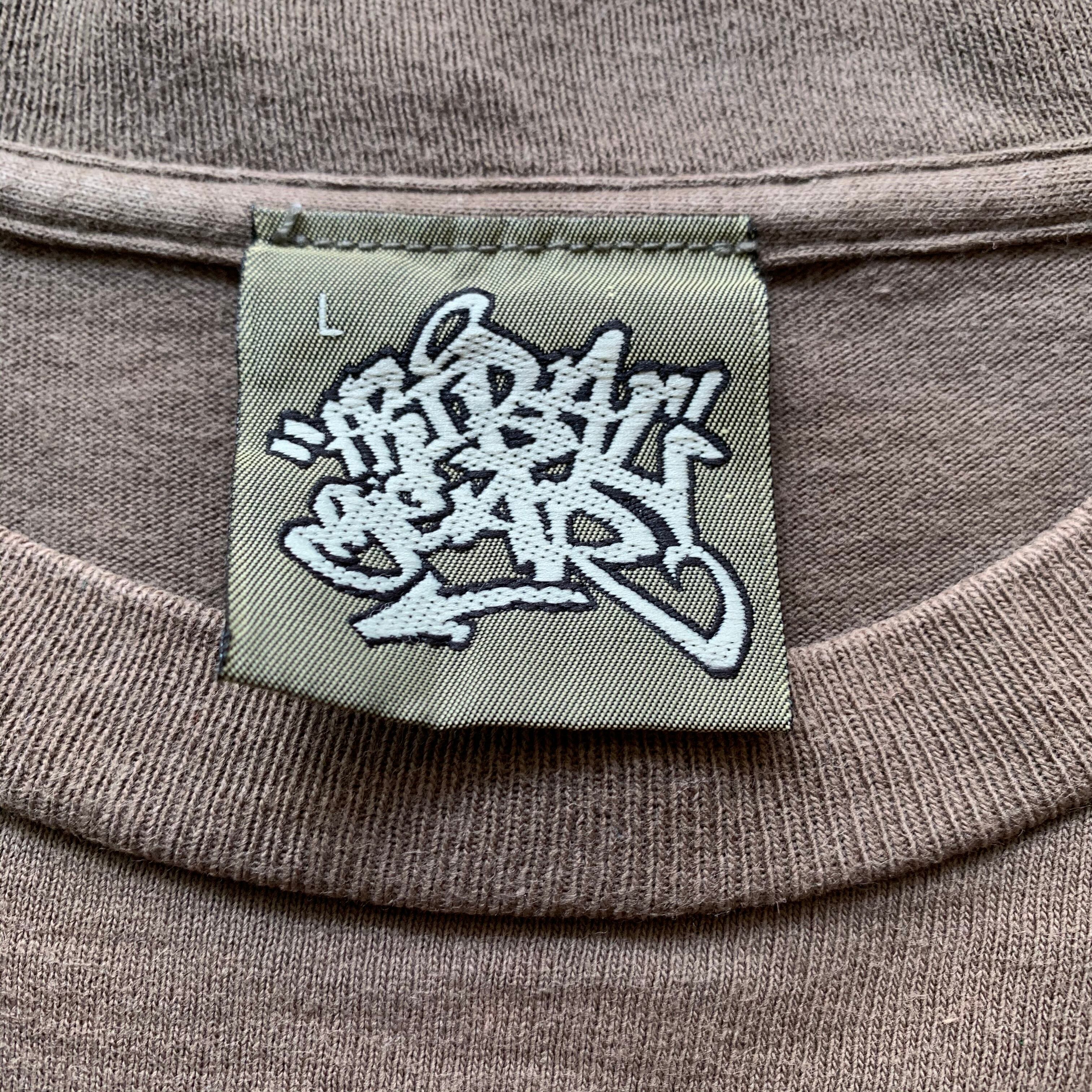 90s頃のTRIBALというブランド。ストリートアートを描いている黒人がプリントされたストリートライクな一着。タグの裏にはEND RACISMとかかれており時代背景を感じます。