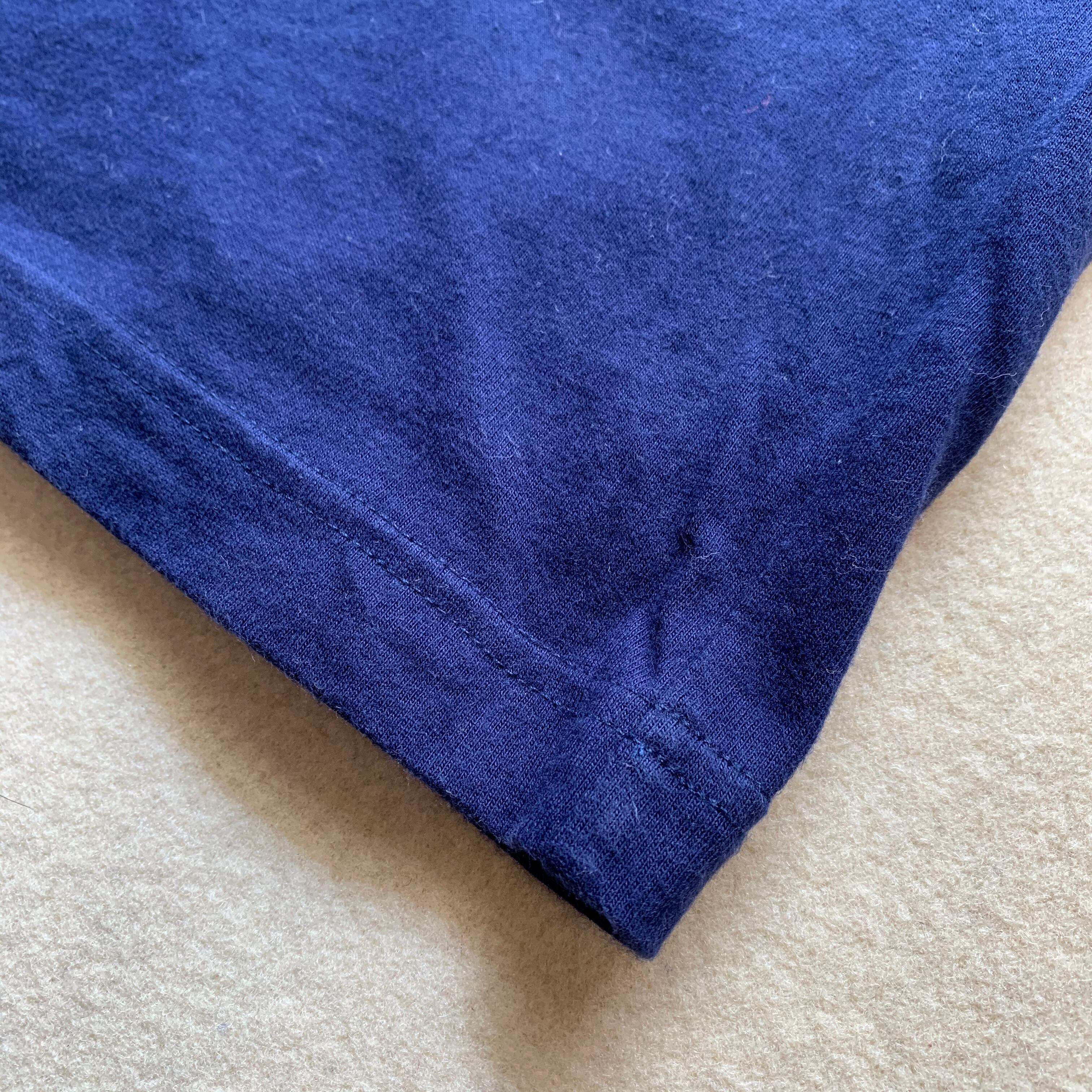 ネイビーカラーに首回りにグレーのトリムが入ります。トリムTとはまた違った雰囲気がありサイズも大きい為どこかストリート感があります。