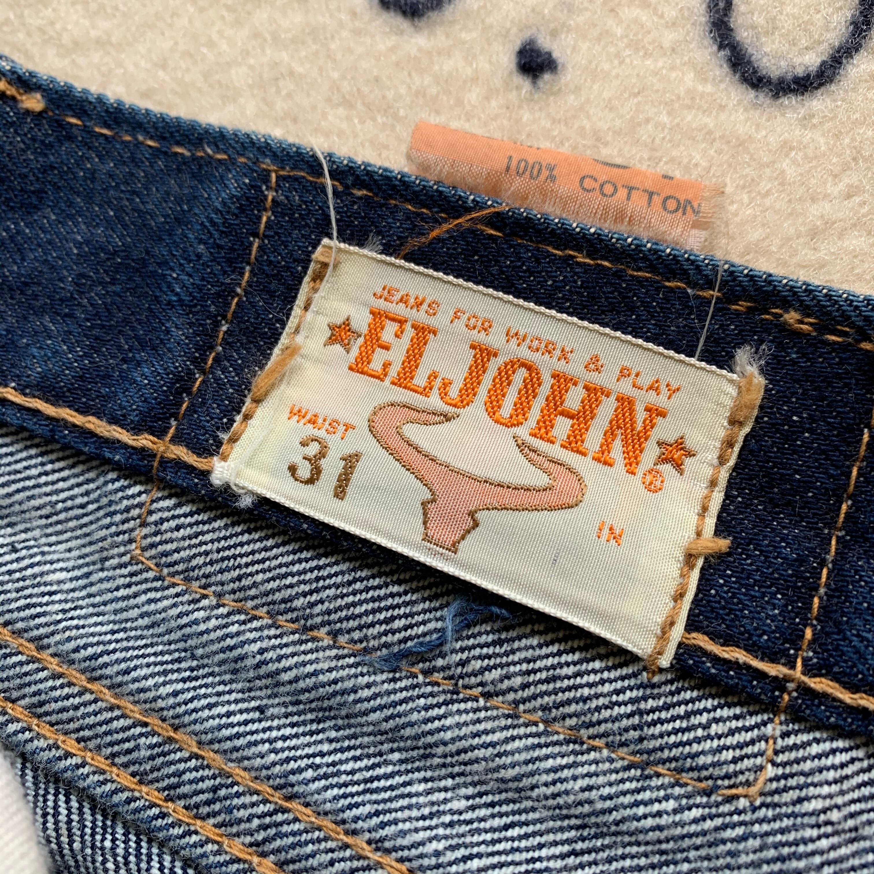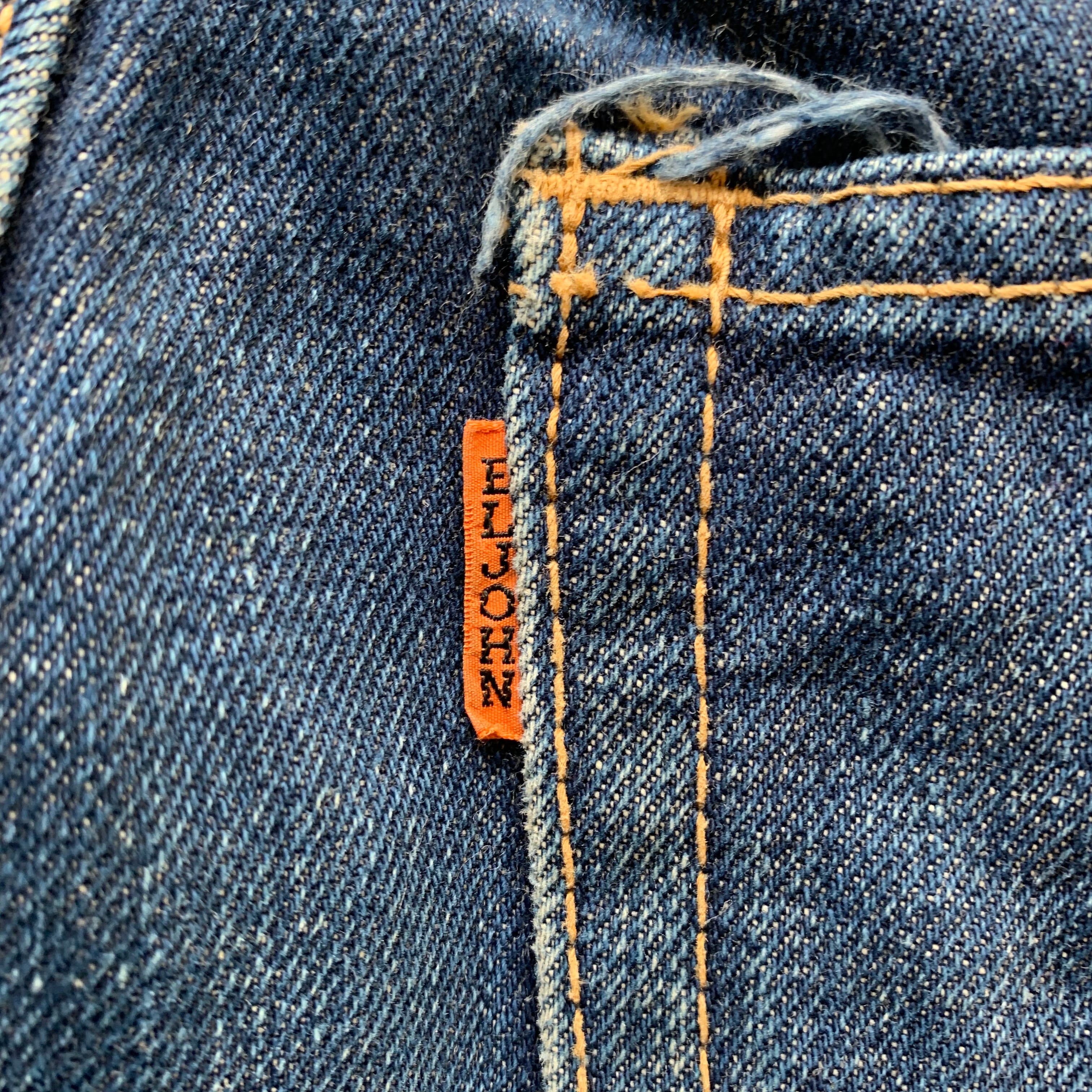 70s ELJOHNという当時の国産ブランドのヴィンテージデニム。パッチからわかるようにアメリカから生地を取り寄せ、作られているため色落ちのしかたが当時のアメリカものによく似ています。縦落ちがこれから出始めると思います。