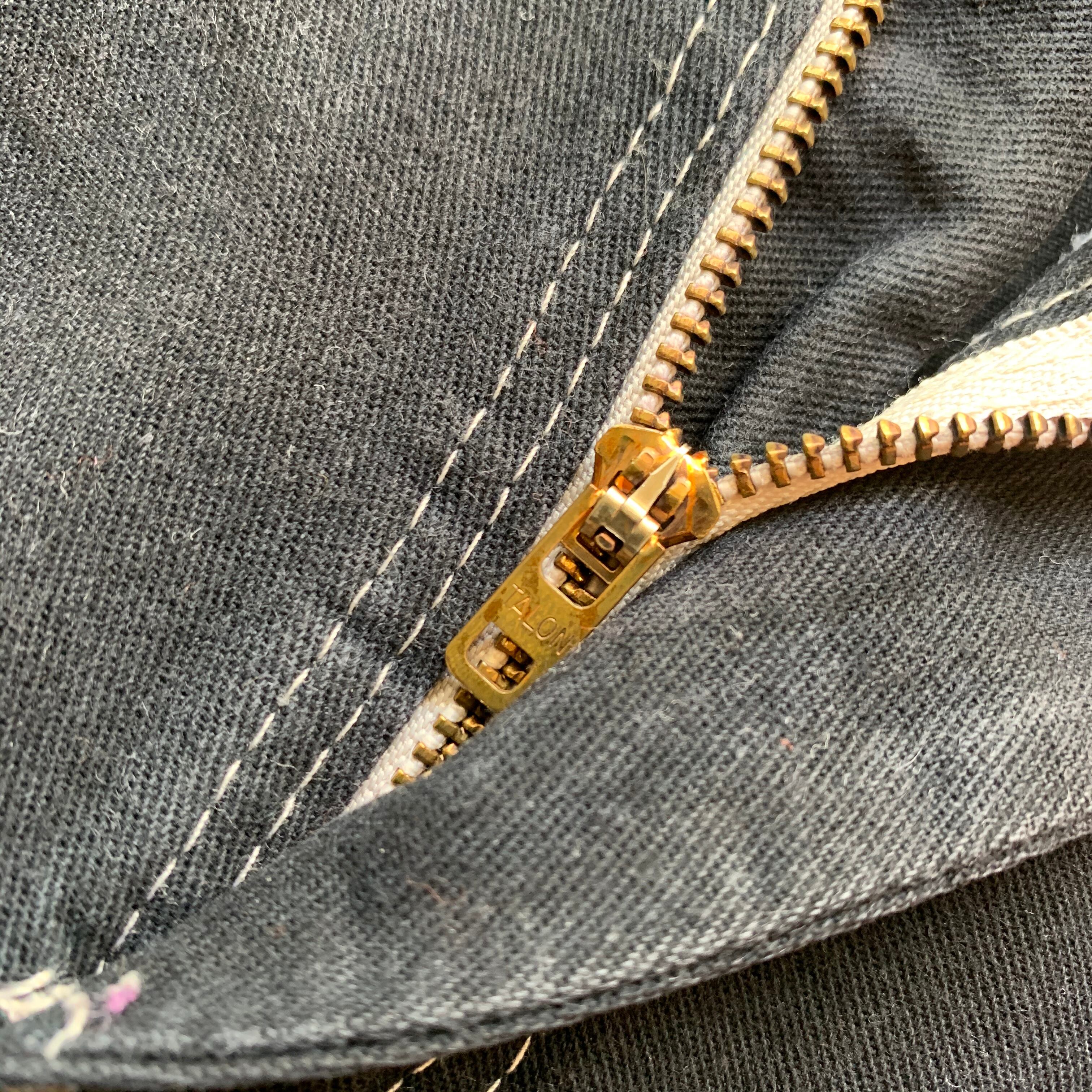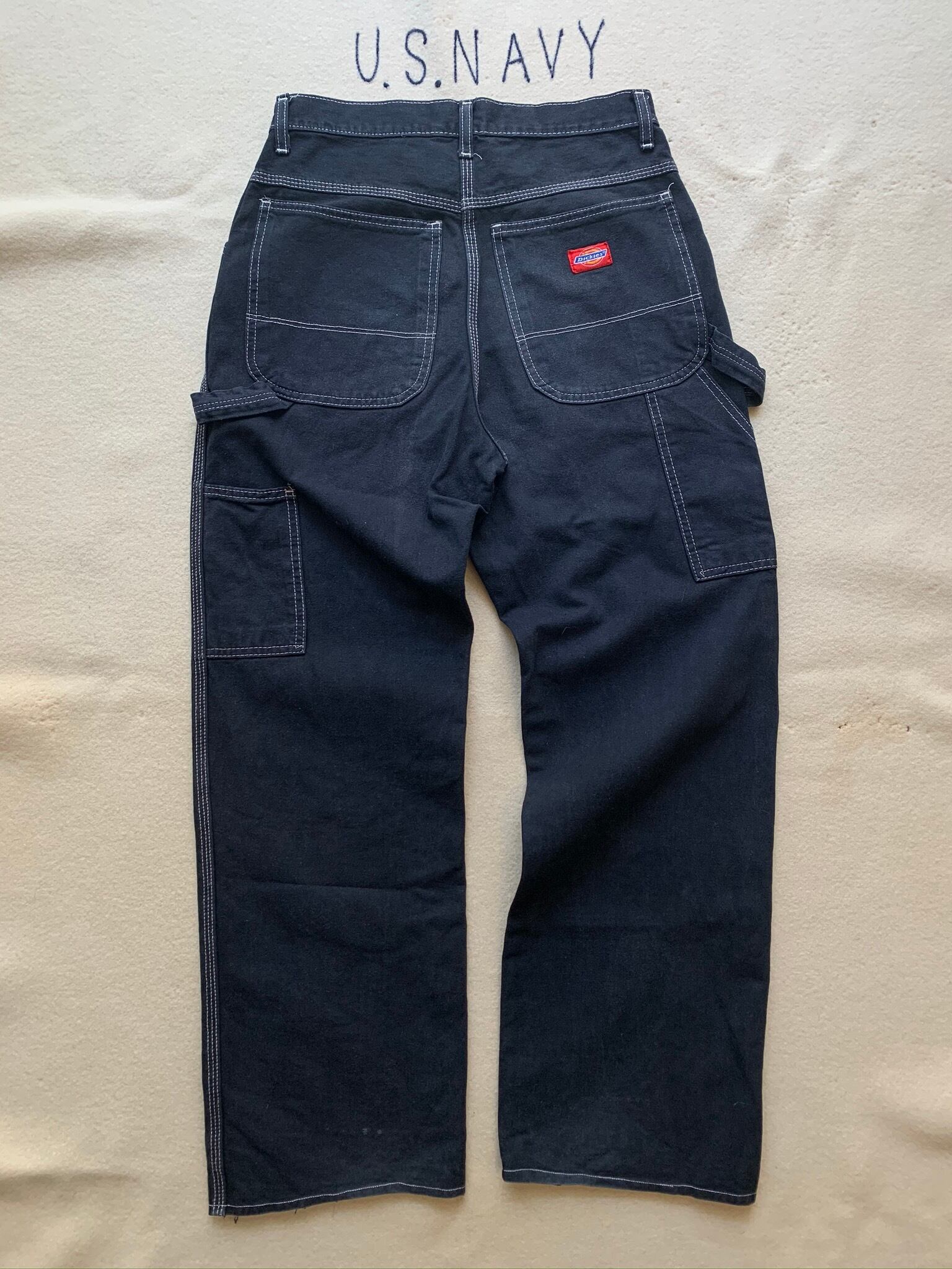 80s-90s Dickiesのペインターパンツ。後染めのような黒色ですがステッチが染まってないことからオリジナルカラーと思います。ジップはTALON。サイズ感はS-M相当。レディースでもかわいいと思います。