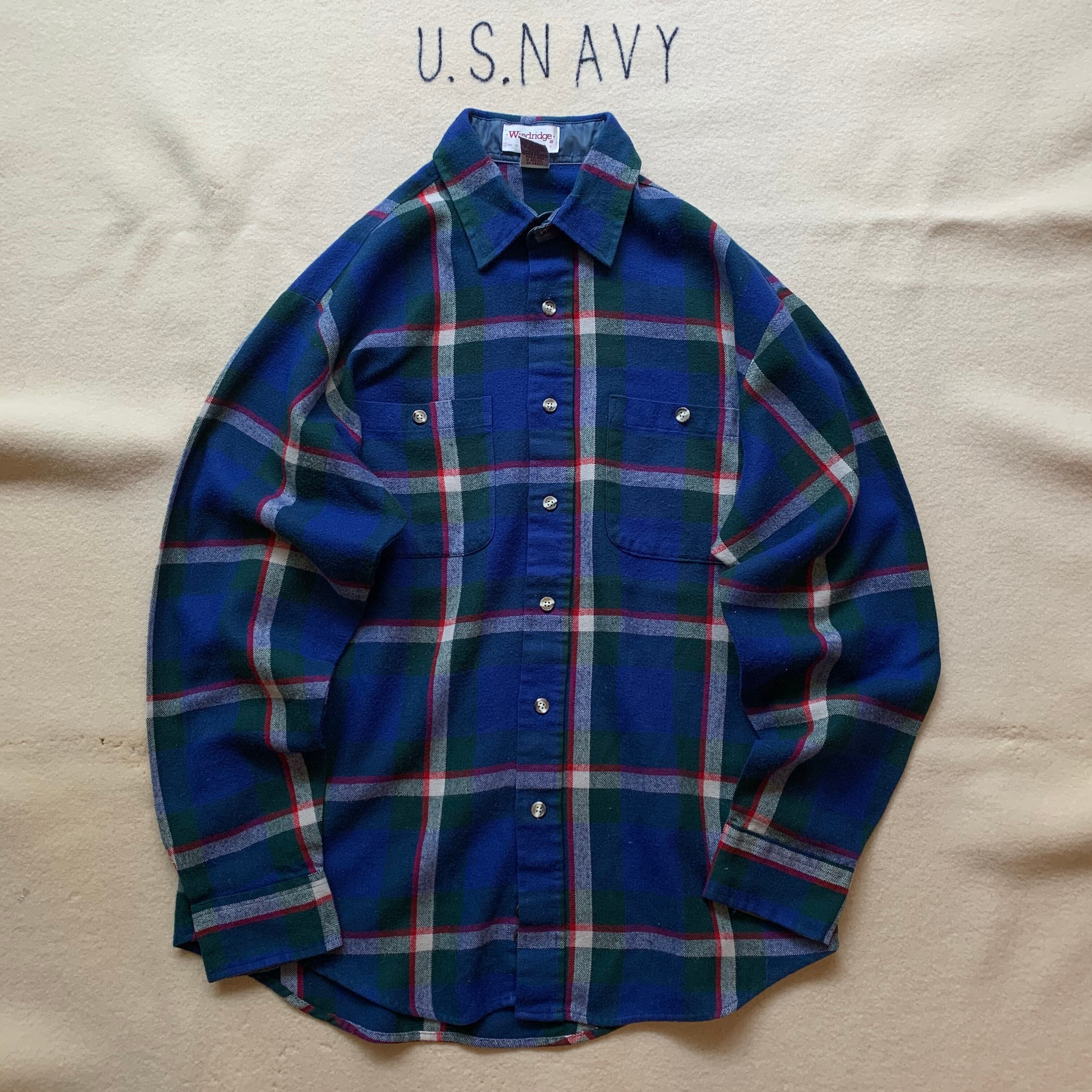 80s頃のチェックシャツ。アクリル100%のシャツは若干光沢があり色が鮮やかに見えます。洗濯に気を使うことも無く個人的にはウールのシャツよりも好きです。