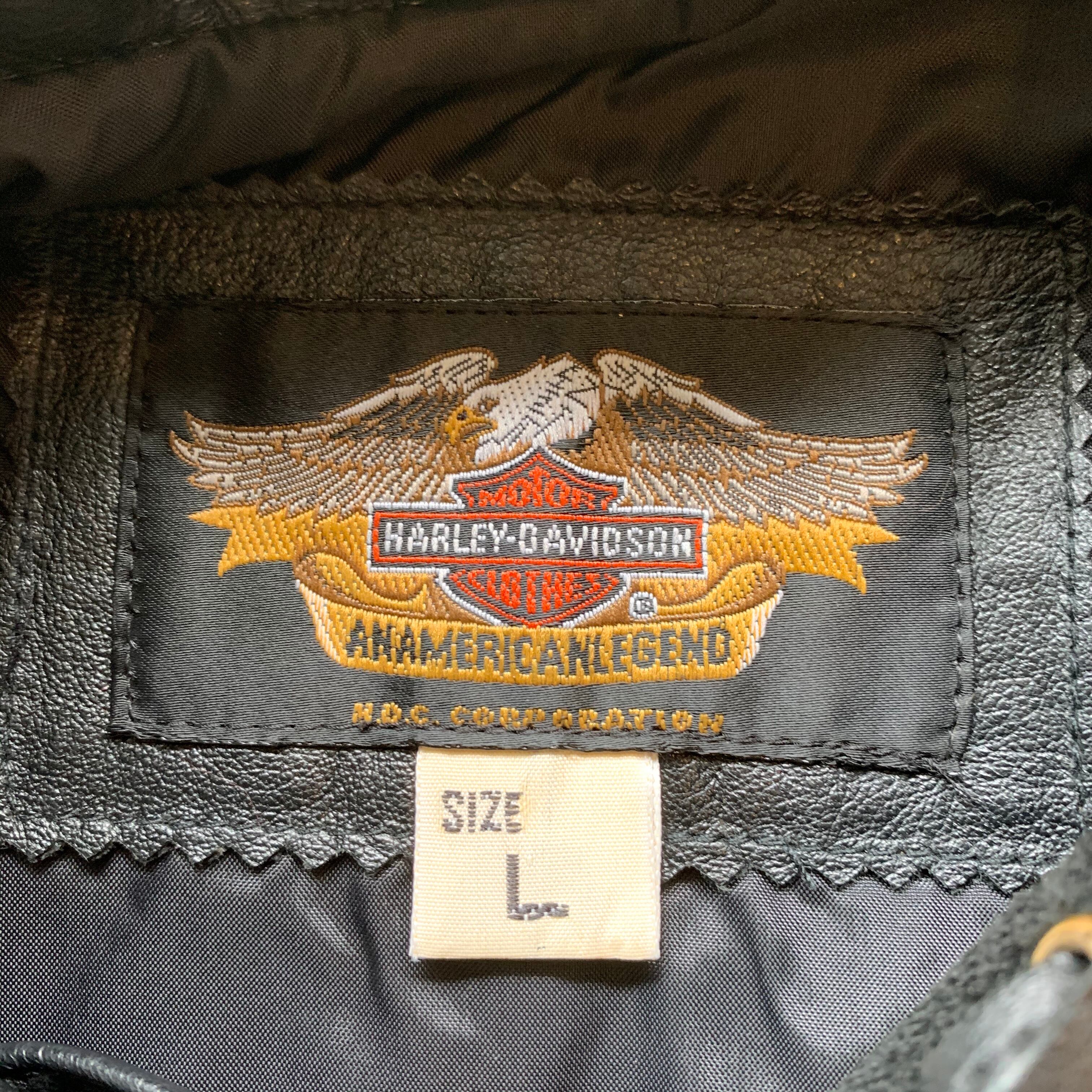 90s-00s以降のHarley Davidson。薄手のレザー、中はナイロン のライニング仕様。バイクにもタウンユースにも着やすいと思います。