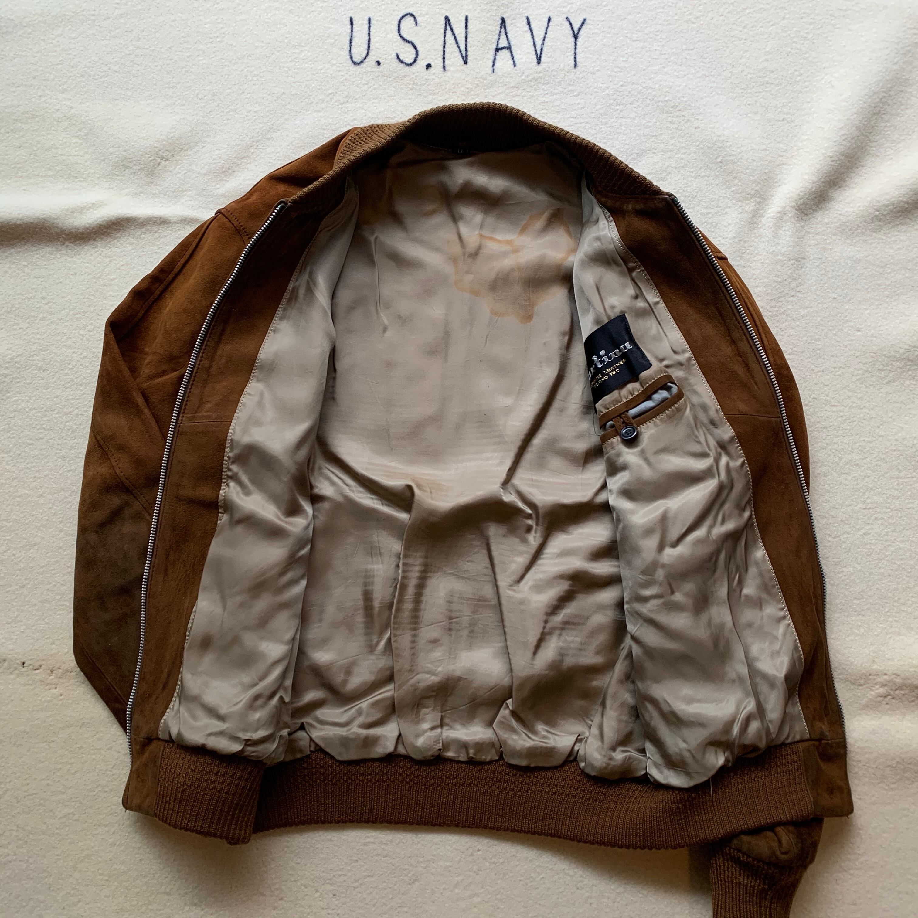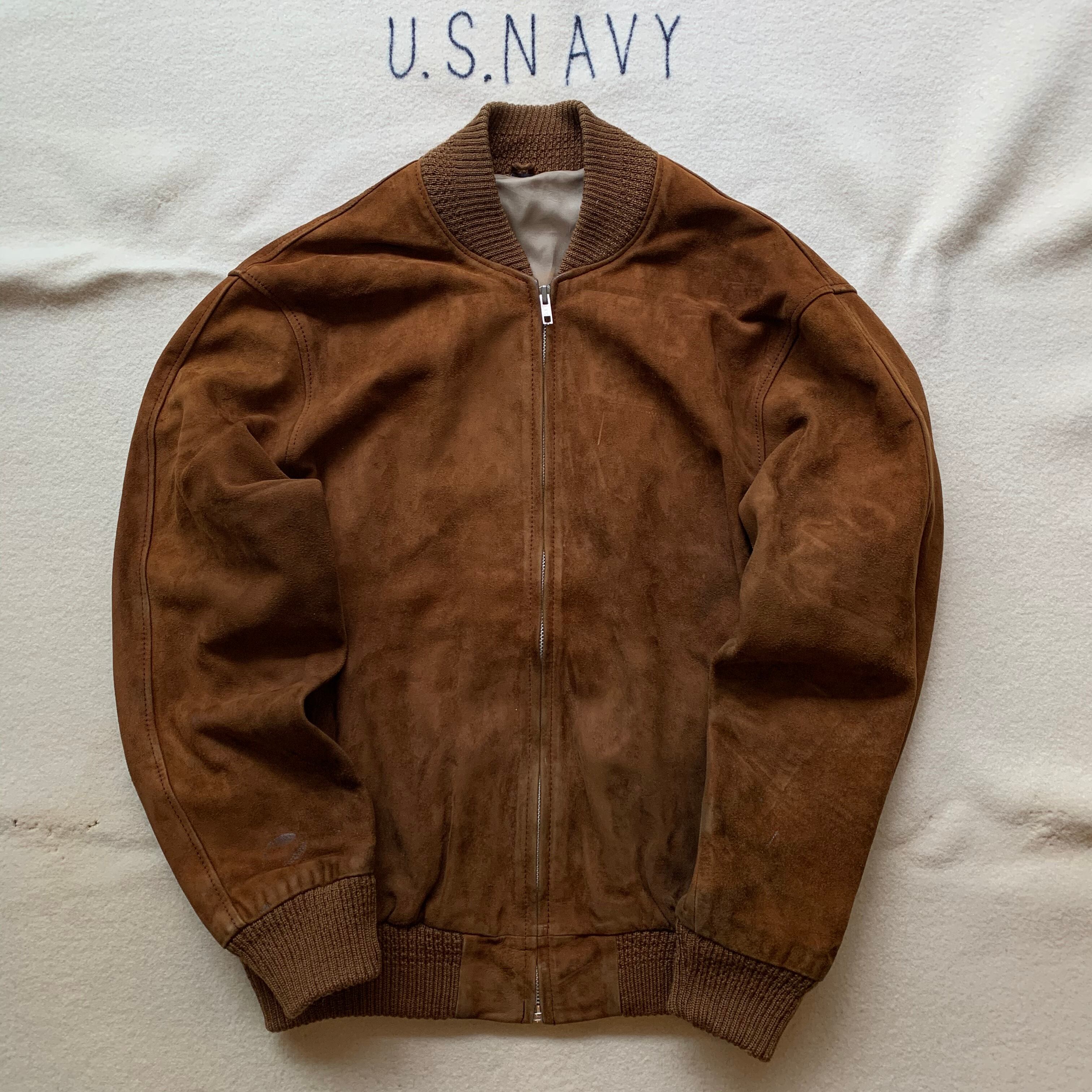 珍しい60sのスウェードジャケット。ジップアップでMA-1タイプ。この年代のジャケットは破れているものが多く綺麗な状態で出てくる事は稀と思います。