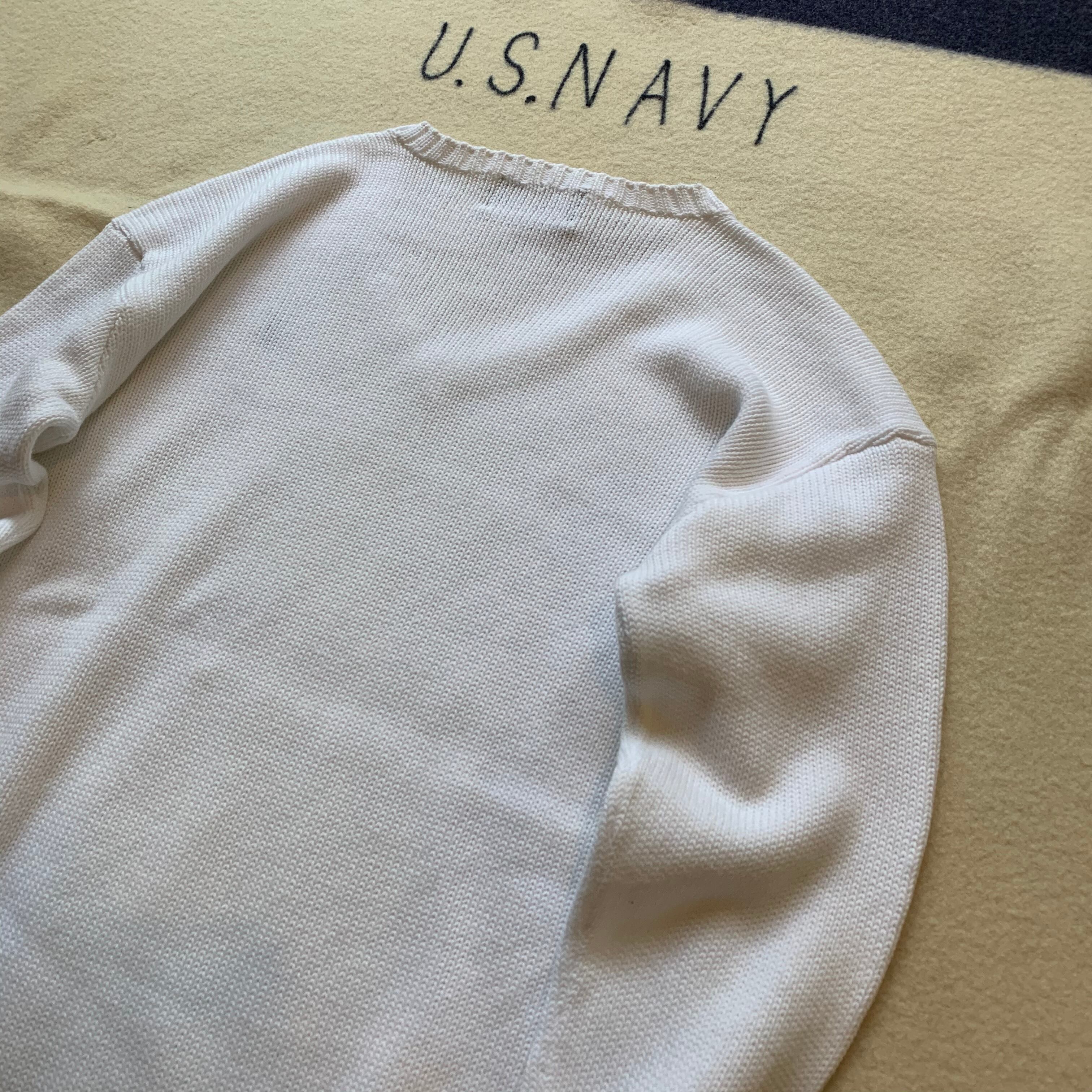 90s頃のポロスポーツ。Vネックの定番コットンセーター。左袖口にうっすらとシミがある以外汚れも破れもなく年代を考慮しても美品と思います。