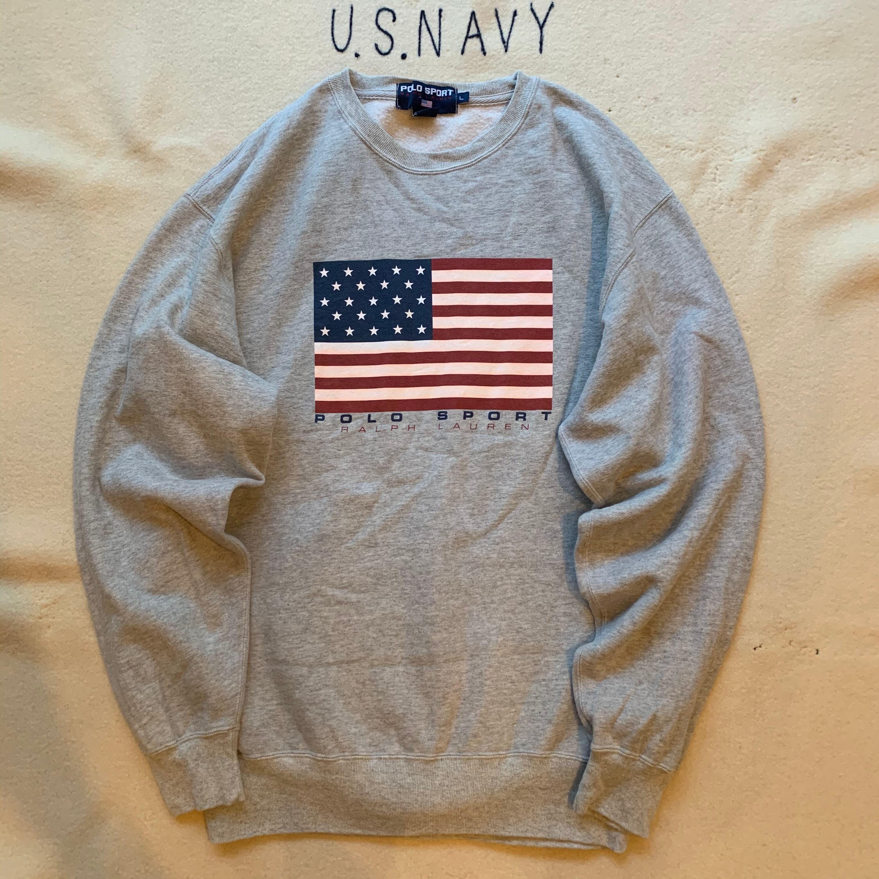 90sのPOLO by RALPH LAURENのスウェット。定番のUSA国旗。汚れ破れ使用感なく美品です。